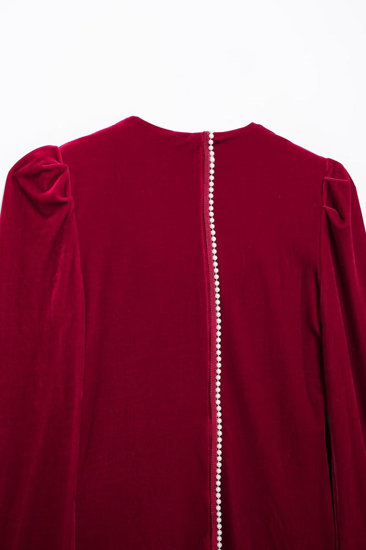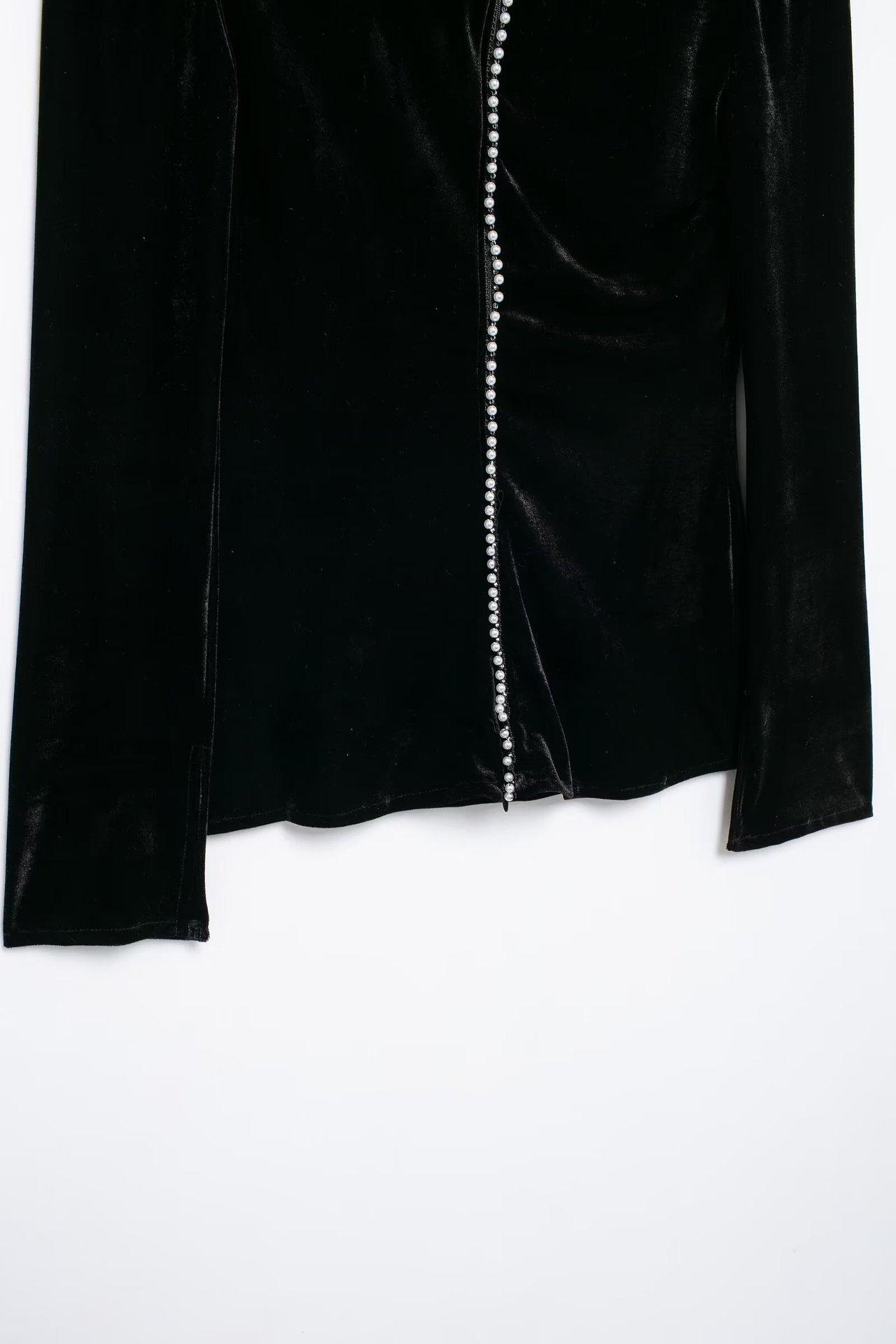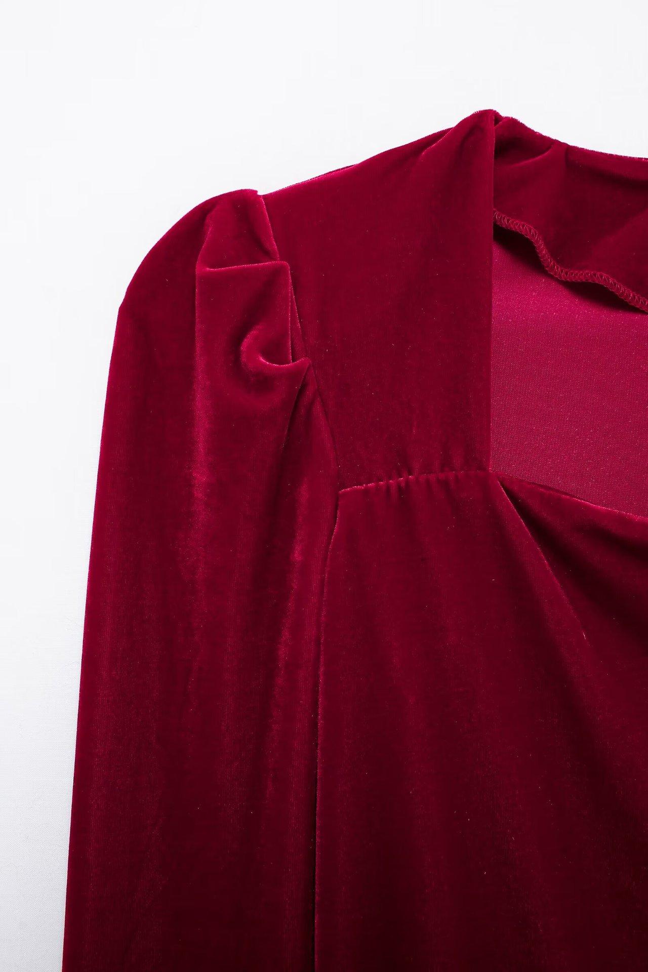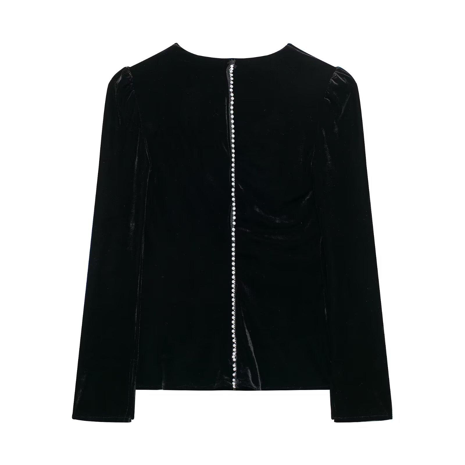 Comercio Exterior Transfronterizo para Mujer 2024 Otoño Nuevo Top de Terciopelo de Manga Larga Estilo Europeo y Americano con Falda Midi Plisada de Cintura Alta