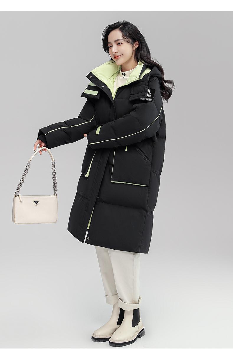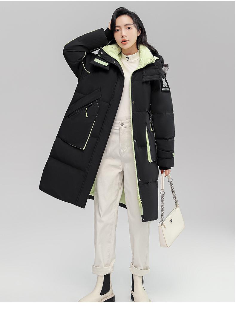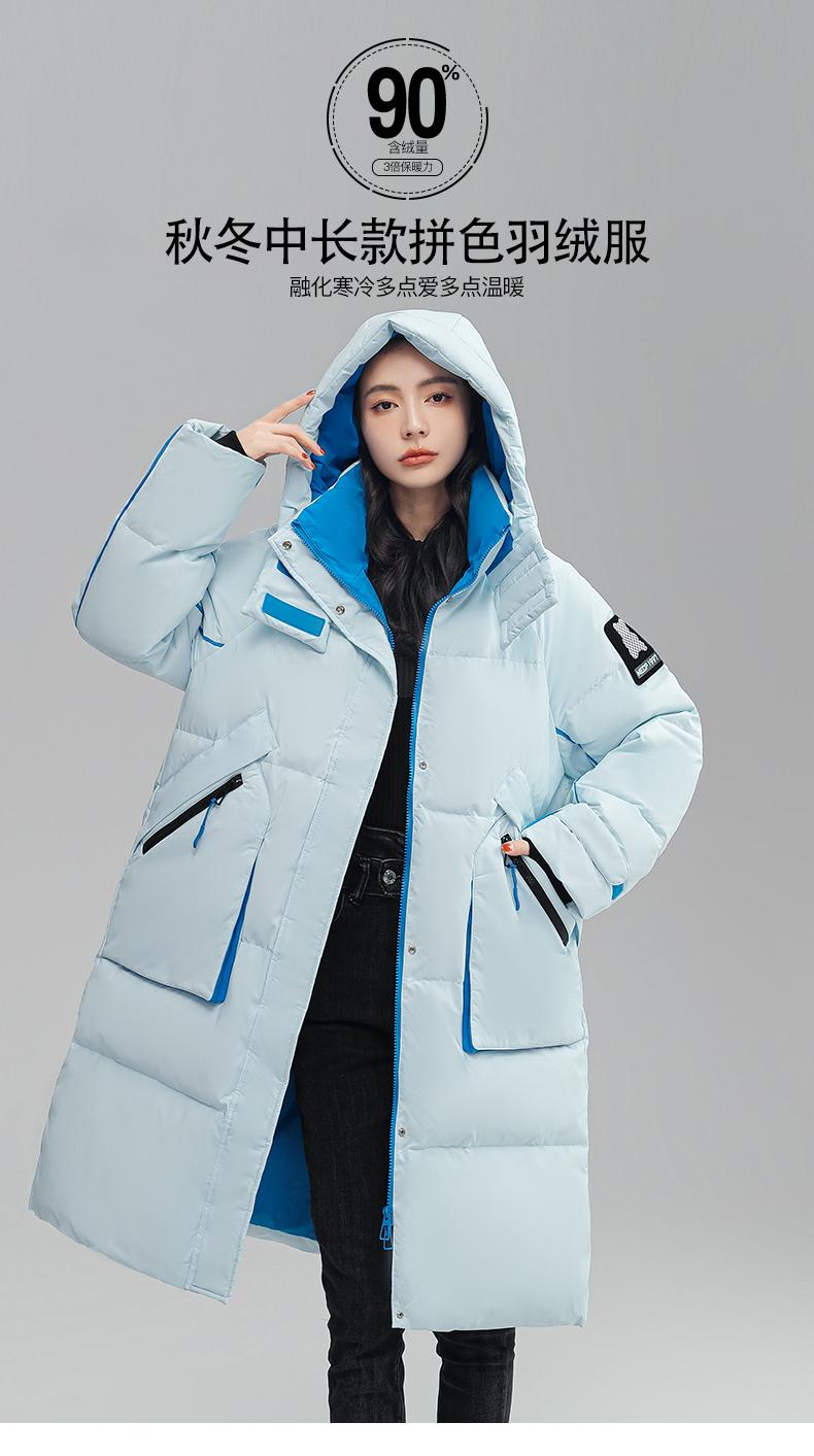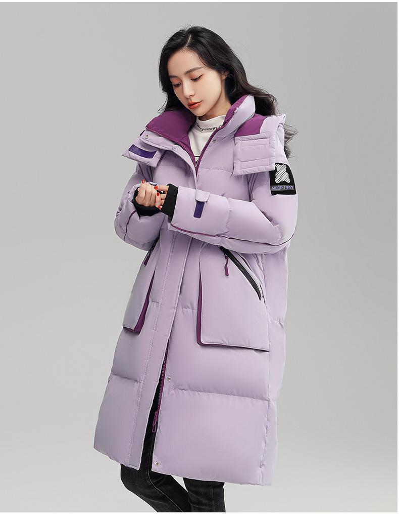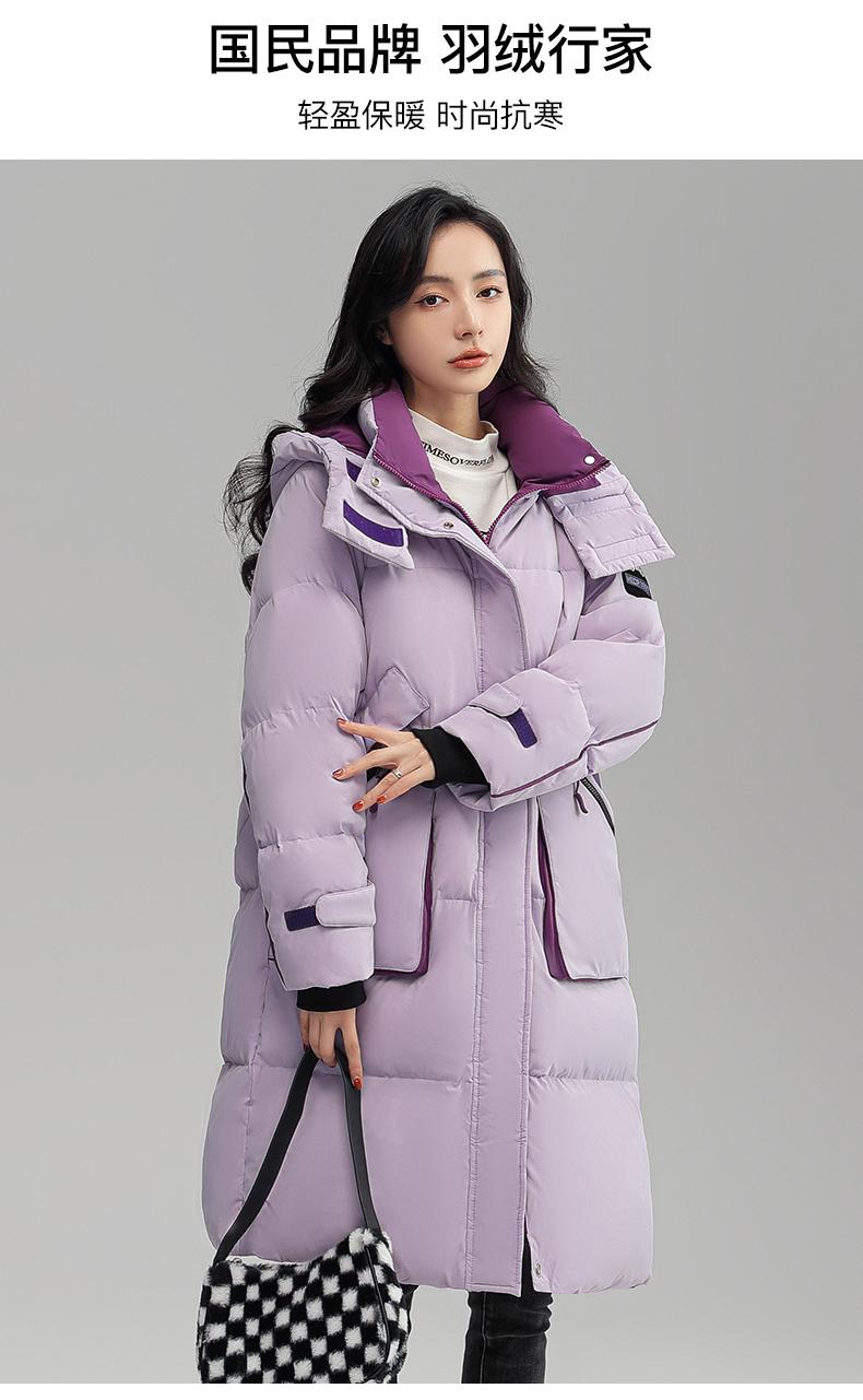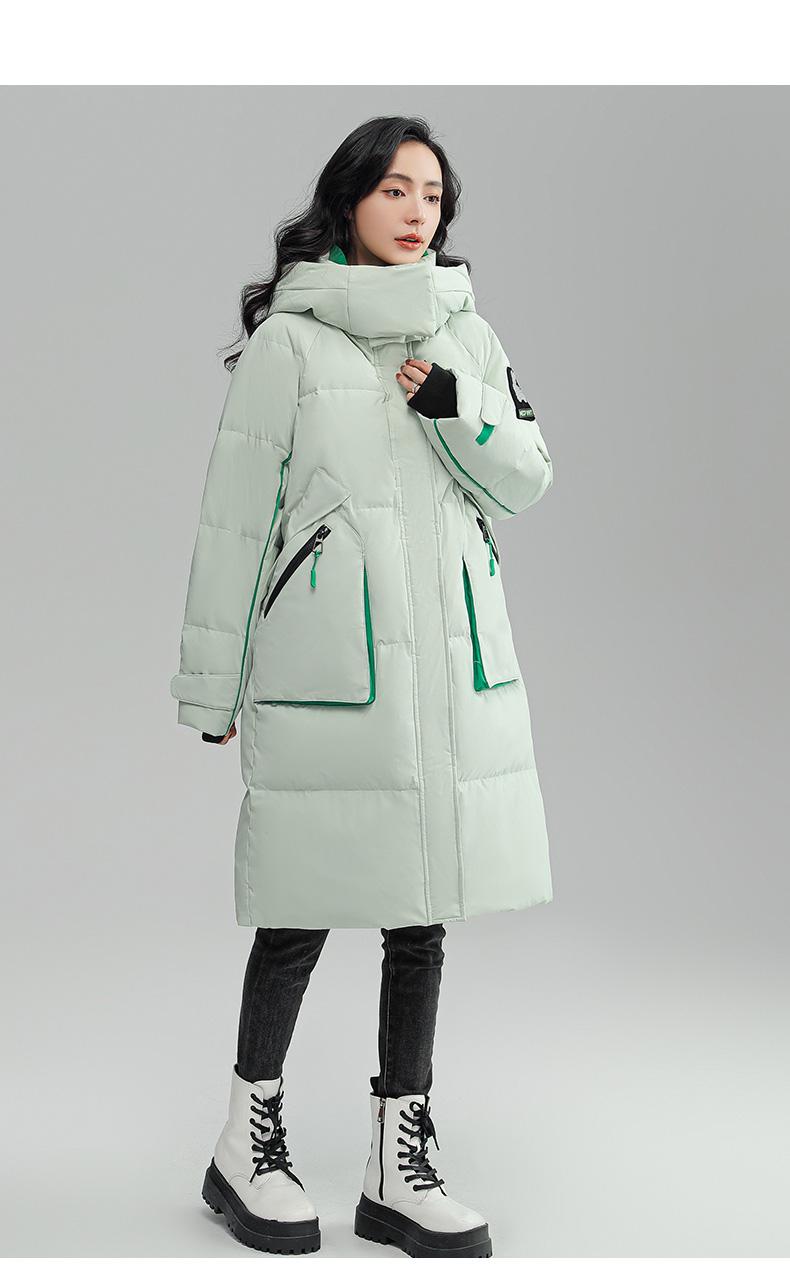 Chaqueta de plumón de pato para mujer de longitud media 2025 Invierno Nueva Moda Color de Contraste Patchwork con Capucha Cálida Chaqueta de plumón de pato