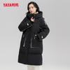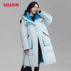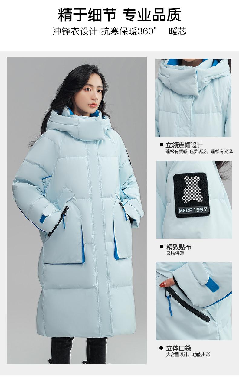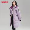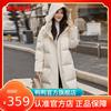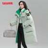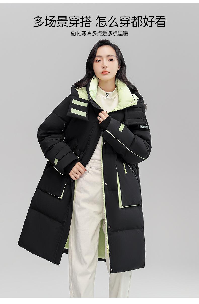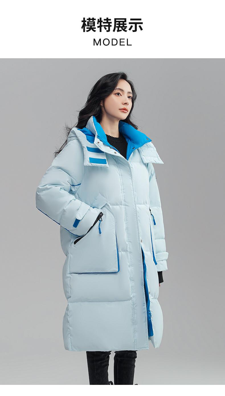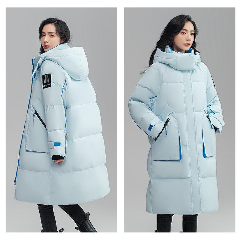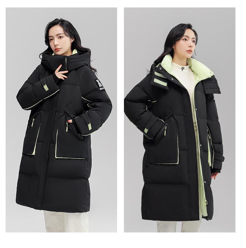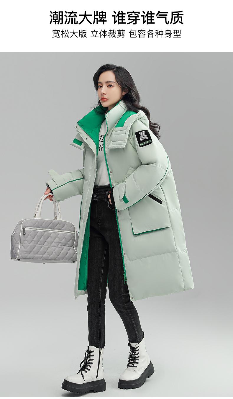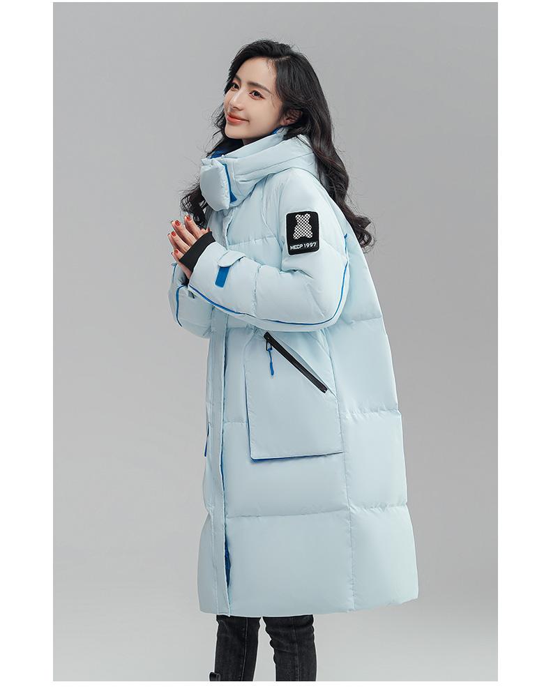Chaqueta de plumón de pato para mujer de longitud media 2025 Invierno Nueva Moda Color de Contraste Patchwork con Capucha Cálida Chaqueta de plumón de pato