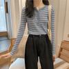 Primavera y otoño 2025 Nueva moda de moda Suéter de punto a rayas Estilo occidental Adelgazante Camisa de manga larga Top largo