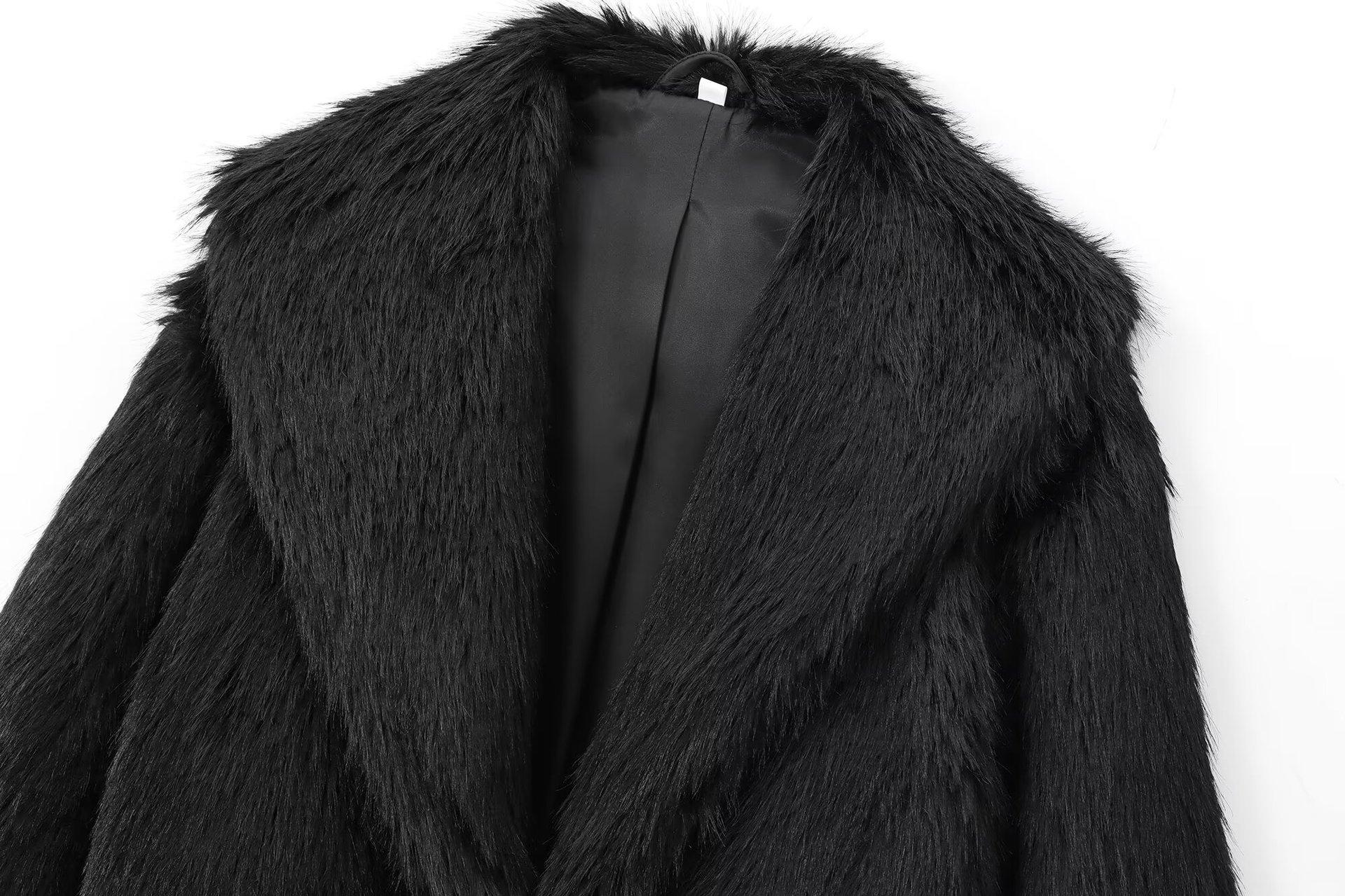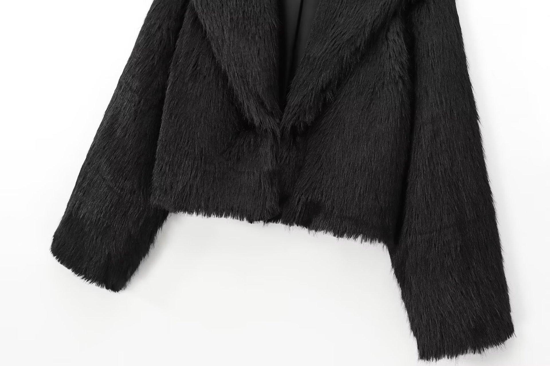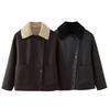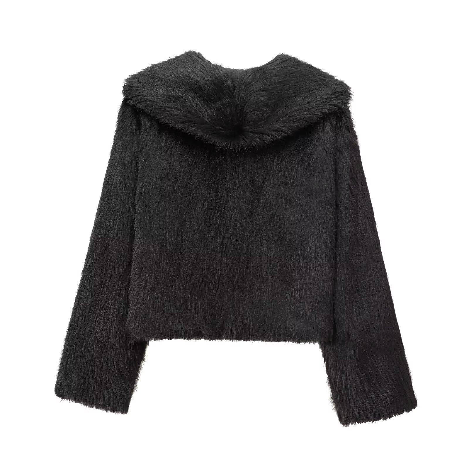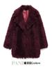 Abrigo de Solapa de Piel Sintética de Color Sólido para Mujer Abrigo de Mujer Amazon Europa y América Transfronterizo Venta al Por Mayor 2024 Otoño e Invierno Nuevo