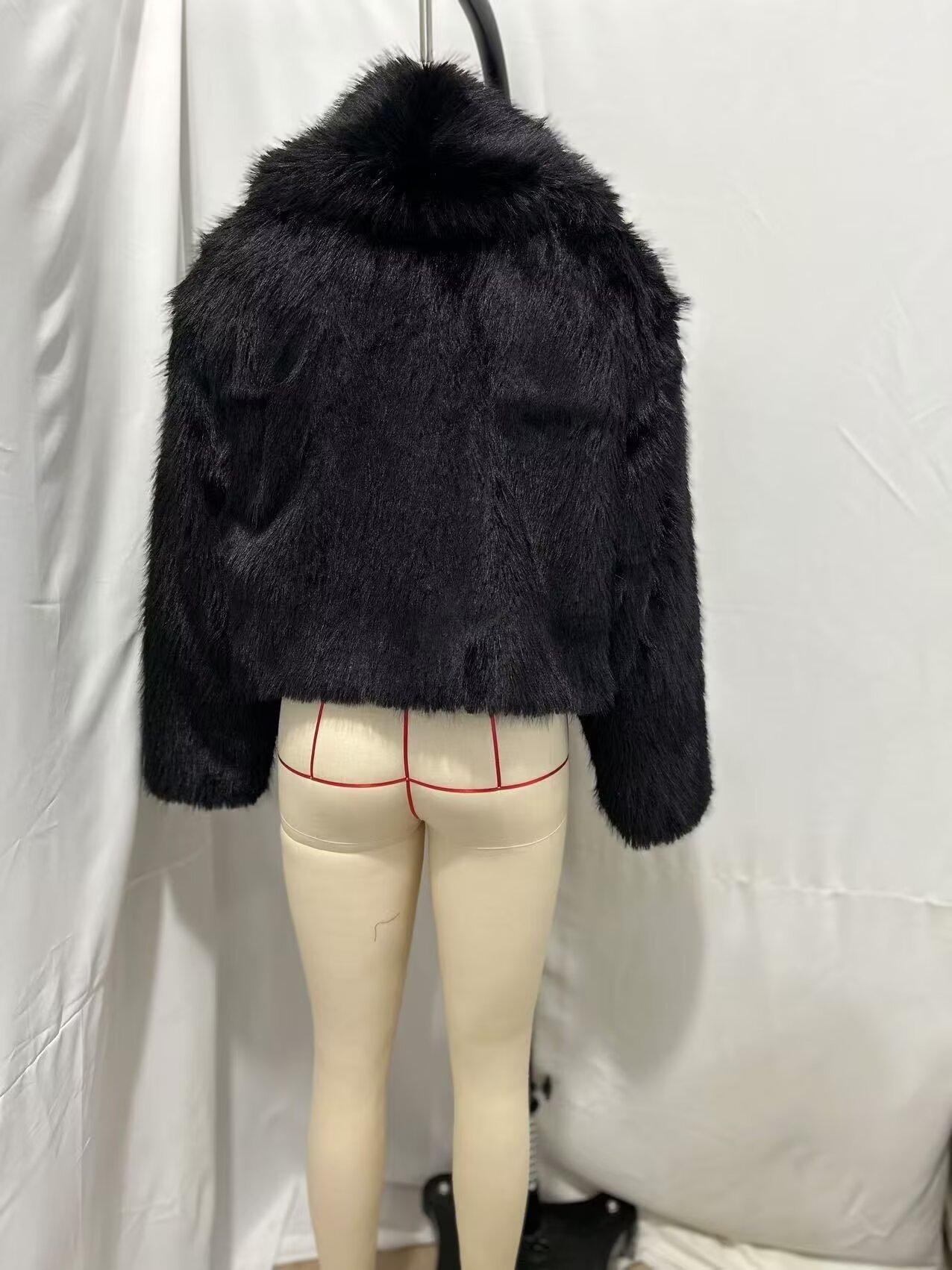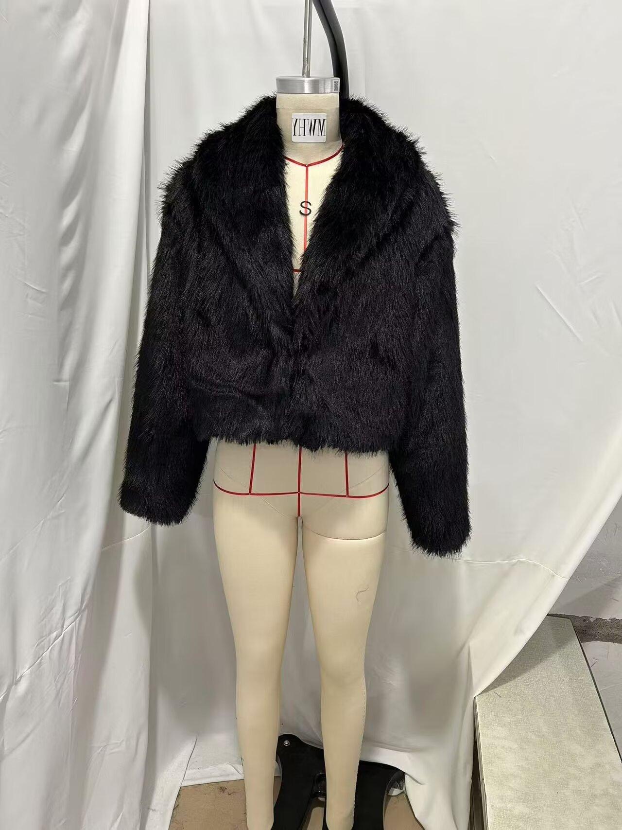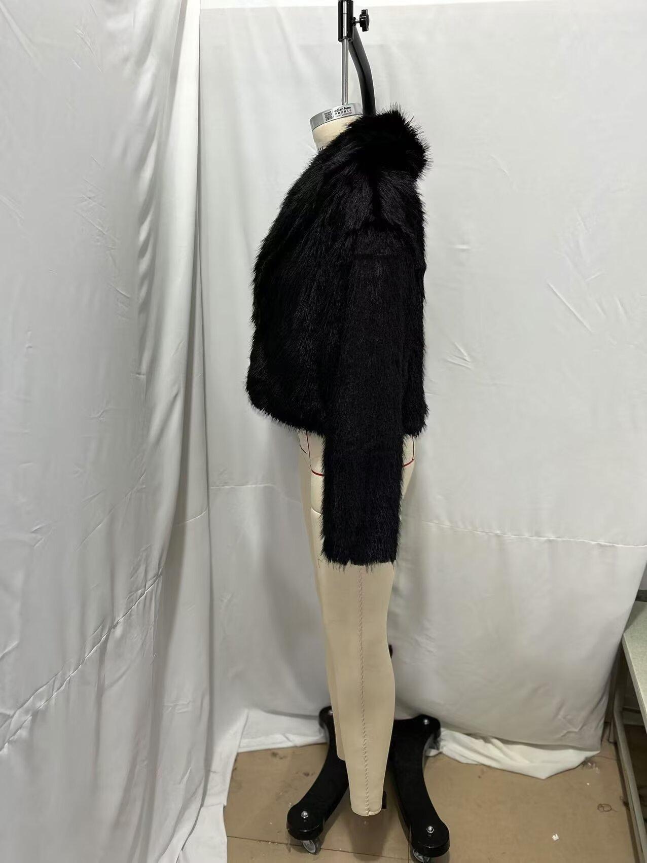 Abrigo de Solapa de Piel Sintética de Color Sólido para Mujer Abrigo de Mujer Amazon Europa y América Transfronterizo Venta al Por Mayor 2024 Otoño e Invierno Nuevo