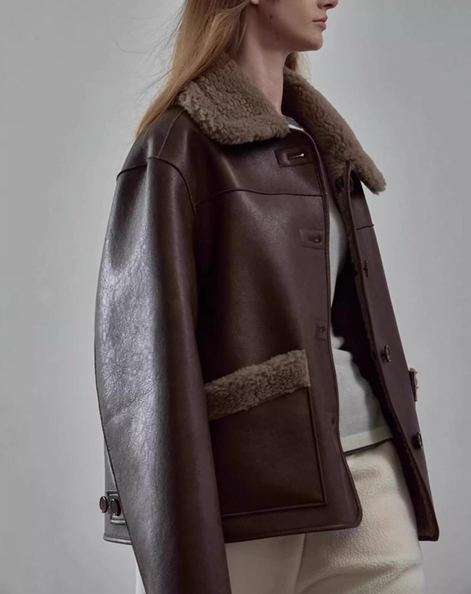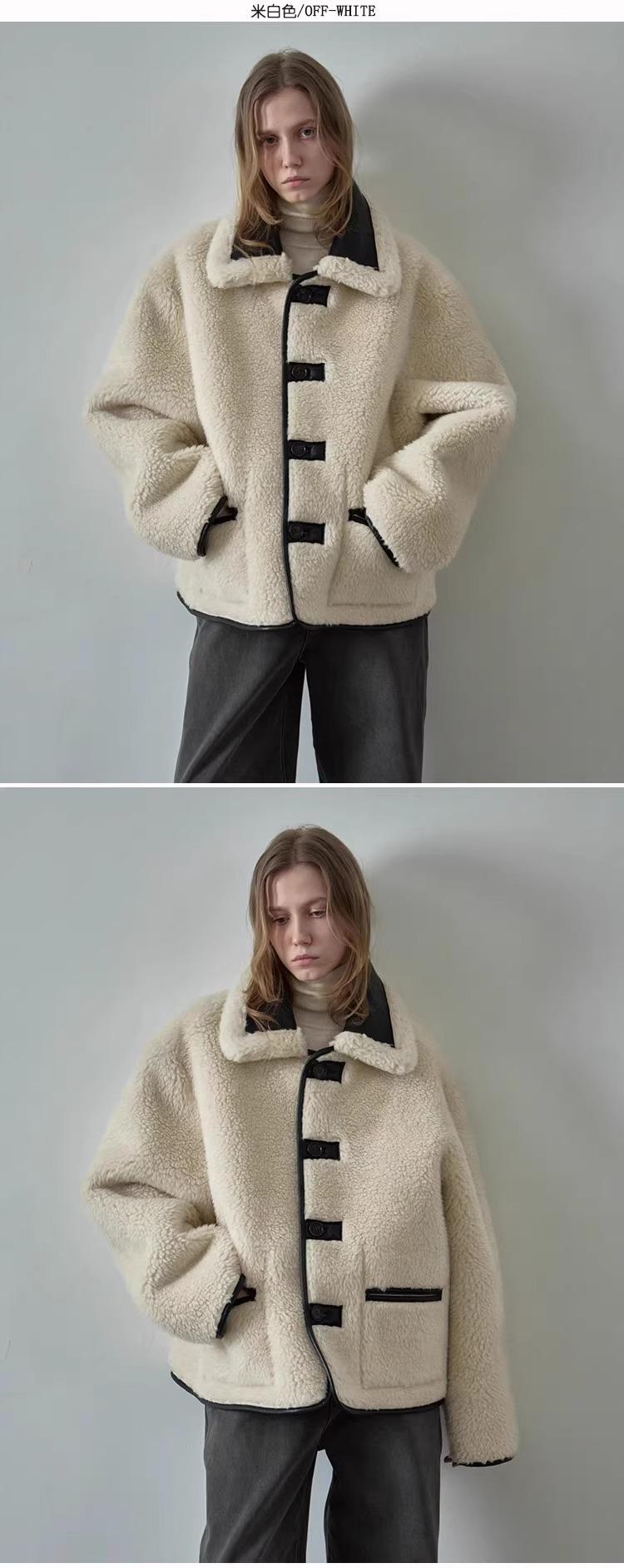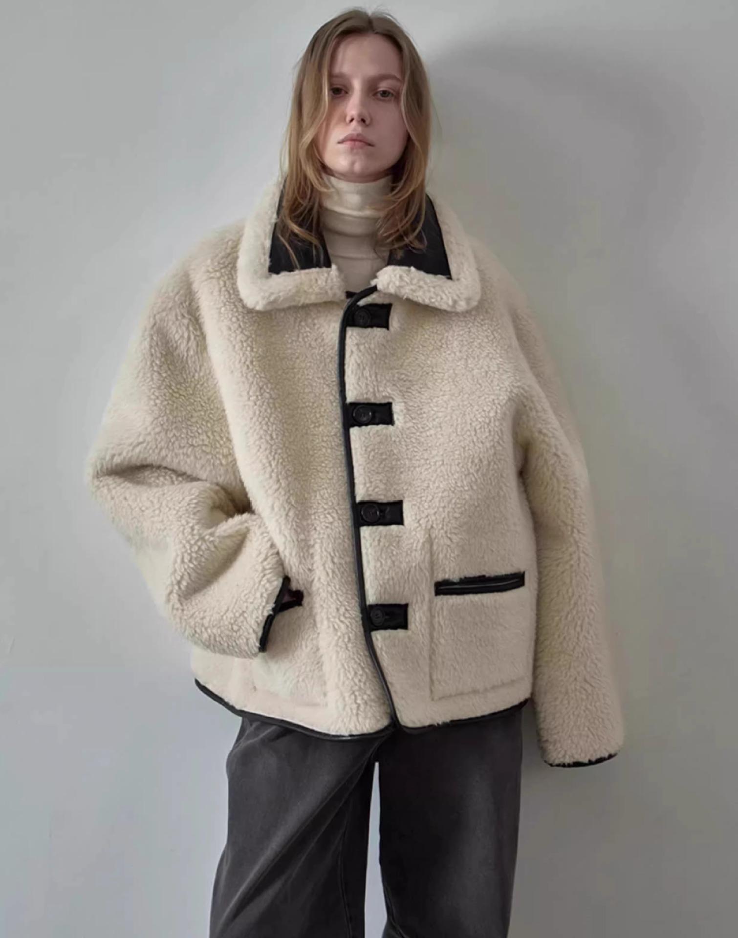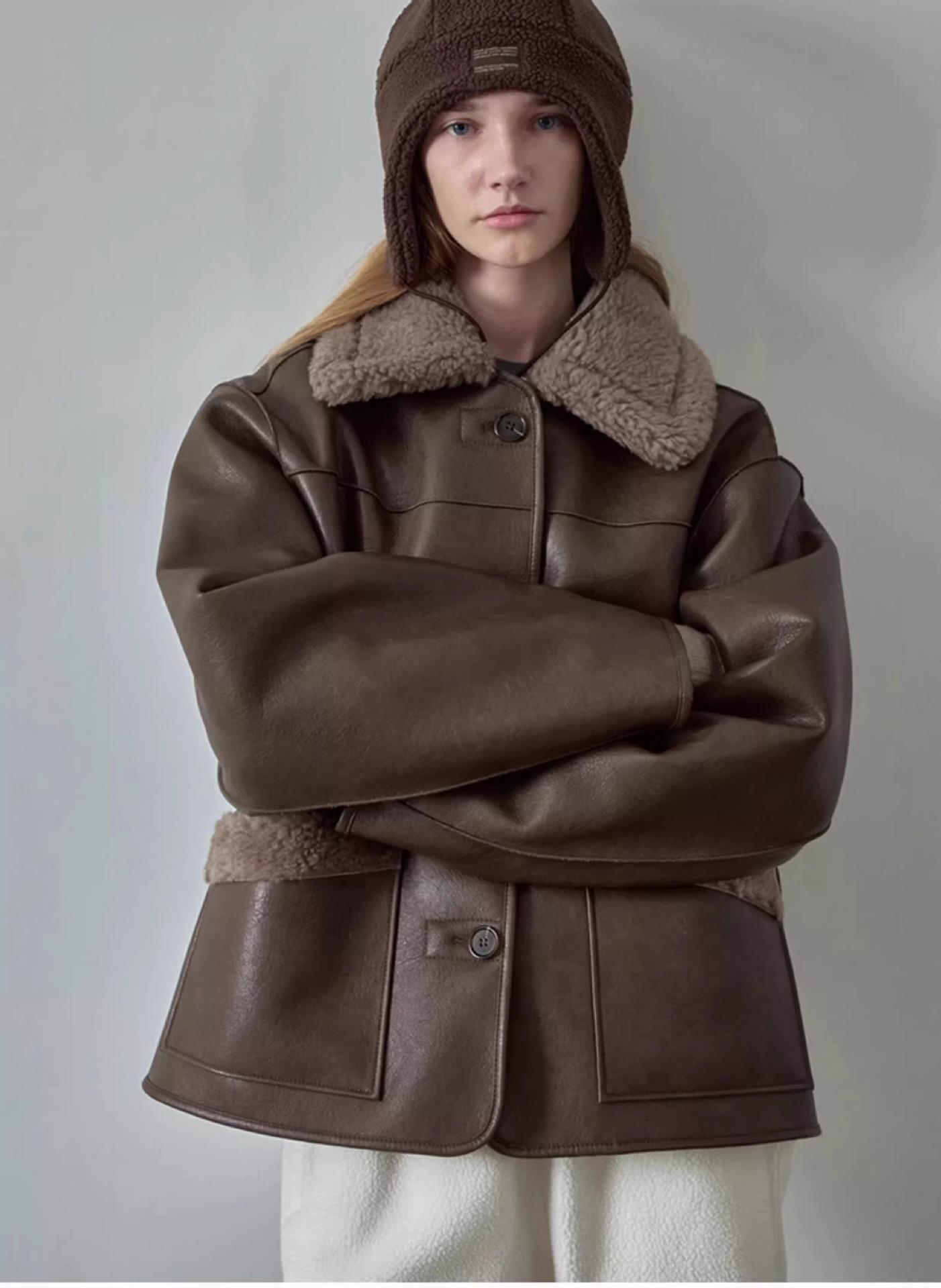 Faca*E Patte*N Ropa Exterior Reversible para Mujer Otoño e Invierno 2025 Nuevo Top de Una Pieza de Piel de Cordero
