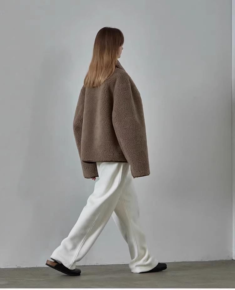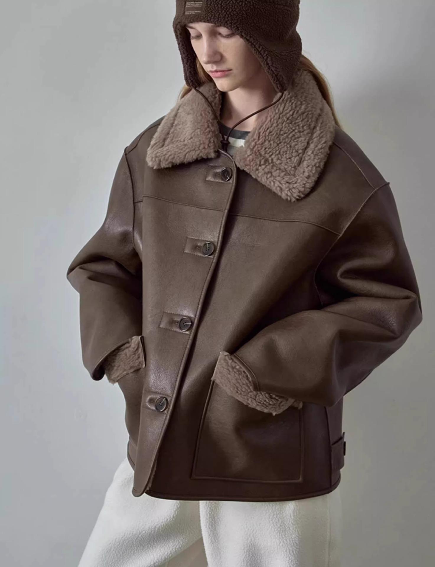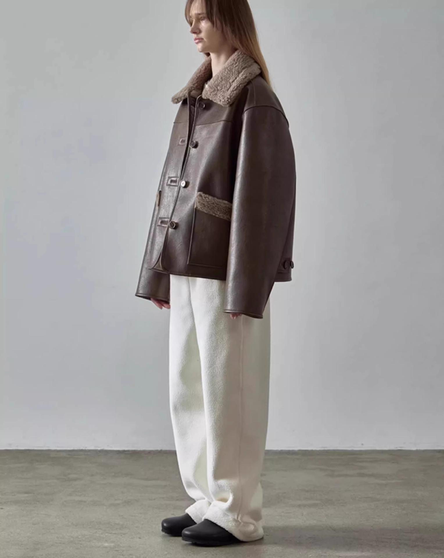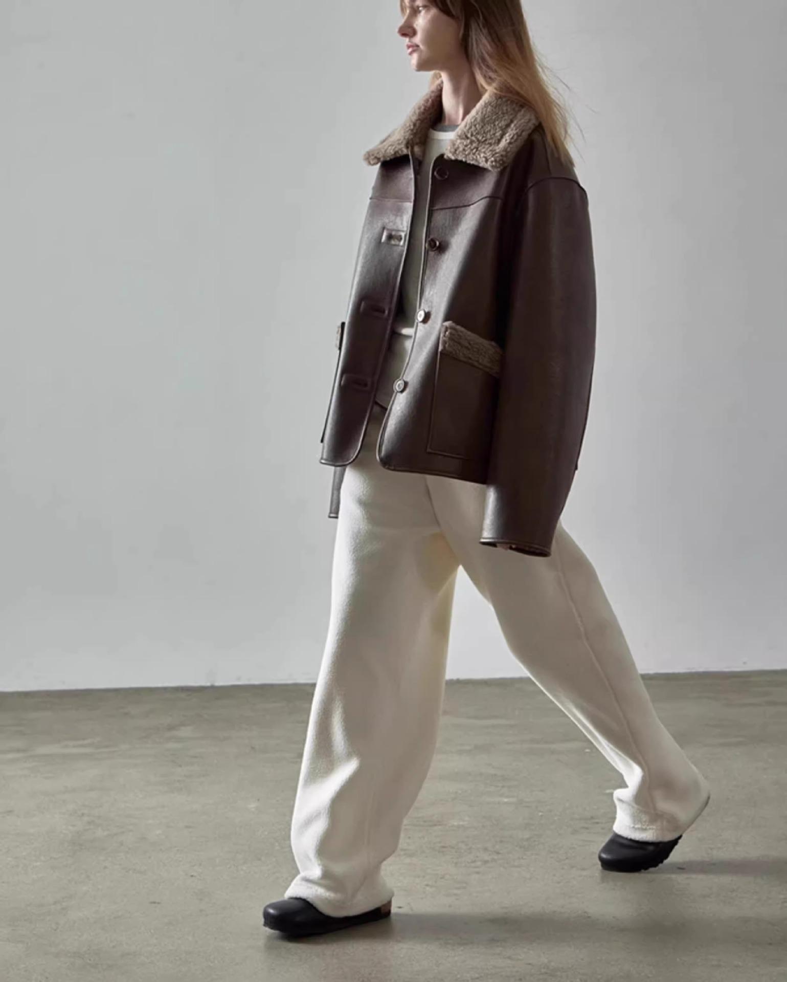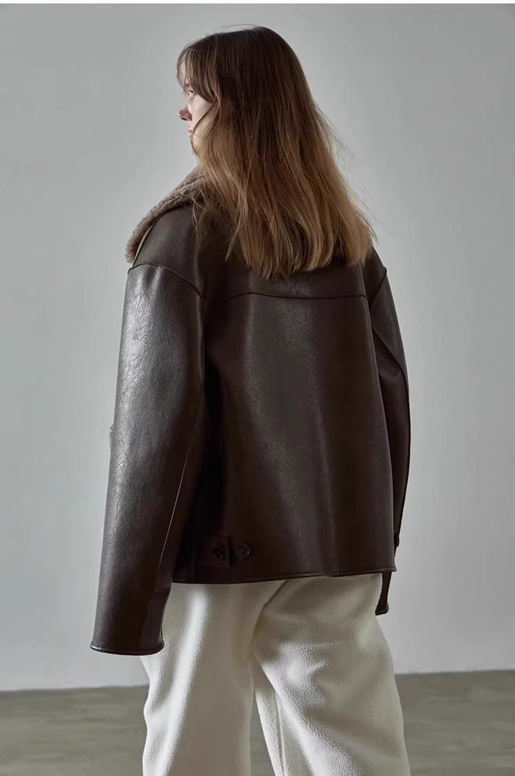 Faca*E Patte*N Ropa Exterior Reversible para Mujer Otoño e Invierno 2025 Nuevo Top de Una Pieza de Piel de Cordero