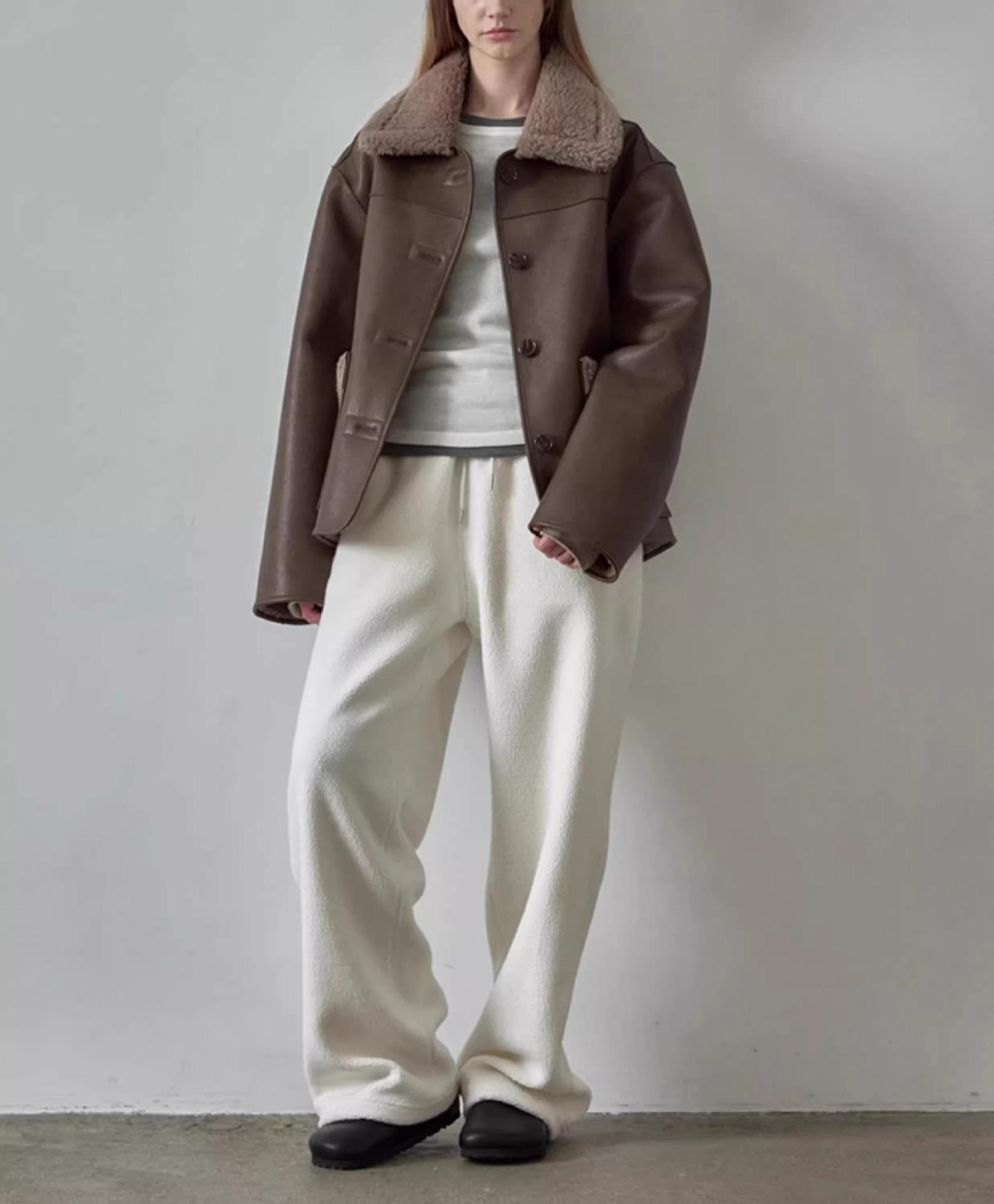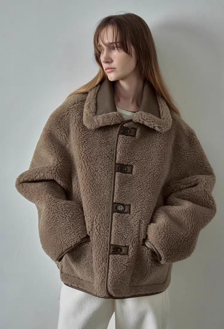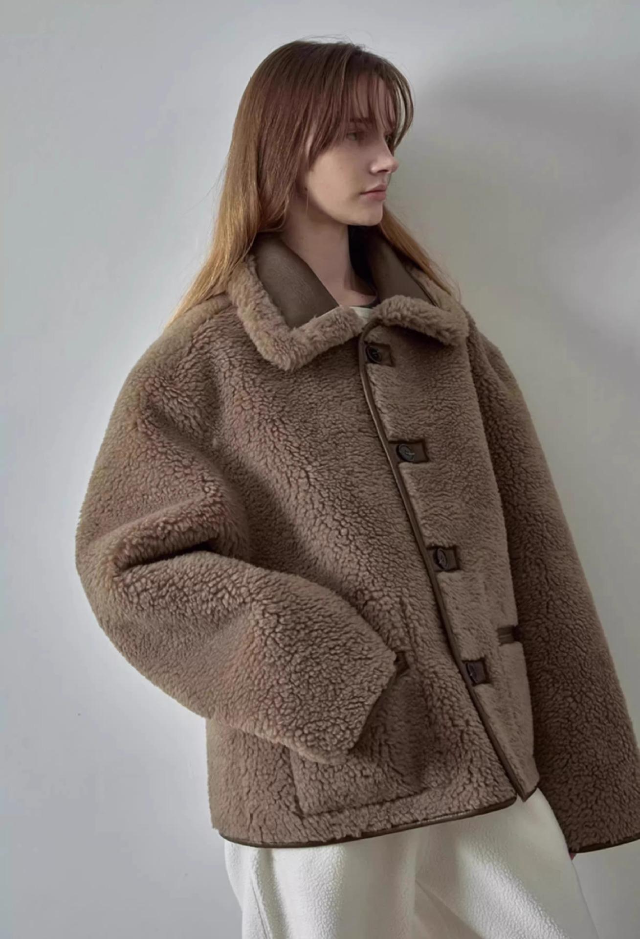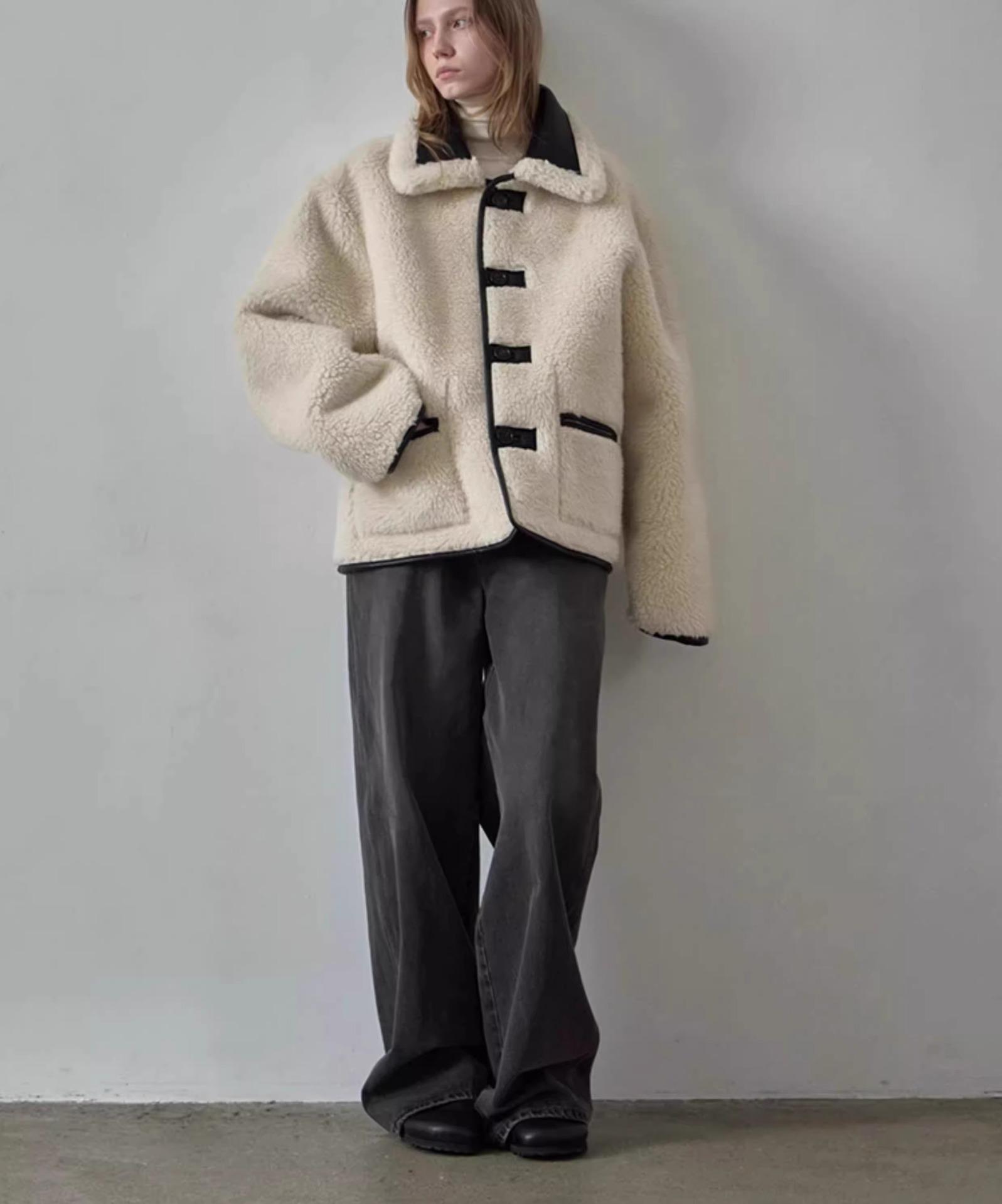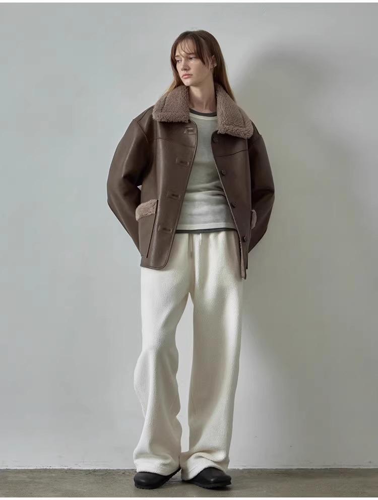 Faca*E Patte*N Ropa Exterior Reversible para Mujer Otoño e Invierno 2025 Nuevo Top de Una Pieza de Piel de Cordero