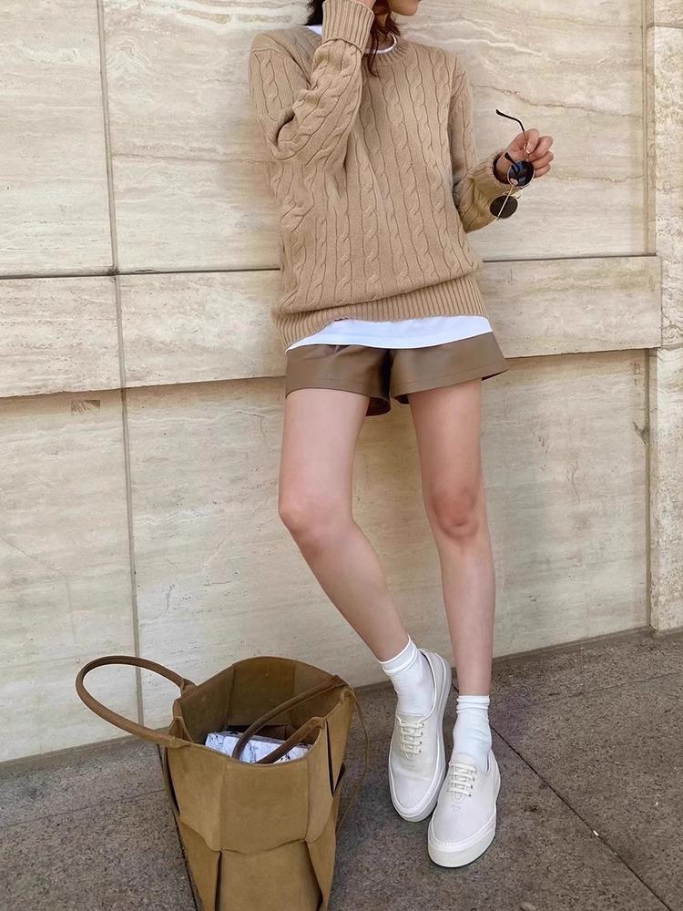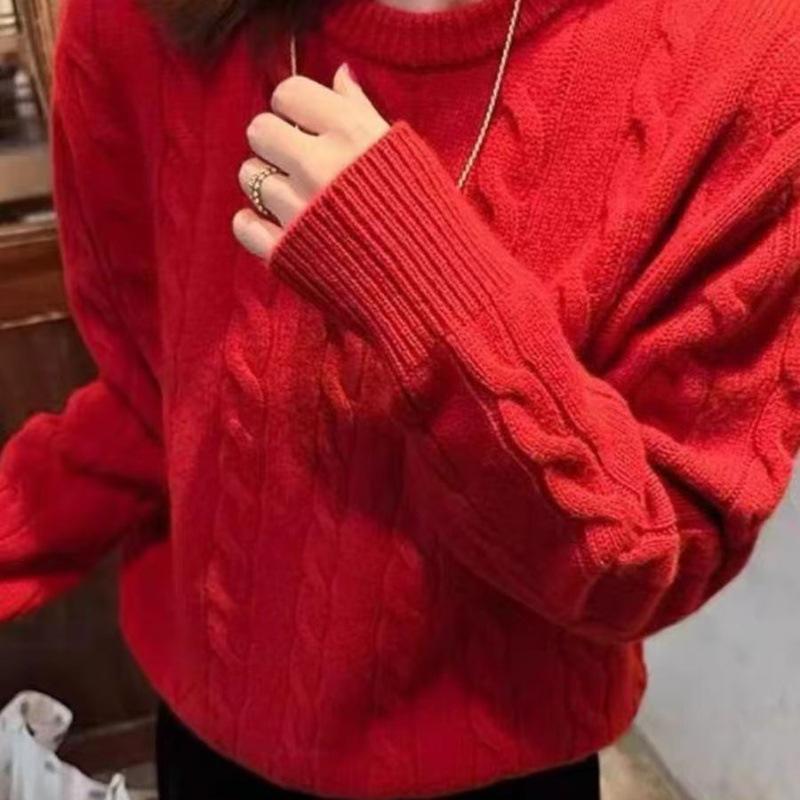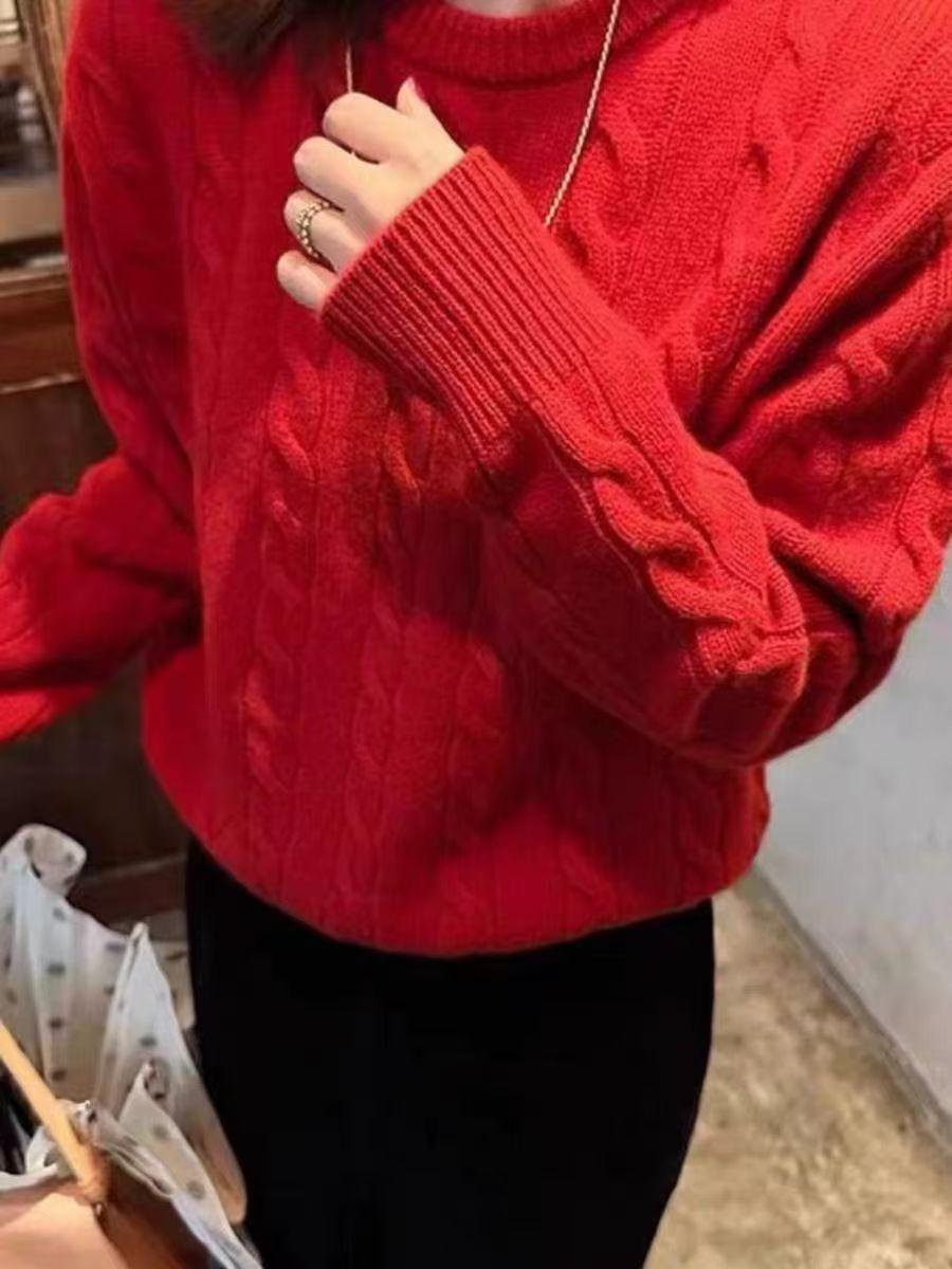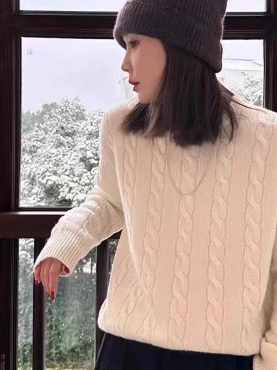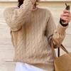 Suéter de cuello alto redondo de color sólido para mujer, jersey de punto de lana pura gruesa, holgado y cómodo, base ajustada, para otoño e invierno, nuevo