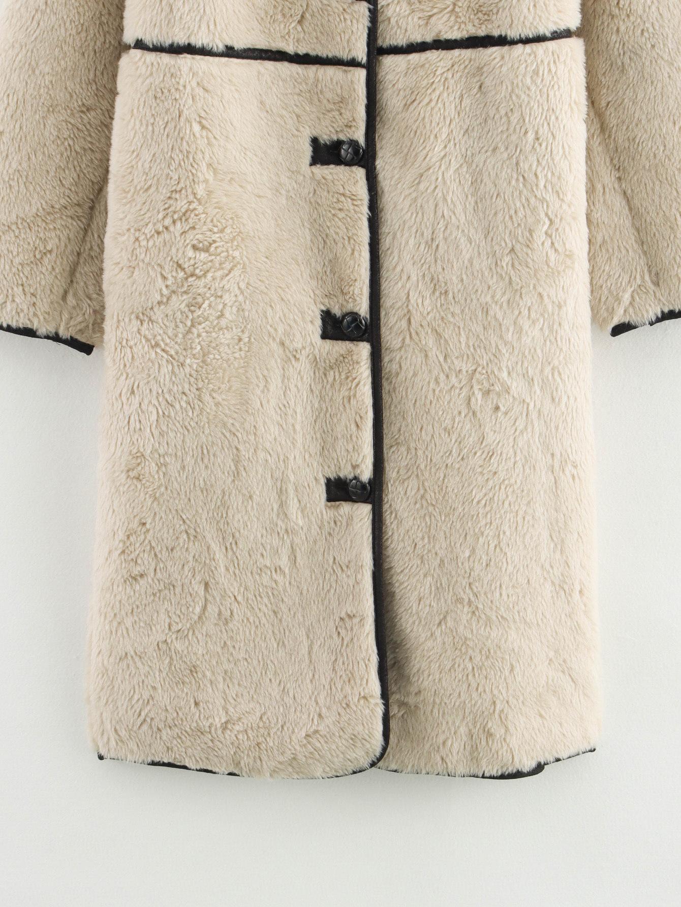 Abrigo de piel sintética con solapa grande y largo para mujer, moda transfronteriza europea y americana, invierno 2024, w050 924088