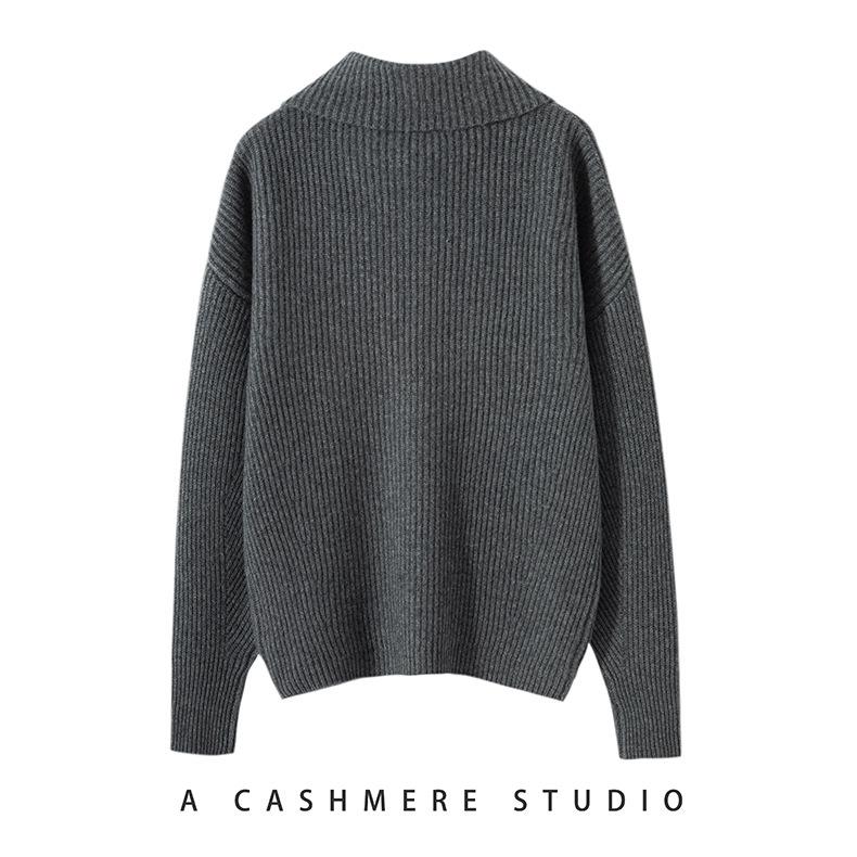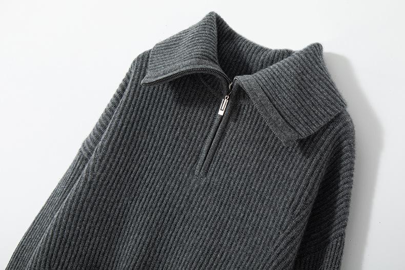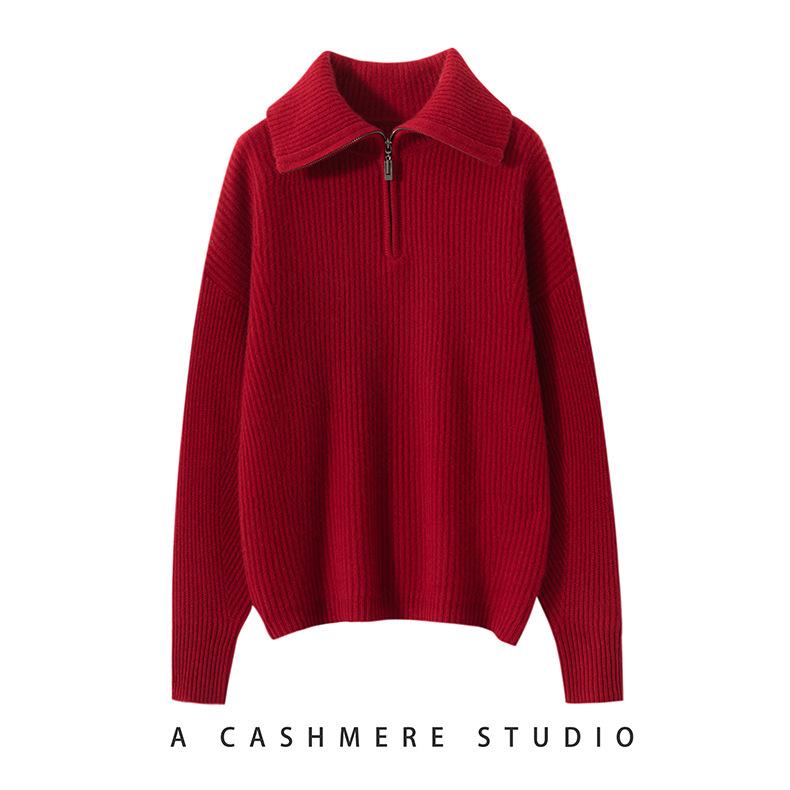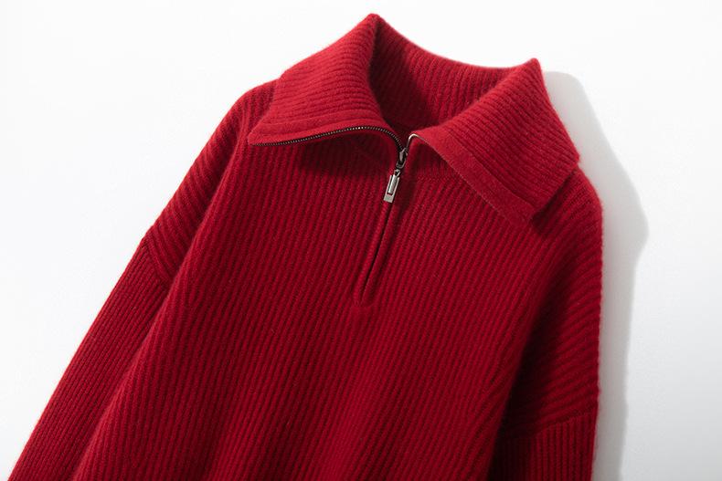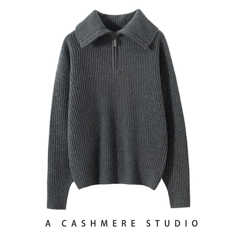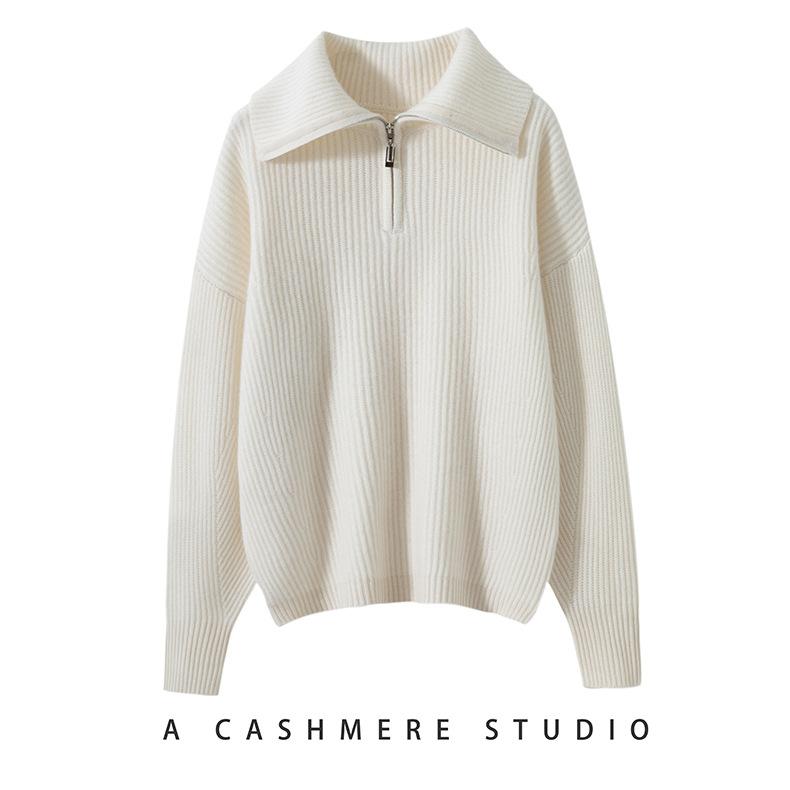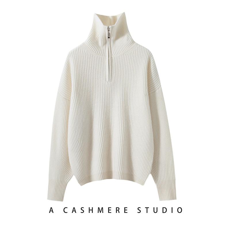 Suéter 100% Cachemira Ligera para Mujer con Media Cremallera Otoño e Invierno Nuevo Cuello Alto Engrosado Manga Larga Jersey de Punto para Fondo