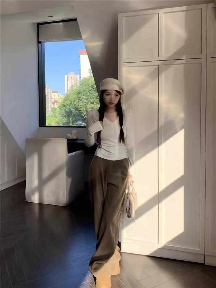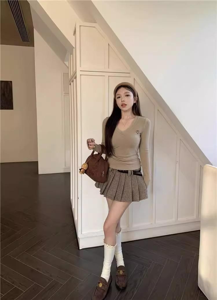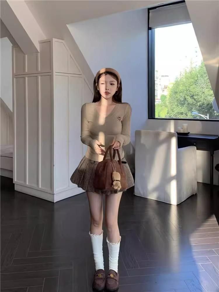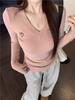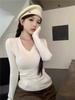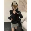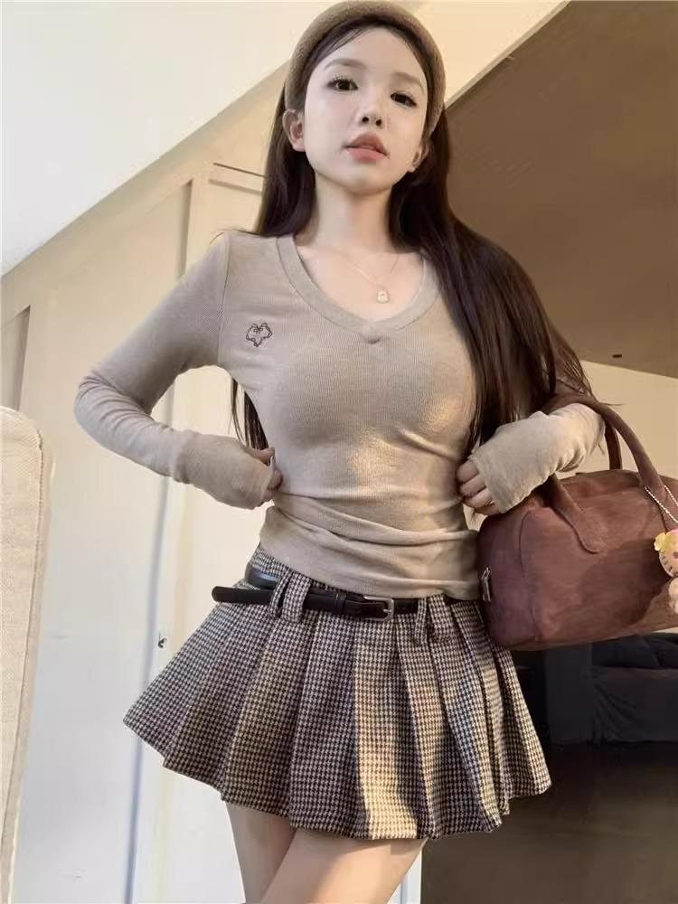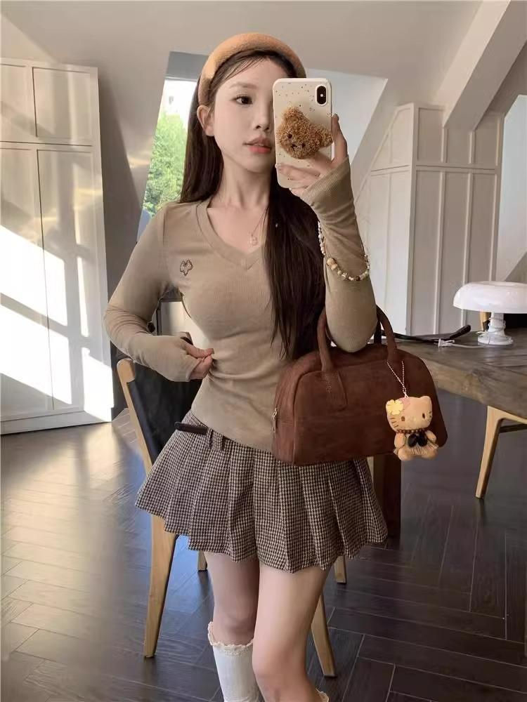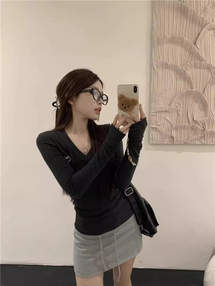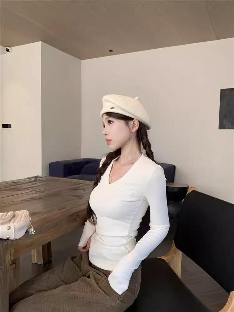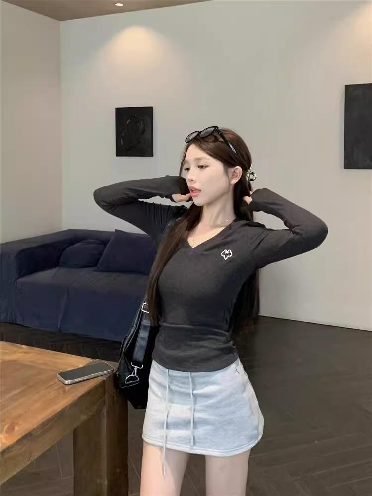 Playera Bordada con Cuello en V para Mujer Primavera y Otoño Manga Larga Dulce Cool Spice Girls Ajustada Adelgazante Primavera y Otoño Playera Base Top Invierno