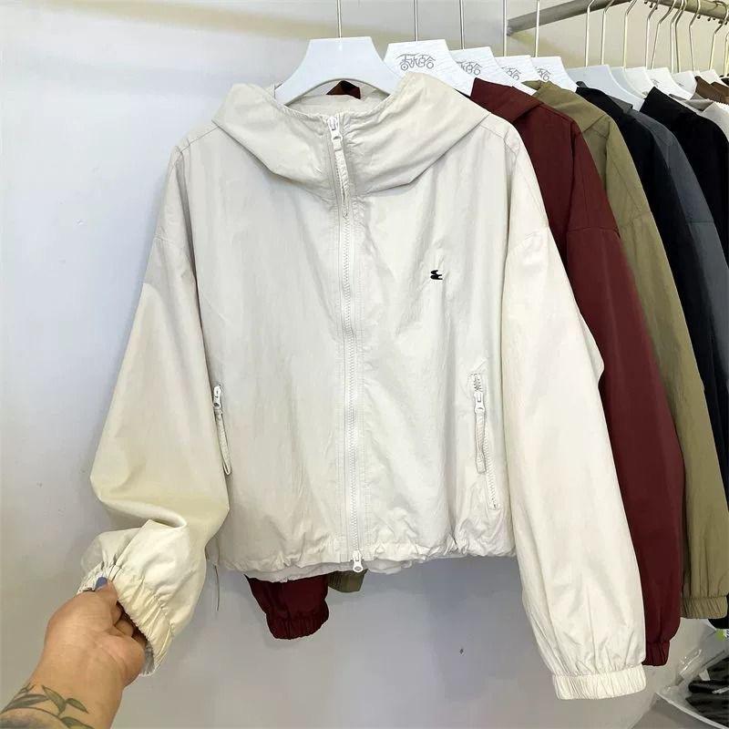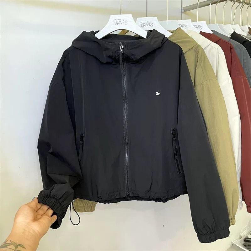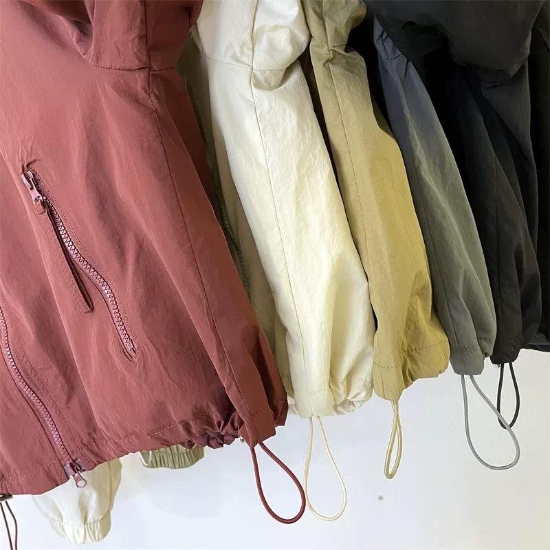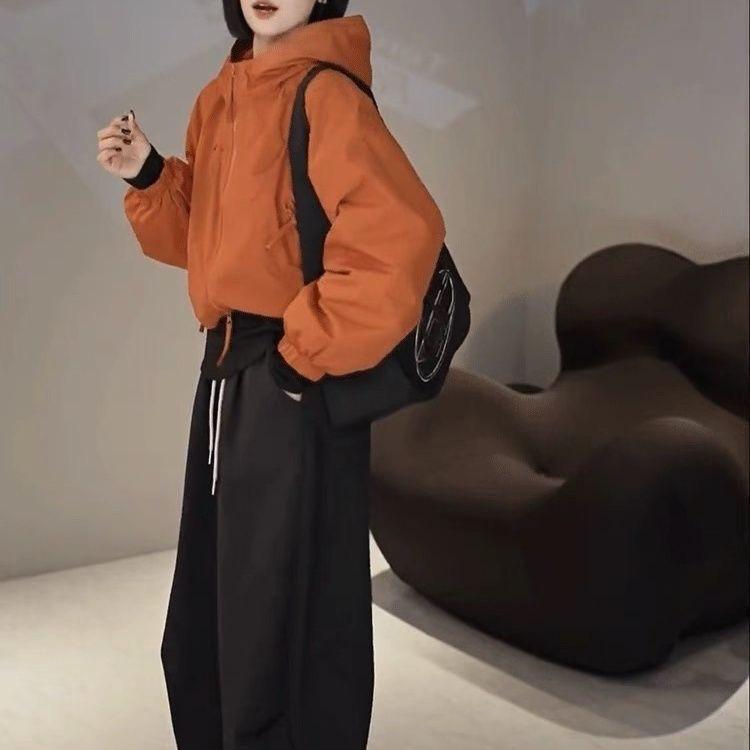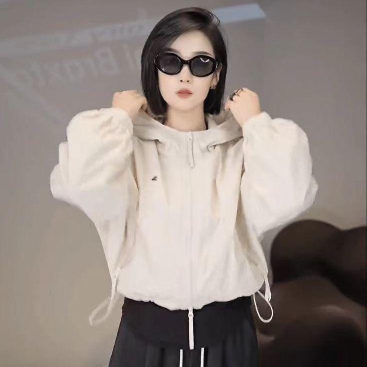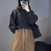 Chaqueta corta con capucha y cordón ajustable, informal, holgada, de manga larga y cintura alta, novedad de 2024