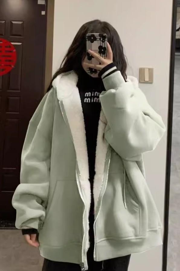 Green 530g warm lamb wool thickened
