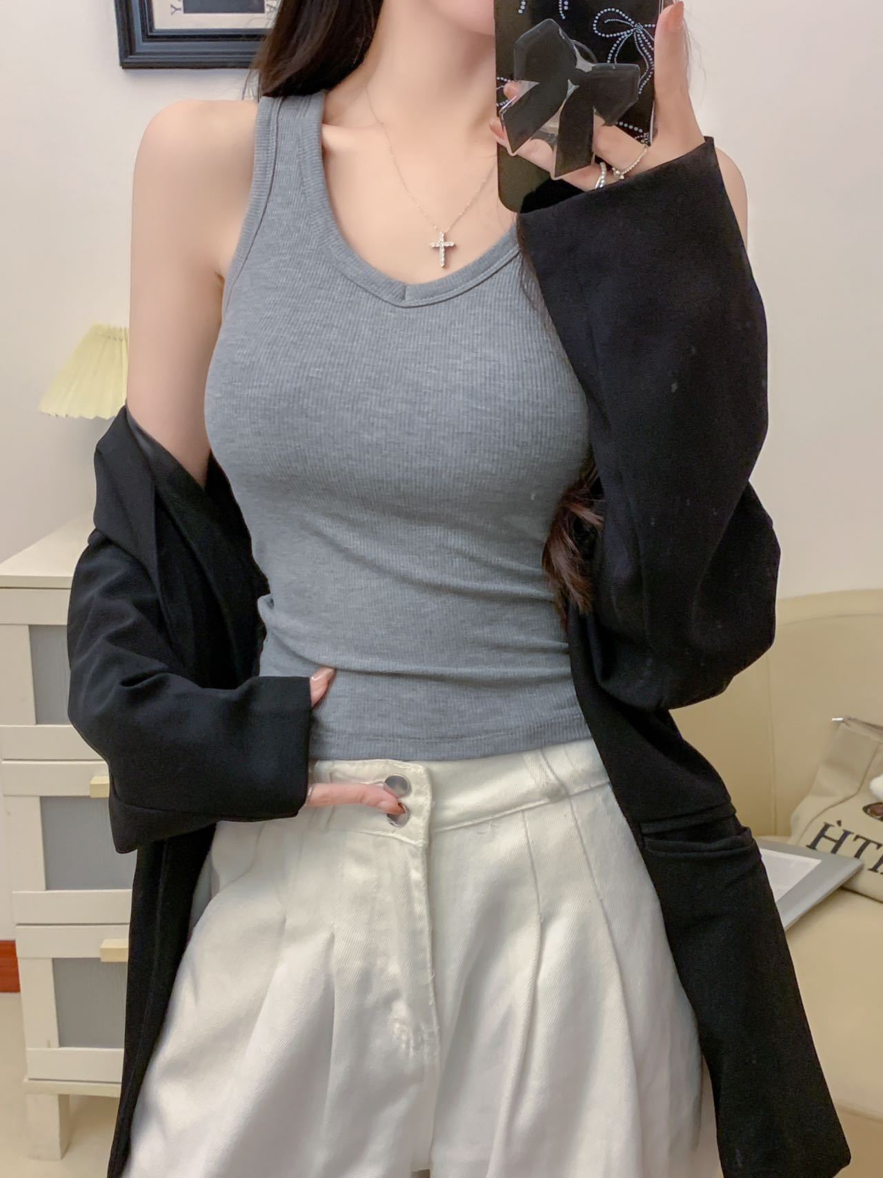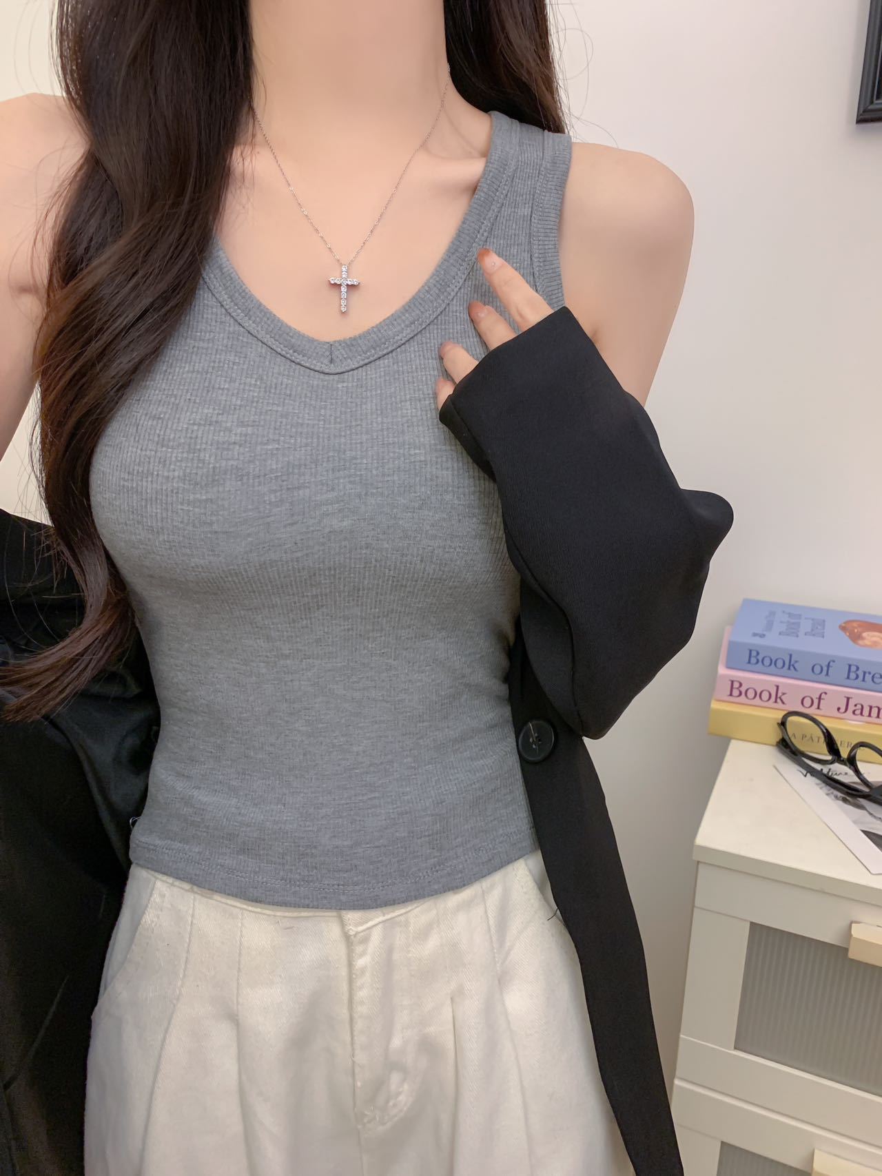 6609# Chaleco cálido de algodón cepillado nuevo, sencillo, para otoño e invierno, con almohadilla para el pecho, ajustado, para adelgazar, para uso interior y exterior.