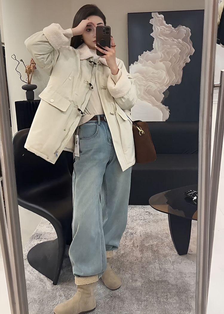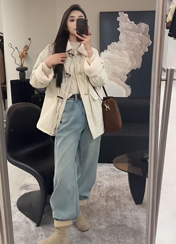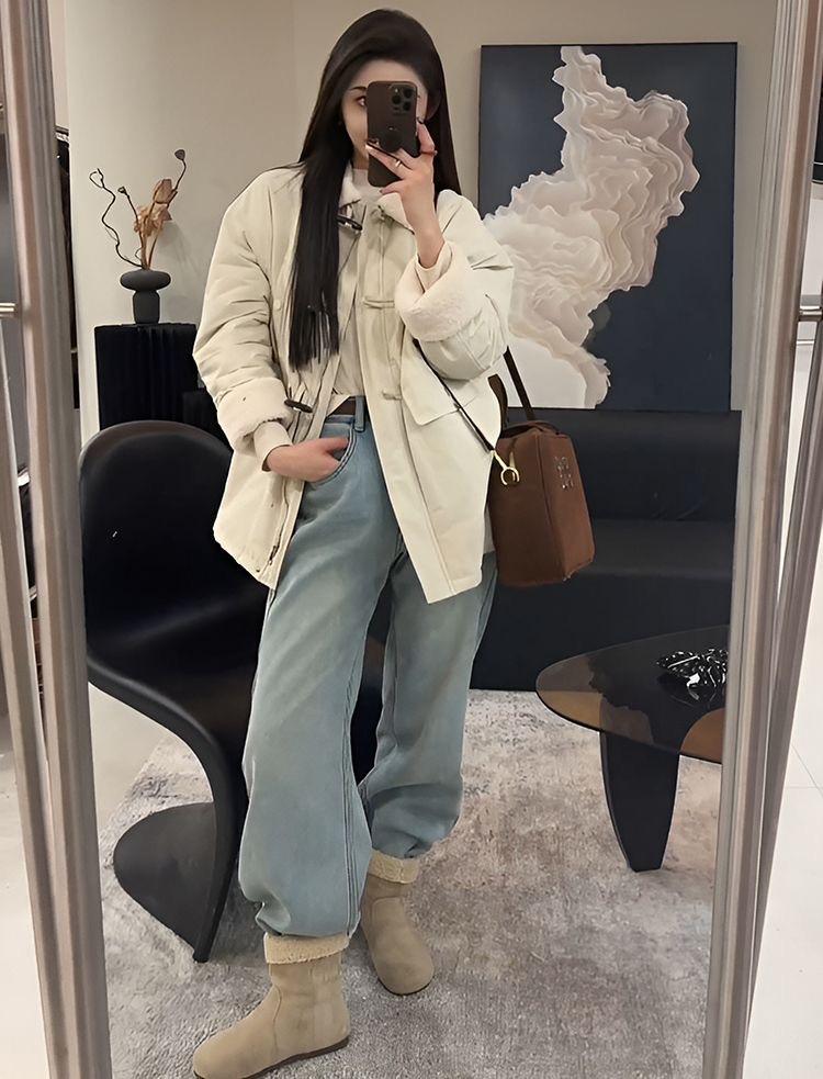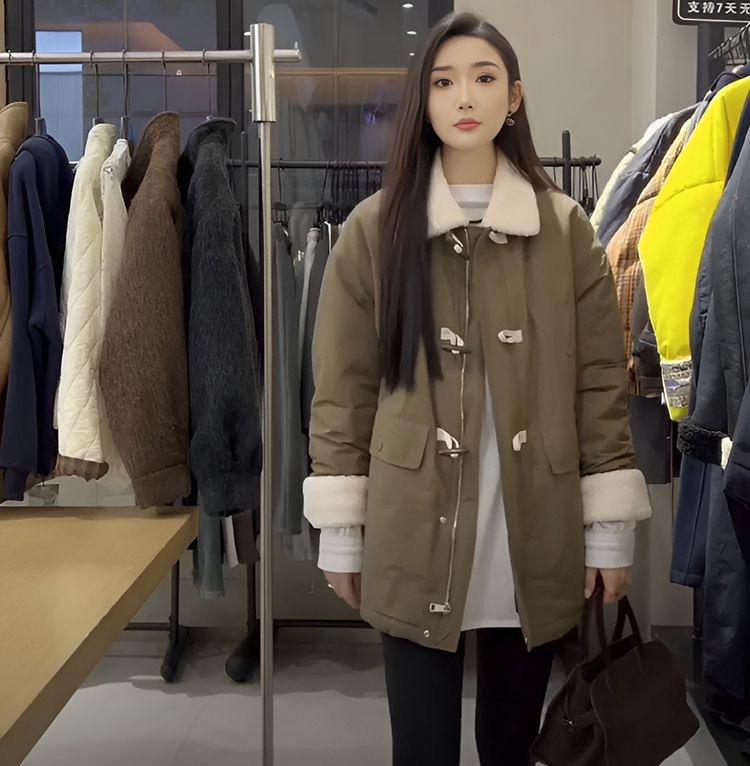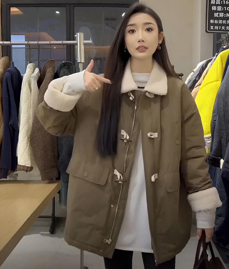 Abrigo vintage de lana de cordero gruesa con costuras de algodón acolchado para mujer, invierno 2024, nuevo abrigo informal holgado y sencillo que combina con todo.