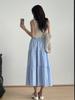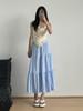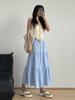Falda de verano 2024, estilo francés, fresca, con costuras a cuadros, cintura alta, adelgazante, corte A, falda amplia con vuelo para mujer