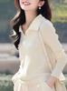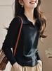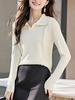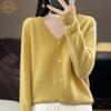 Suéter de manga larga con cuello en V para mujer, otoño e invierno 2024, estilo polo con hombros descubiertos, suave, sencillo y a la moda.