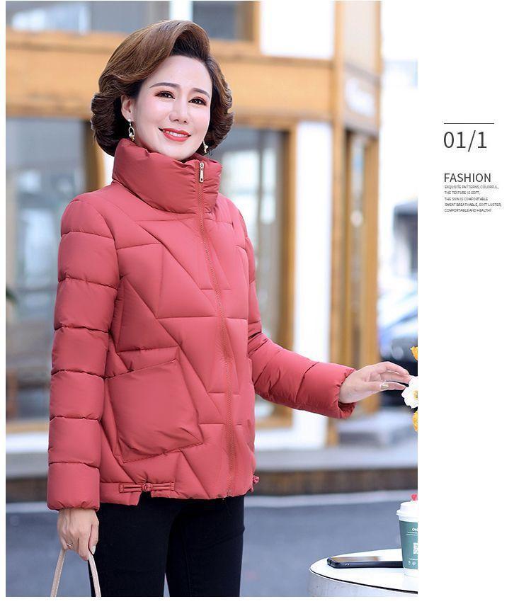 Chaqueta acolchada de algodón cálida para madres de mediana edad, chaqueta corta acolchada de algodón para personas de mediana edad y mayores, nueva chaqueta acolchada de algodón de invierno con cuello extranjero