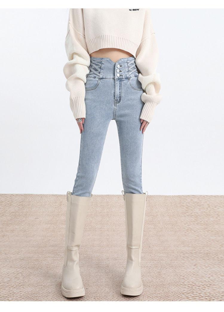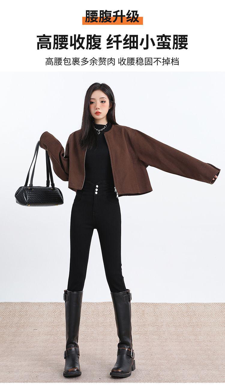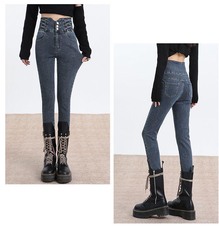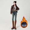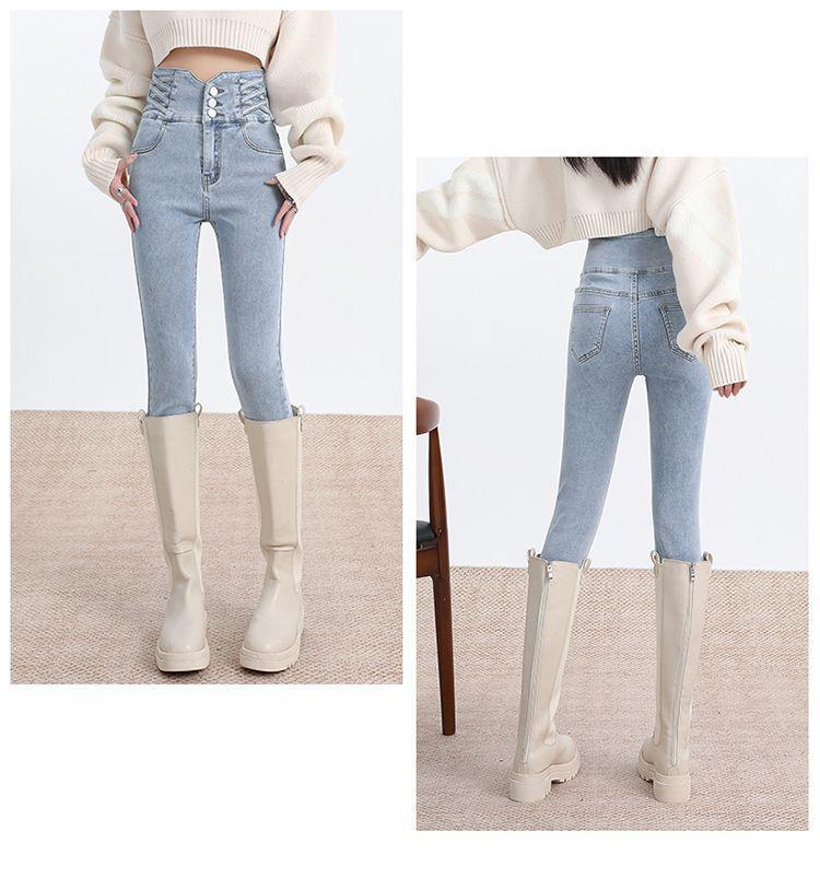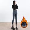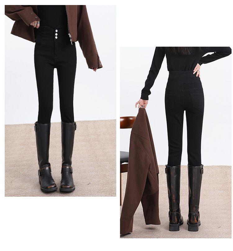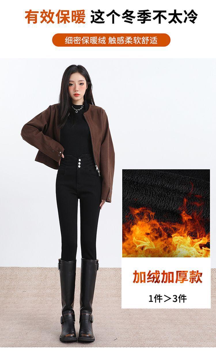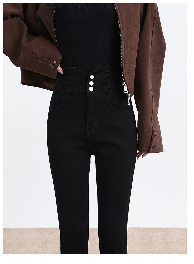 Pantalones vaqueros de cintura alta para mujer, otoño e invierno 2024, nuevos, ajustados, negros, ajustados, ajustados, con forro polar.