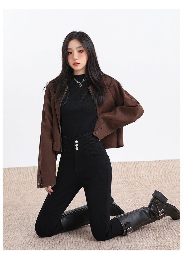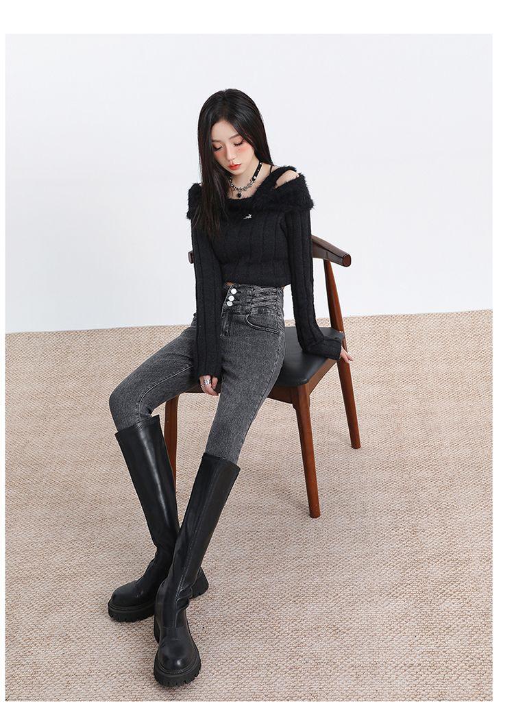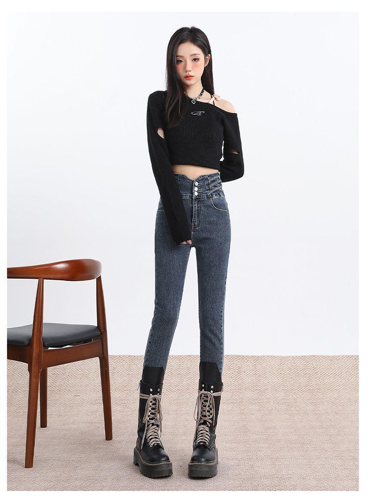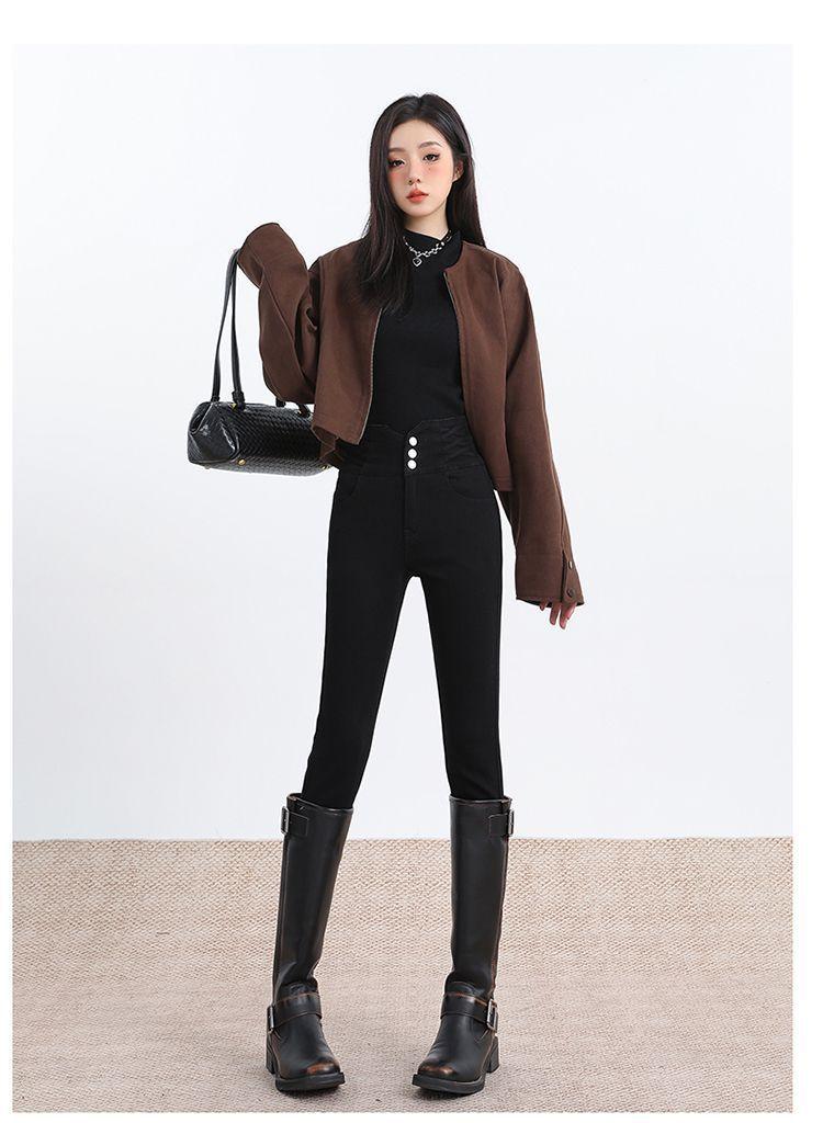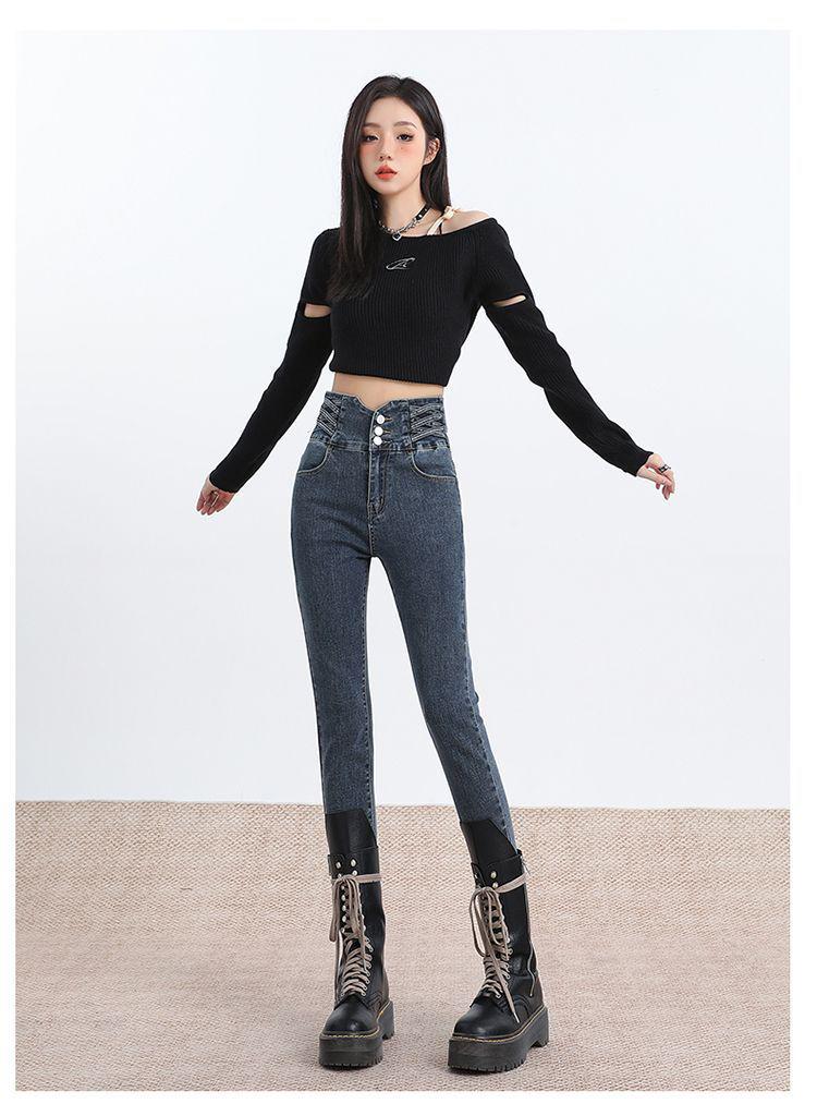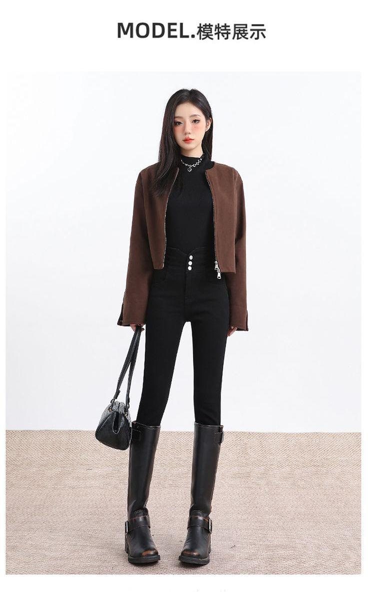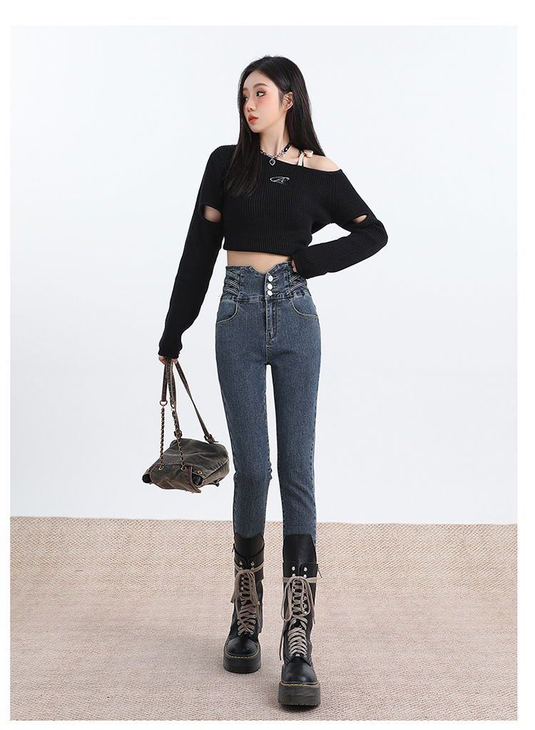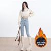 Pantalones vaqueros de cintura alta para mujer, otoño e invierno 2024, nuevos, ajustados, negros, ajustados, ajustados, con forro polar.