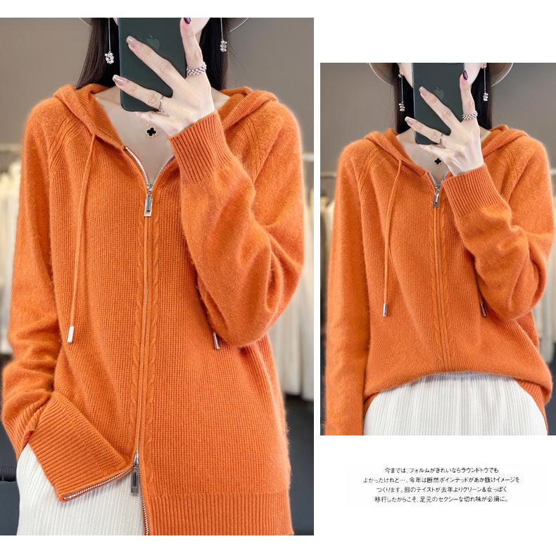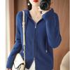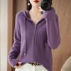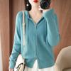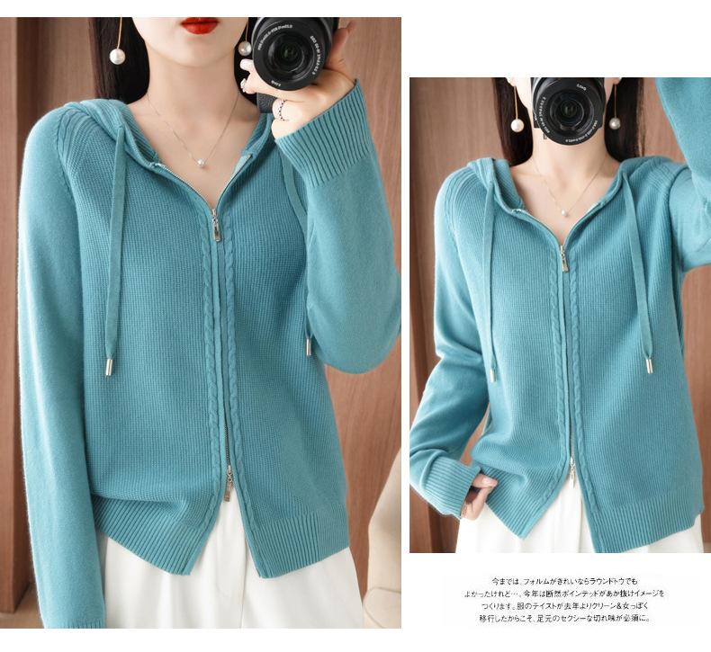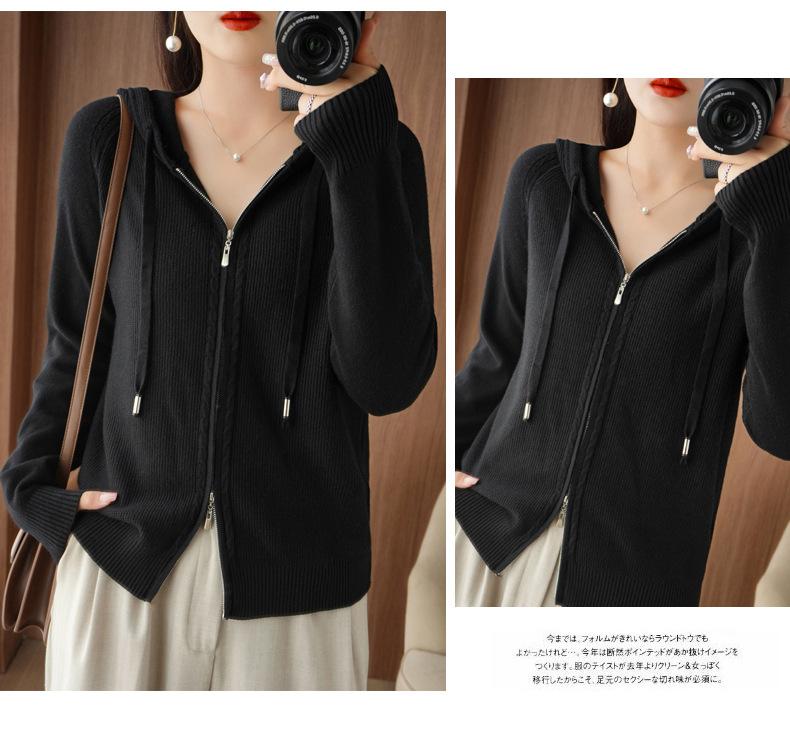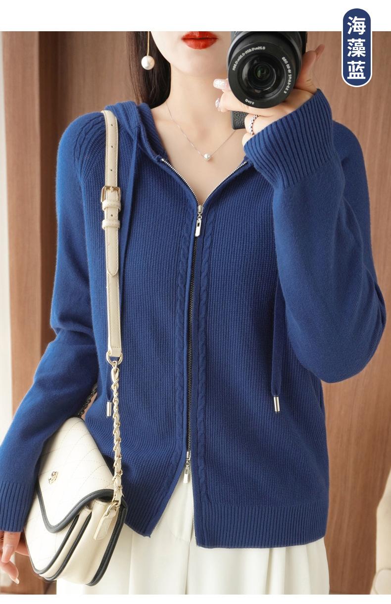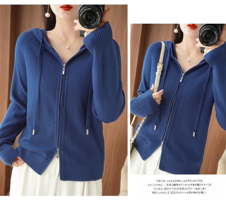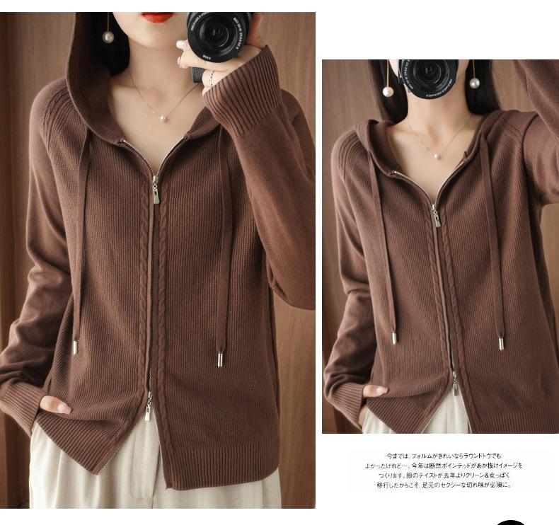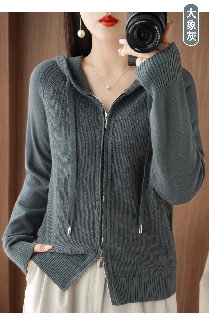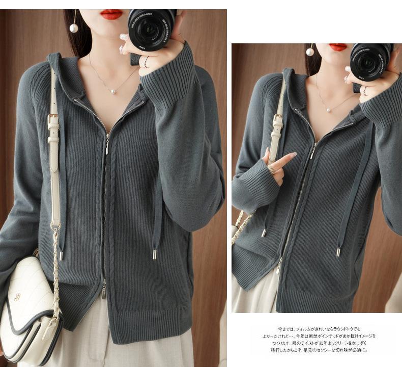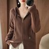 Cárdigan de punto de terciopelo Andy para mujer, otoño e invierno, nuevo, con capucha, color liso, elegante, informal, suelto, sencillo, con doble cremallera