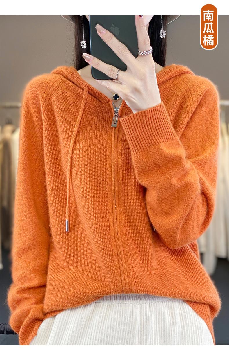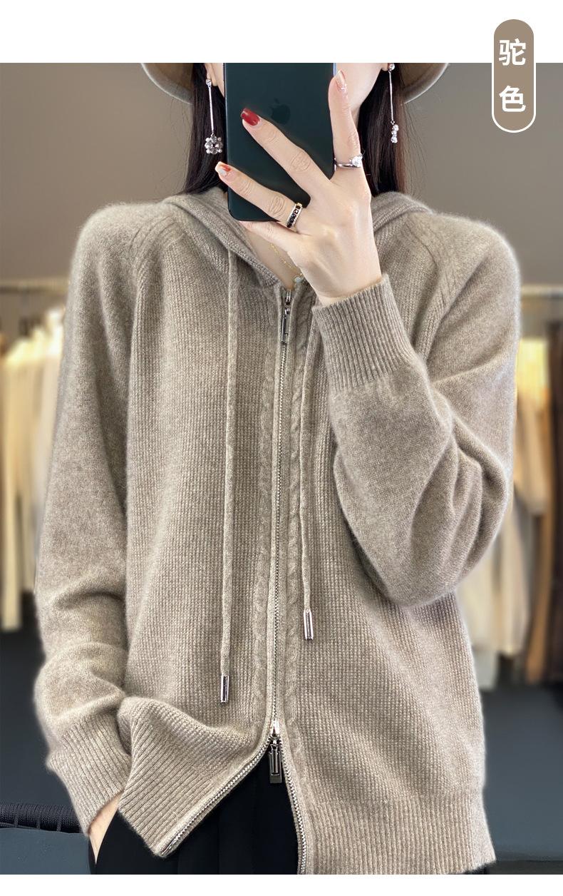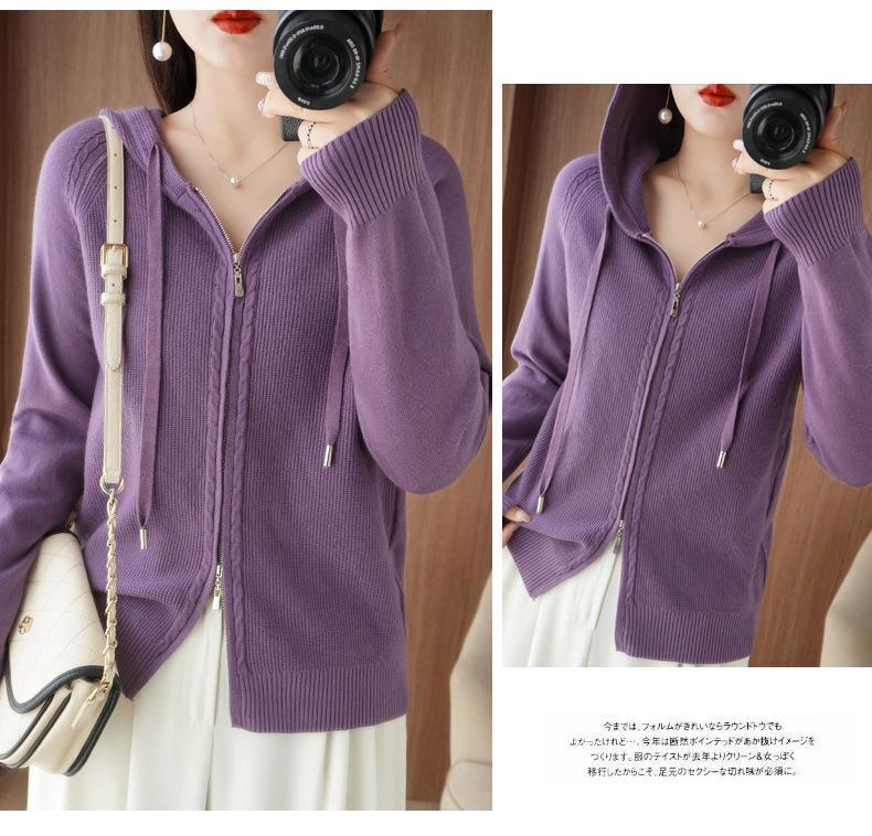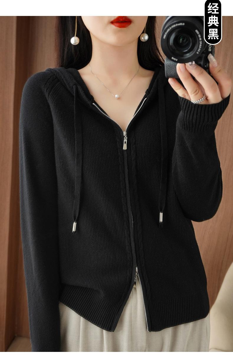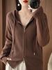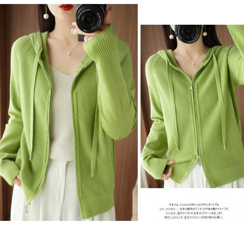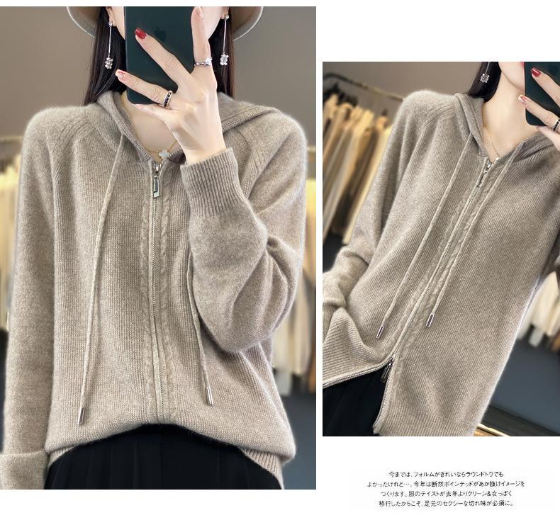 Cárdigan de punto de terciopelo Andy para mujer, otoño e invierno, nuevo, con capucha, color liso, elegante, informal, suelto, sencillo, con doble cremallera