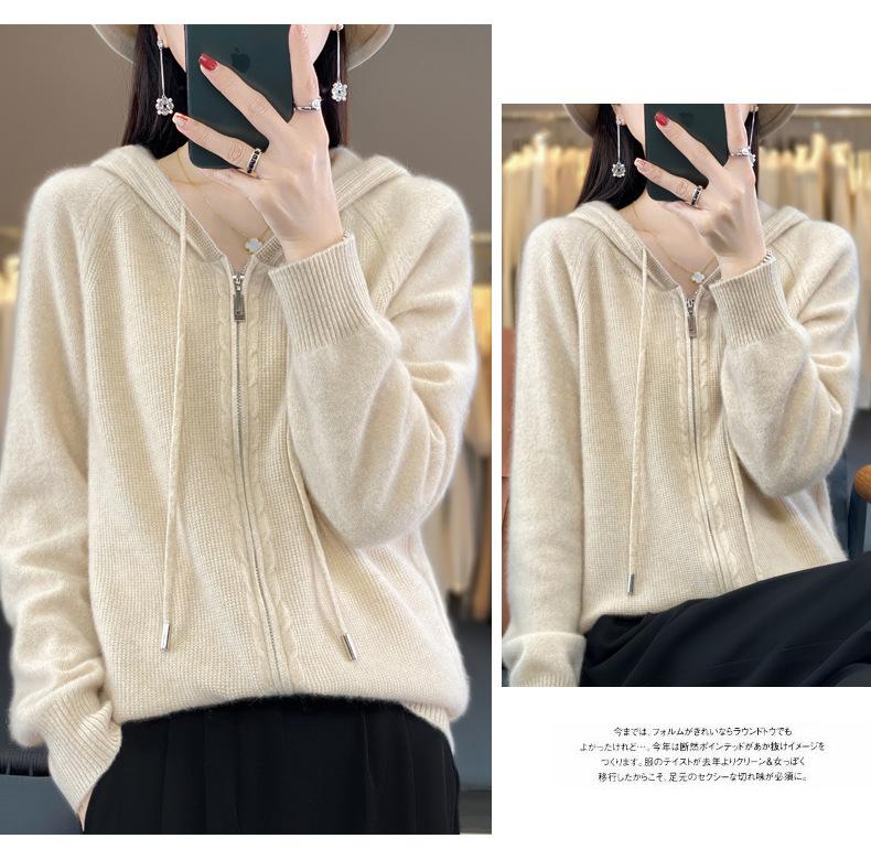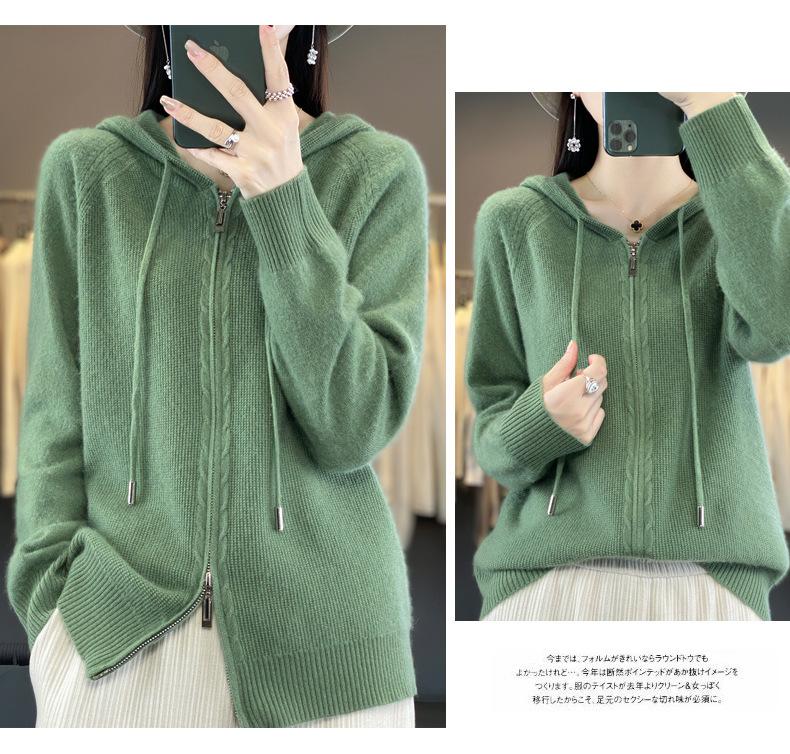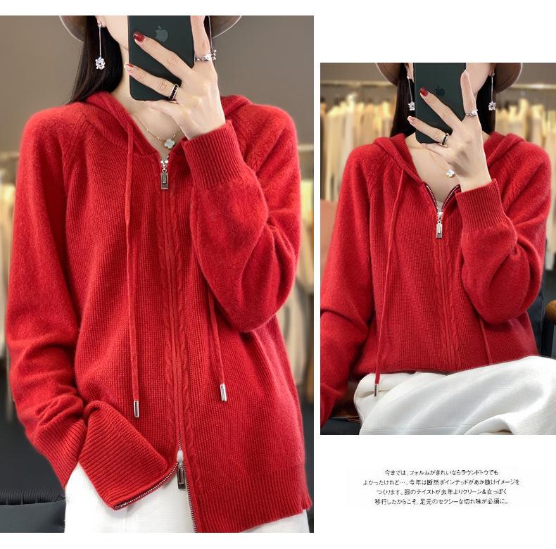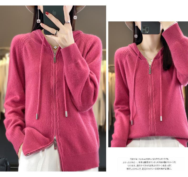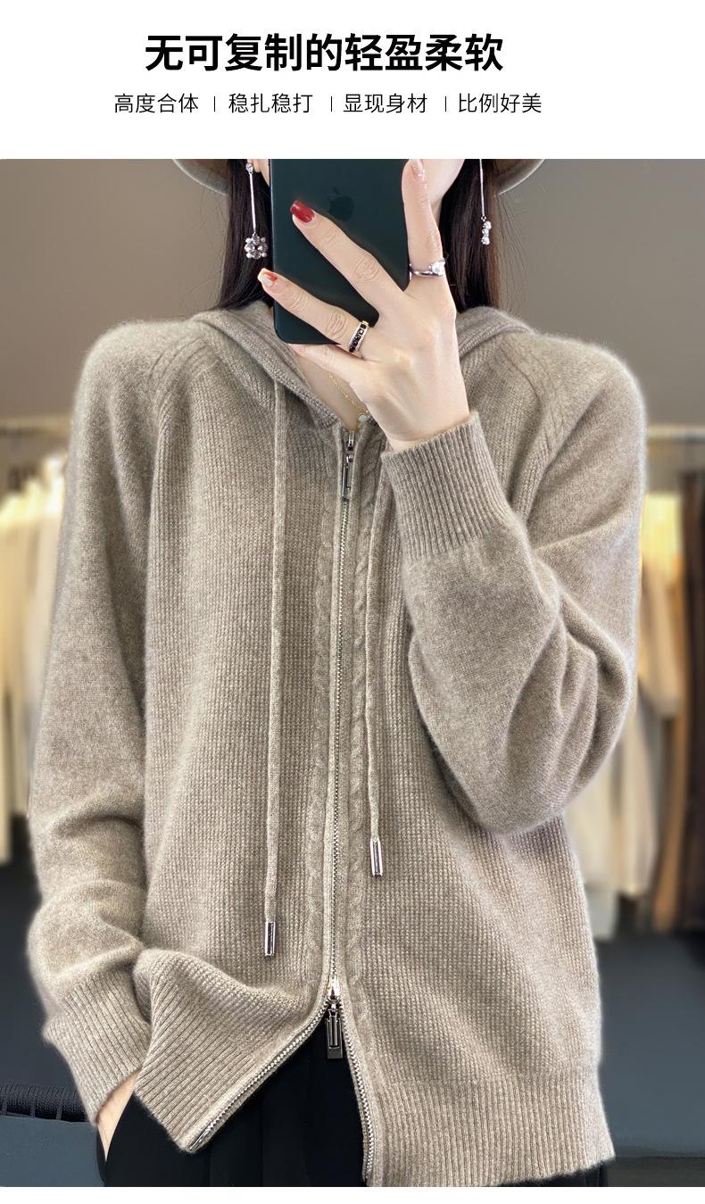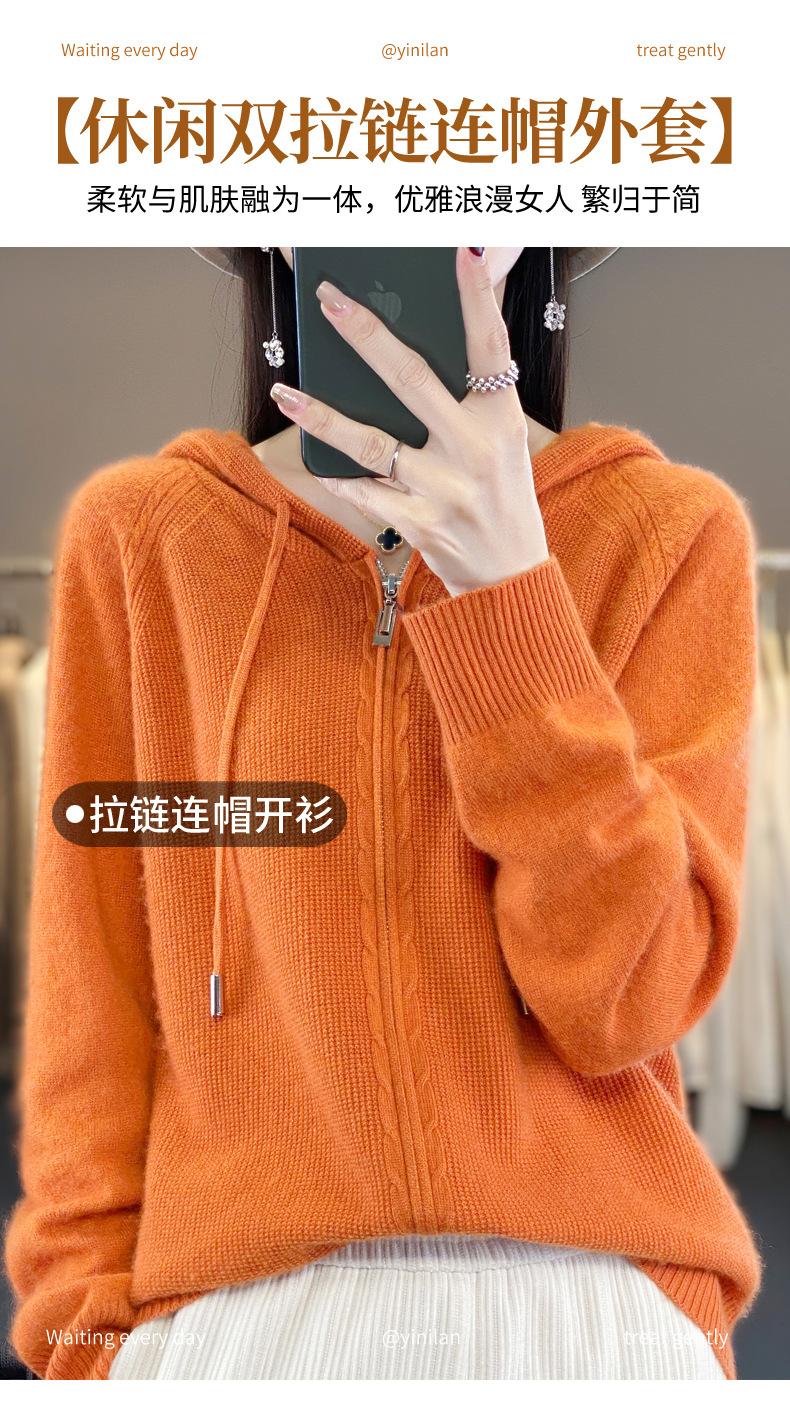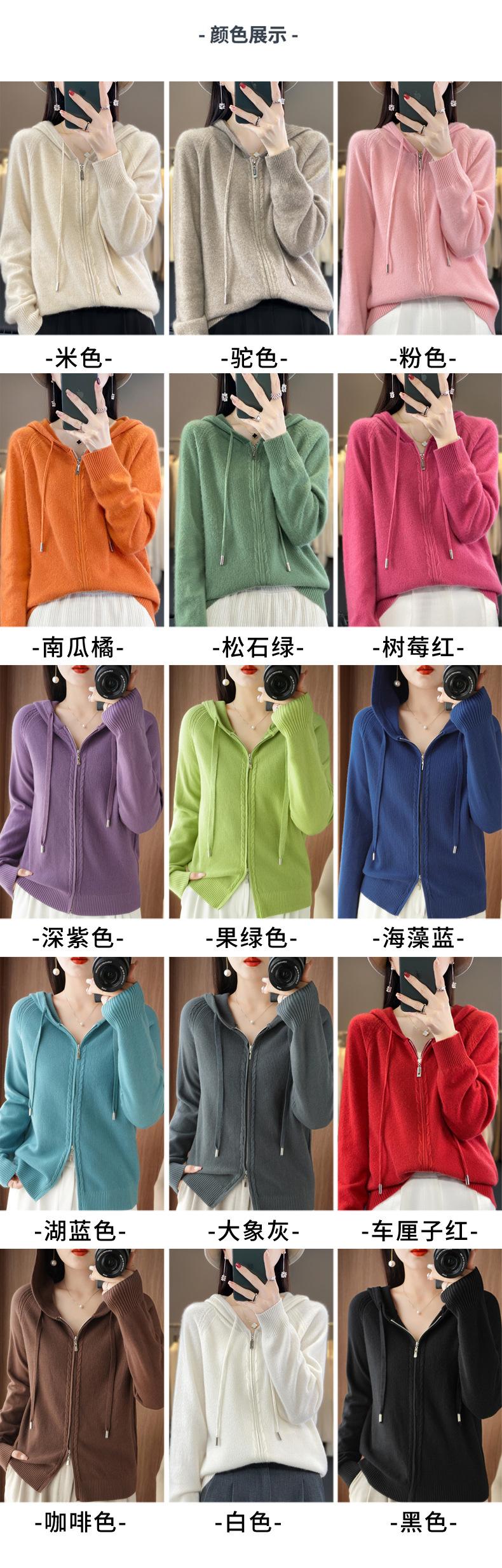 Cárdigan de punto de terciopelo Andy para mujer, otoño e invierno, nuevo, con capucha, color liso, elegante, informal, suelto, sencillo, con doble cremallera