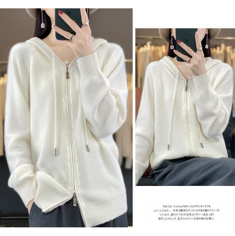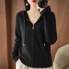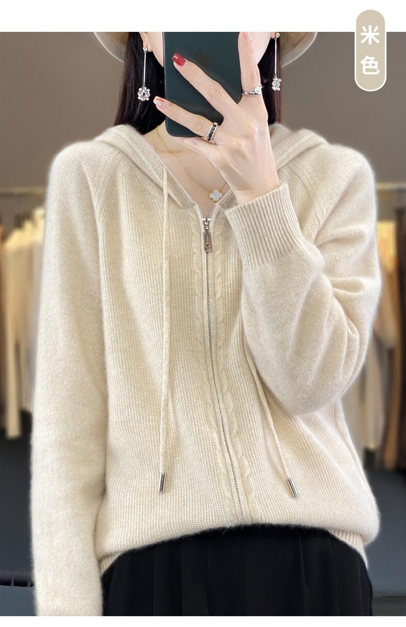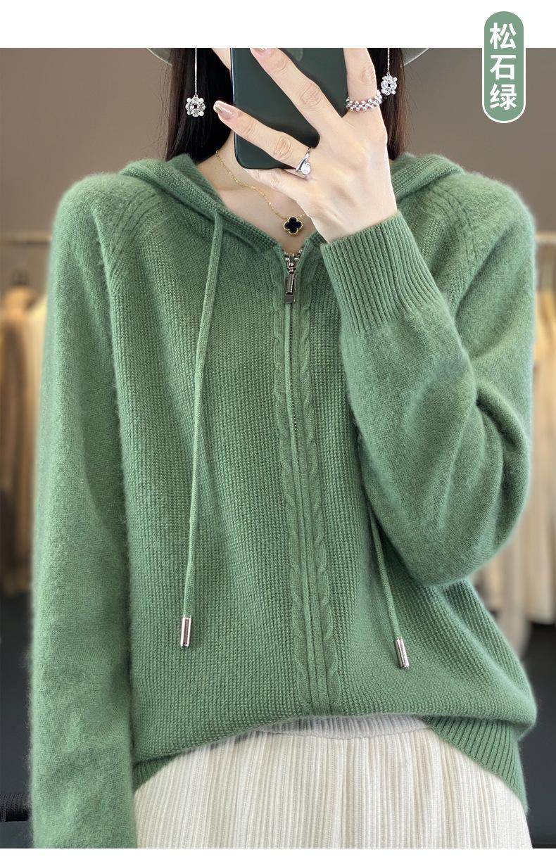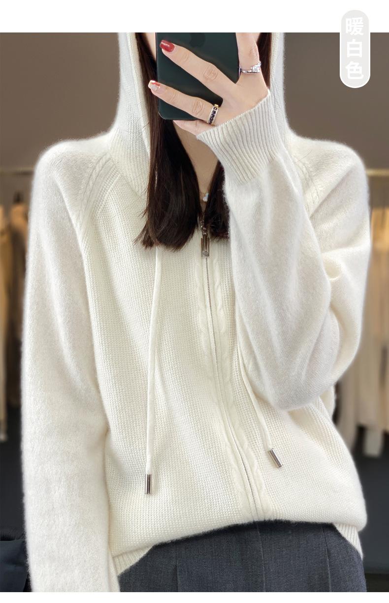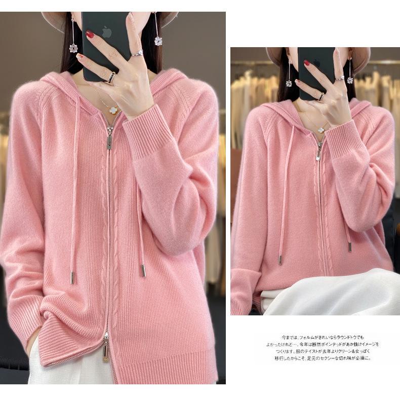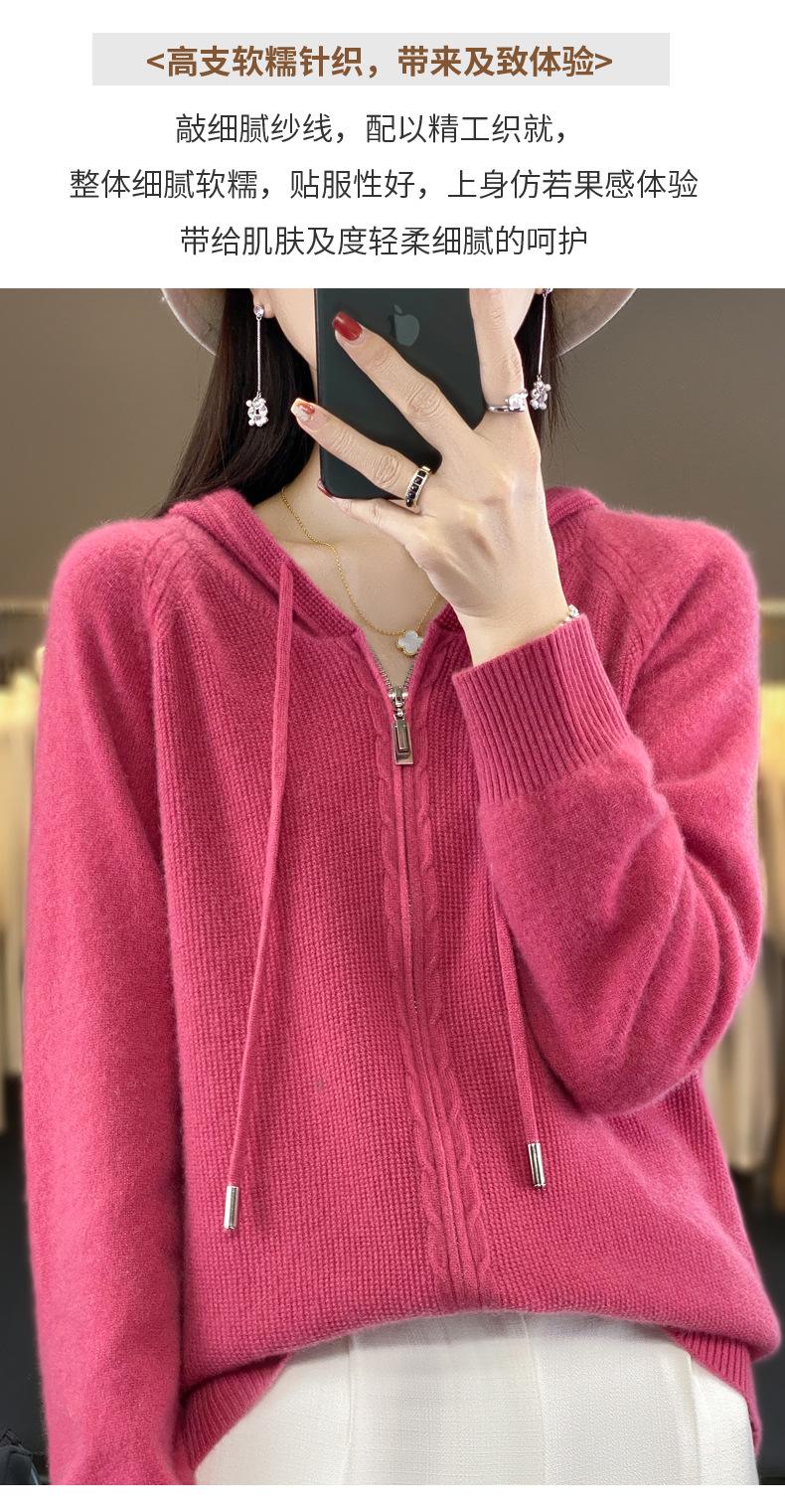 Cárdigan de punto de terciopelo Andy para mujer, otoño e invierno, nuevo, con capucha, color liso, elegante, informal, suelto, sencillo, con doble cremallera