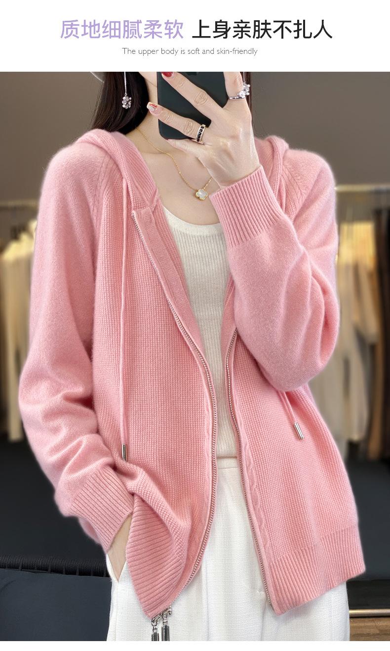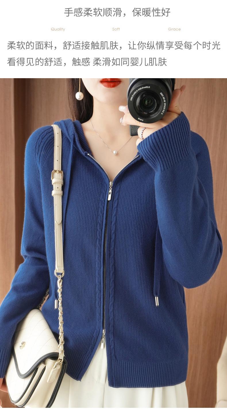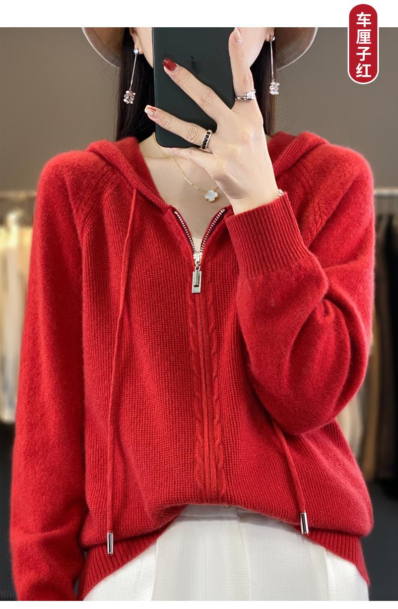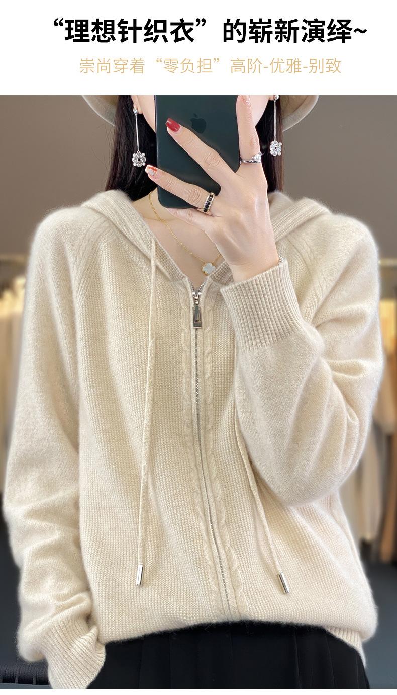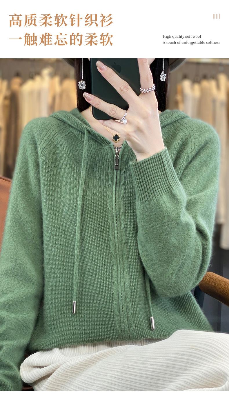 Cárdigan de punto de terciopelo Andy para mujer, otoño e invierno, nuevo, con capucha, color liso, elegante, informal, suelto, sencillo, con doble cremallera