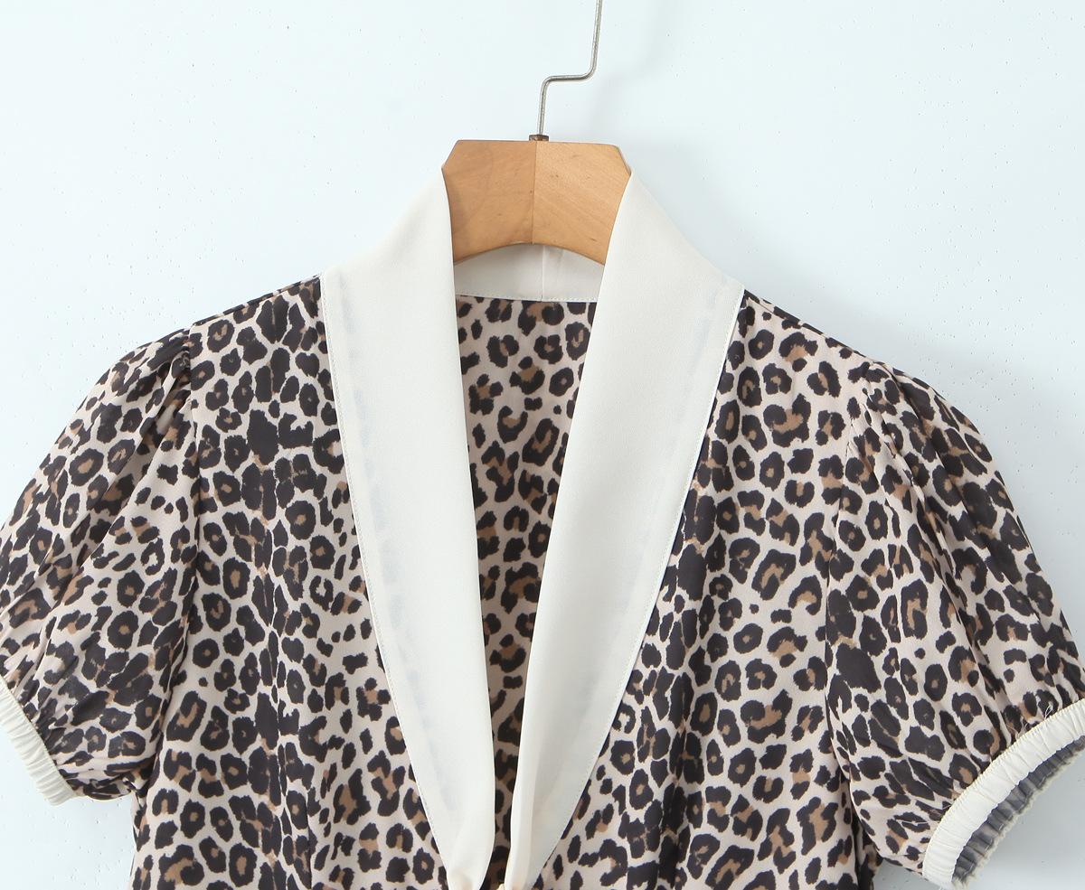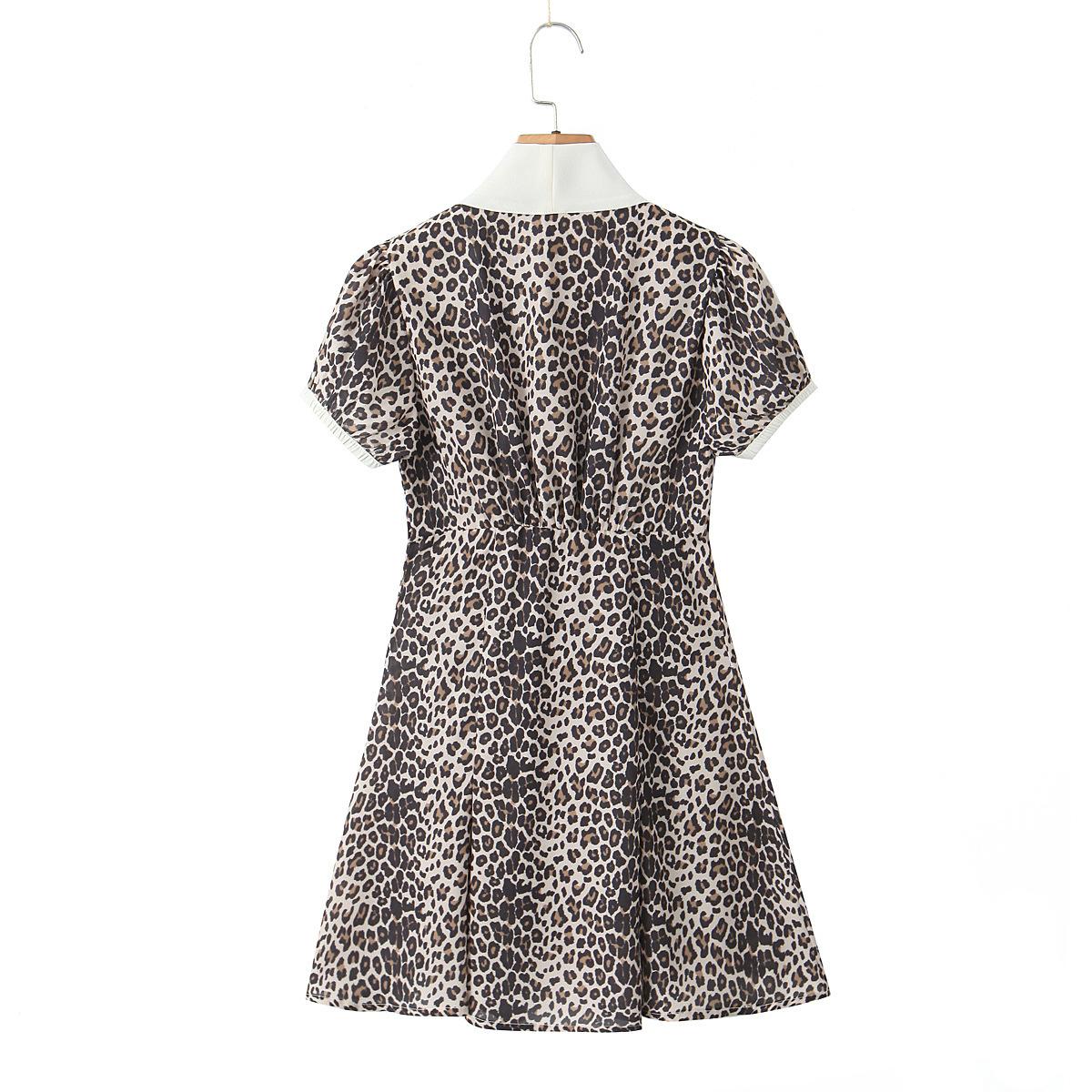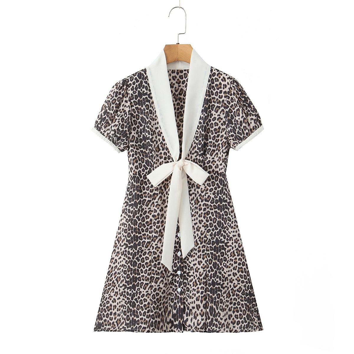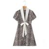 7403-Vestido de leopardo con lazo a juego de colores con escote en V profundo sexy europeo y americano para mujer, falda de cintura nueva de 2024 para chica sexy