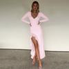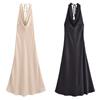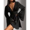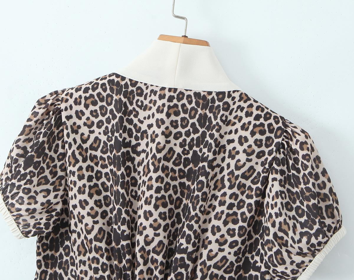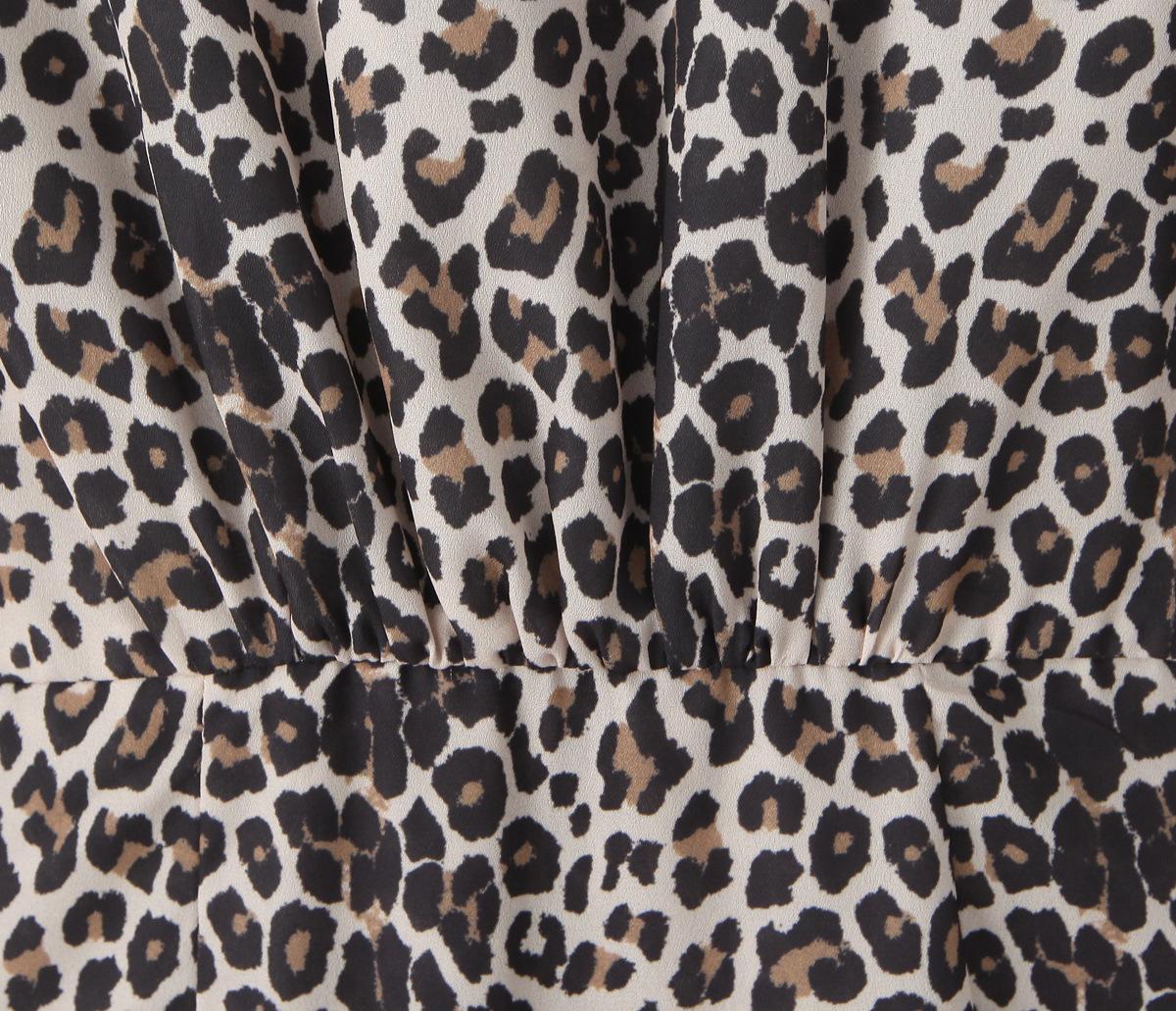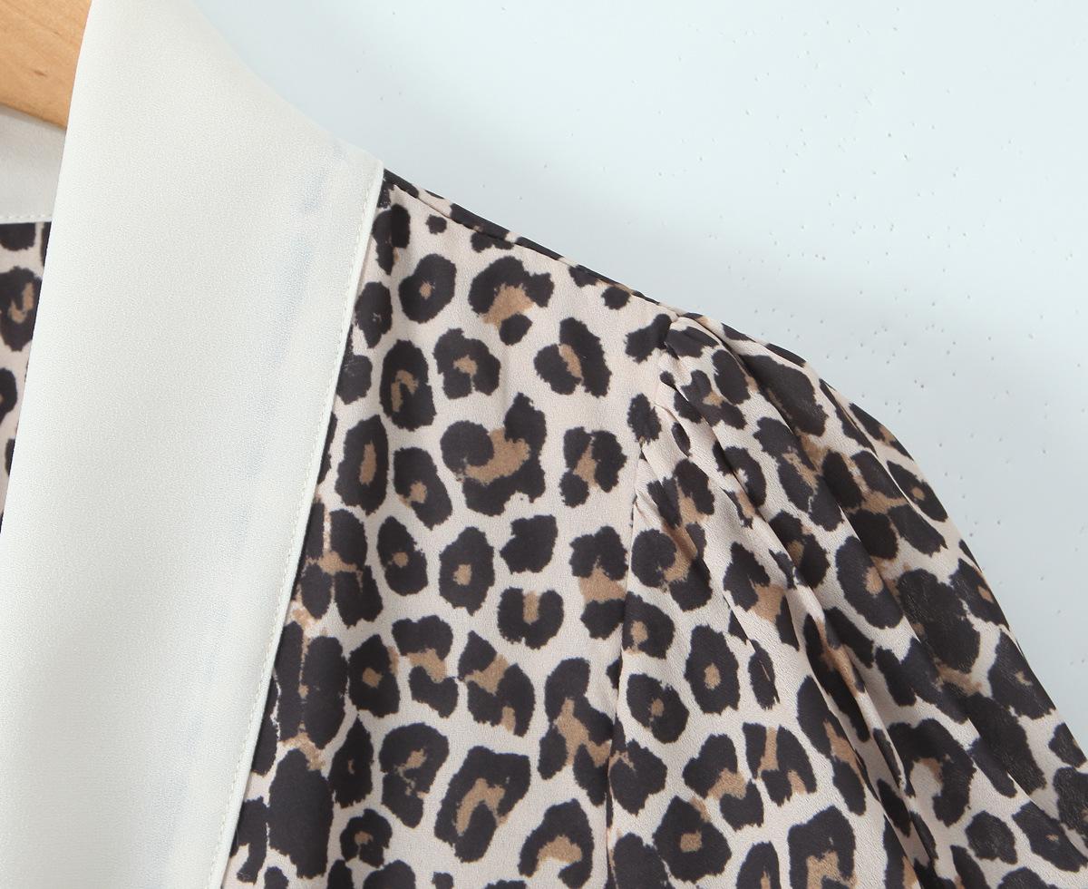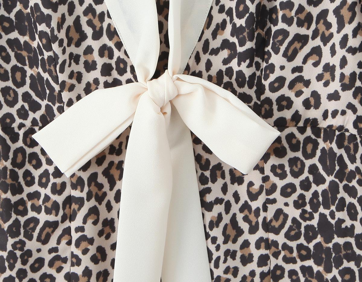 7403-Vestido de leopardo con lazo a juego de colores con escote en V profundo sexy europeo y americano para mujer, falda de cintura nueva de 2024 para chica sexy