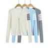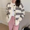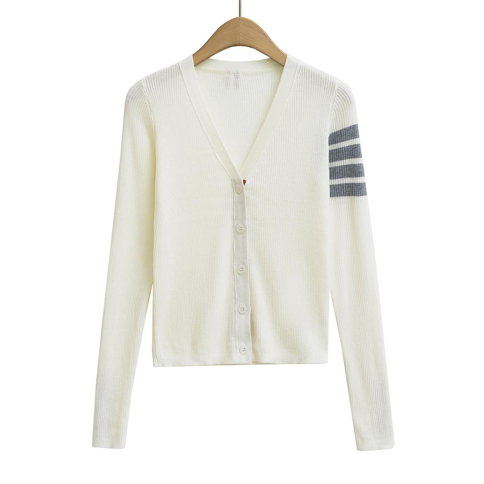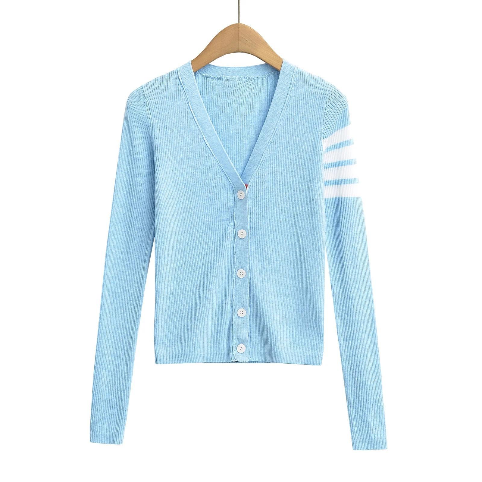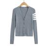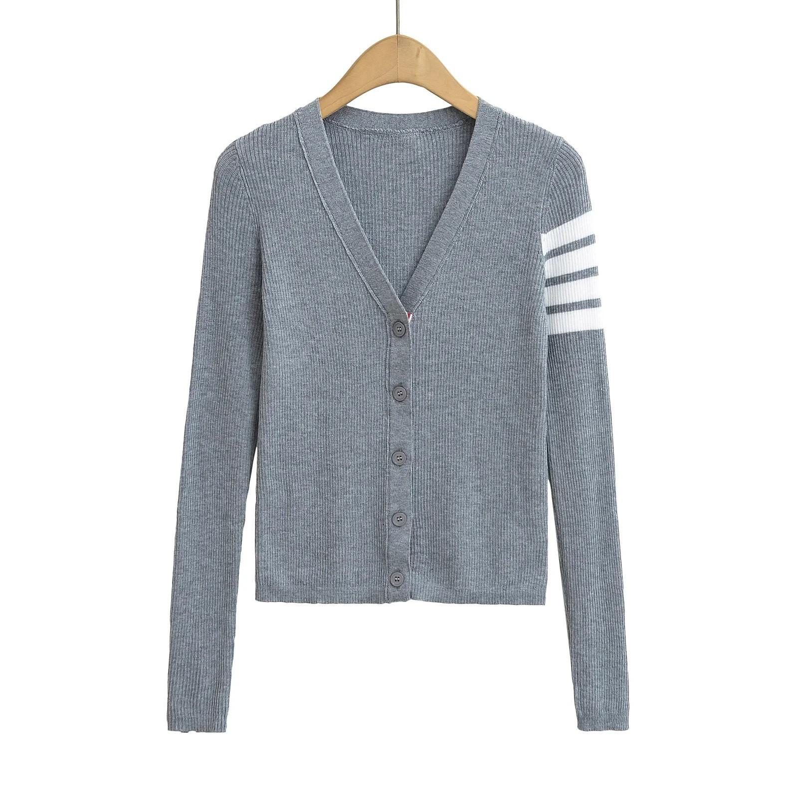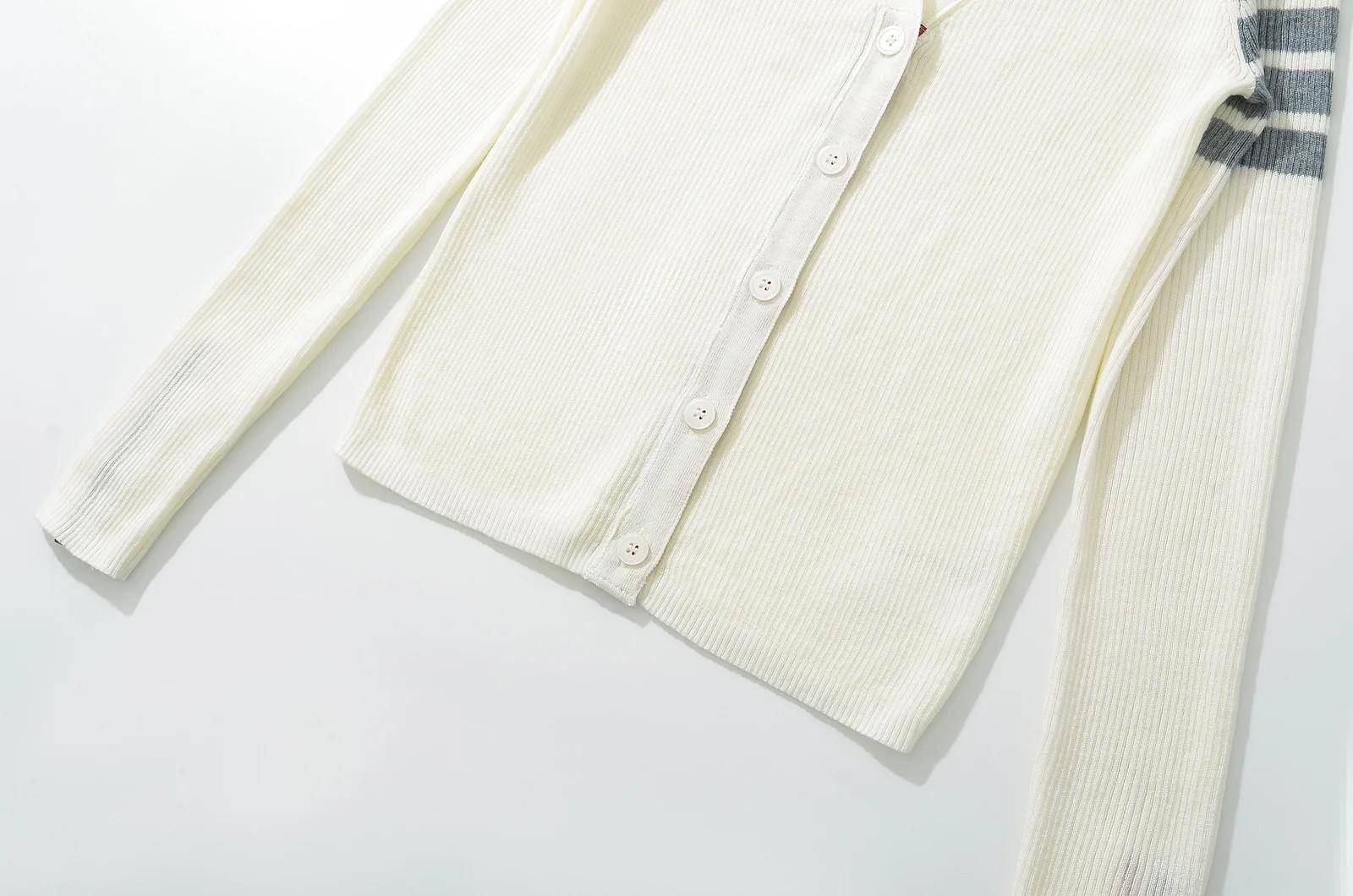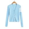 Cárdigan de punto de lana mercerizada de estilo universitario, ajustado y adelgazante, para mujer.