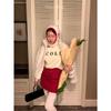 Falda corta roja de Ovinsyang, falda en forma de A, vestido corto navideño de otoño e invierno para mujer