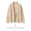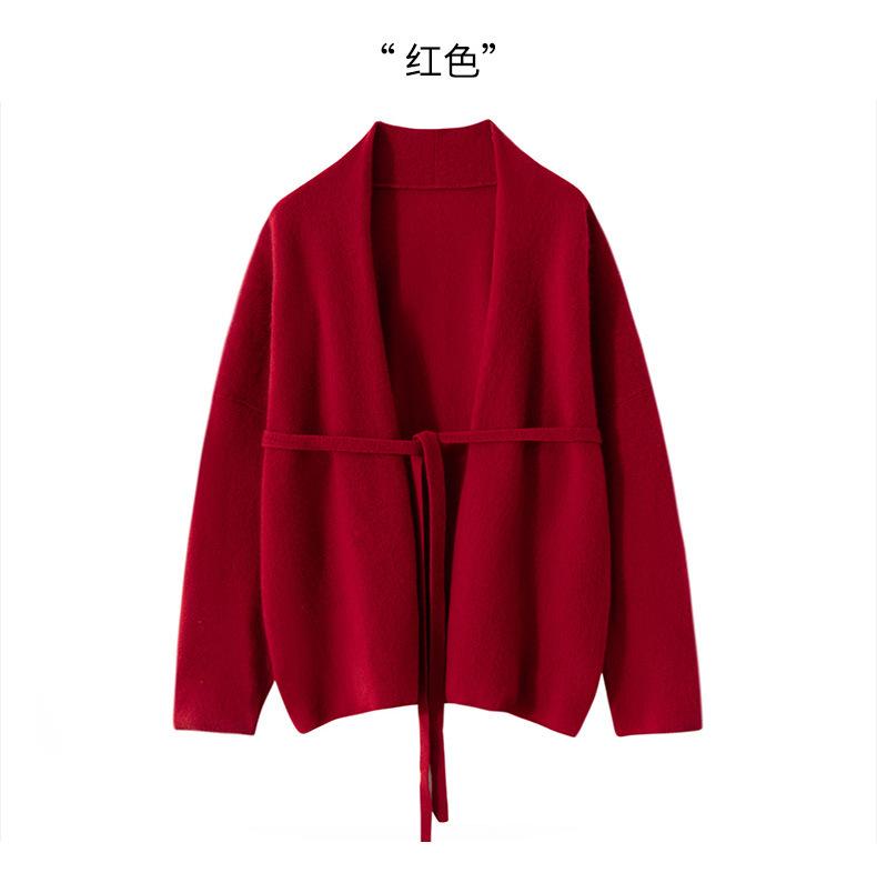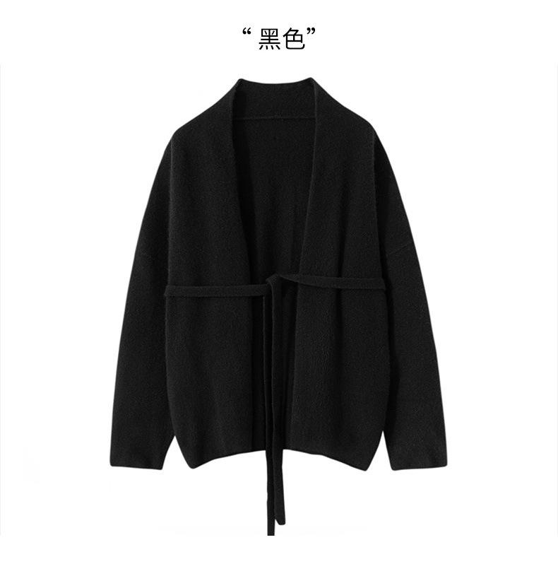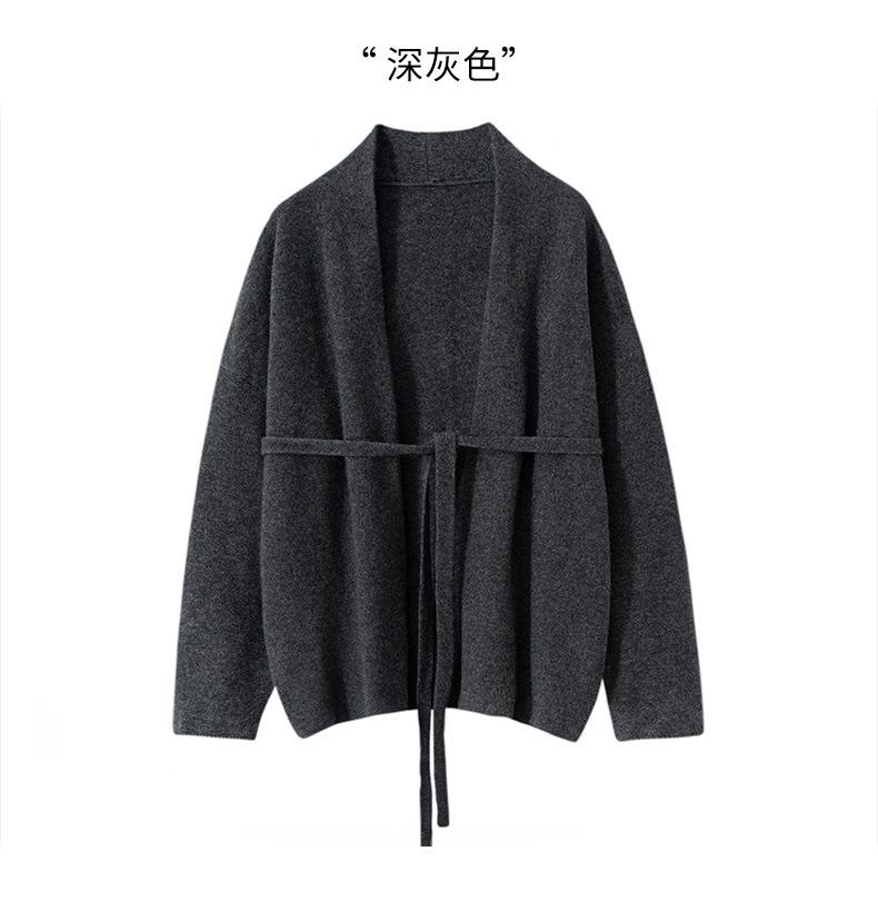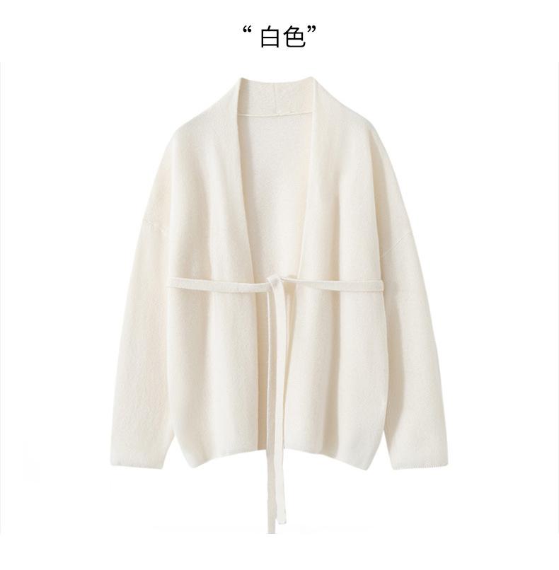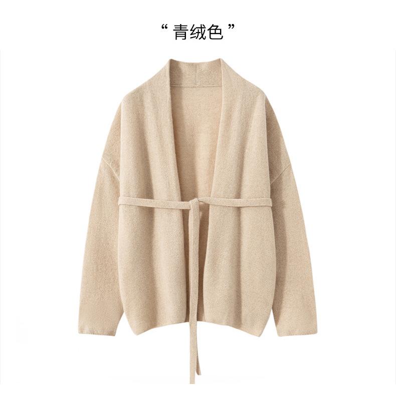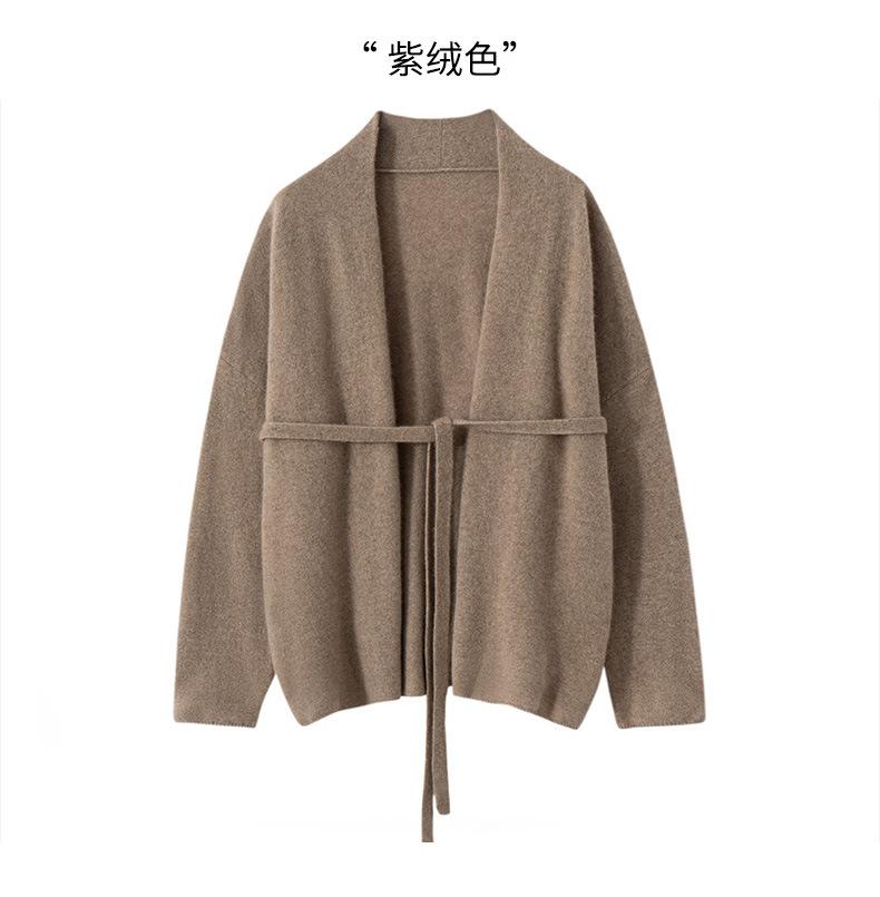Suéter 100 Cachemira Ligera Suéter con Cordones Cárdigan Suelto de Punto Ropa Exterior Cinturón para Mujer Industria Pesada Hilo Grueso Estilo Otoño e Invierno