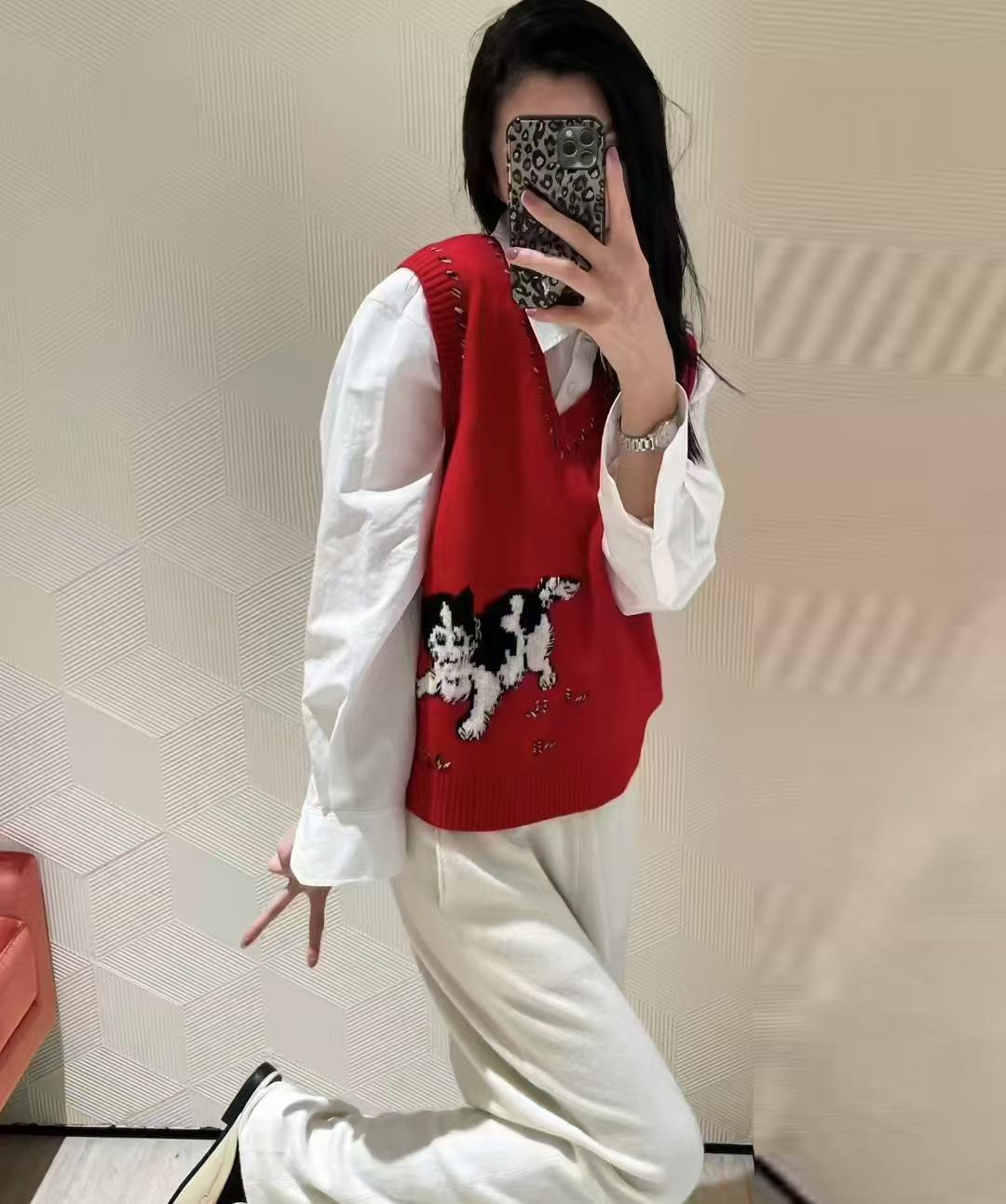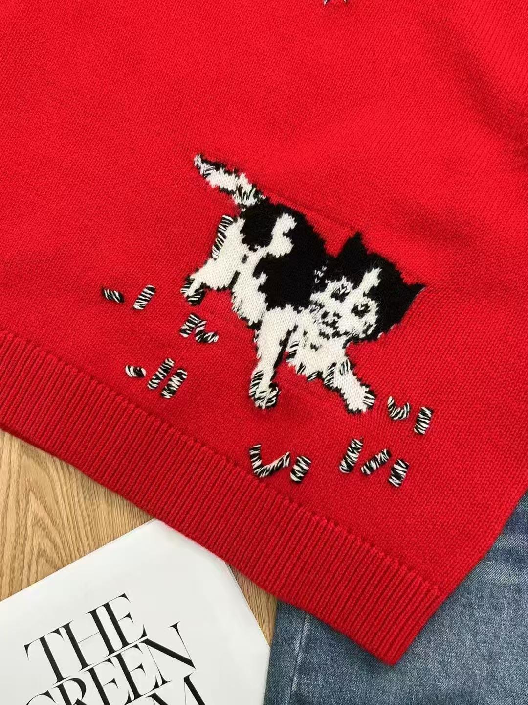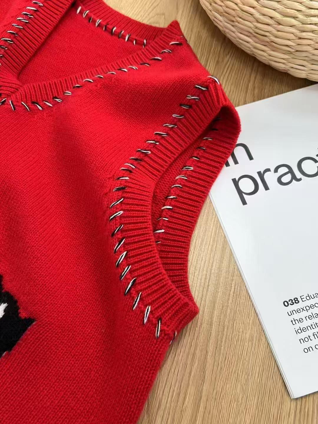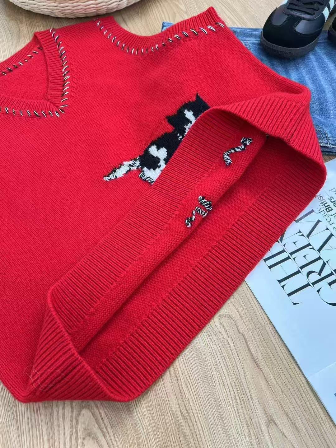Hambriento @ Erduo mismo estilo lana punteada gato jacquard chaleco de punto