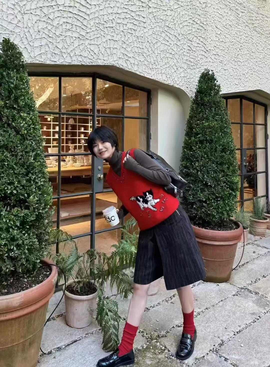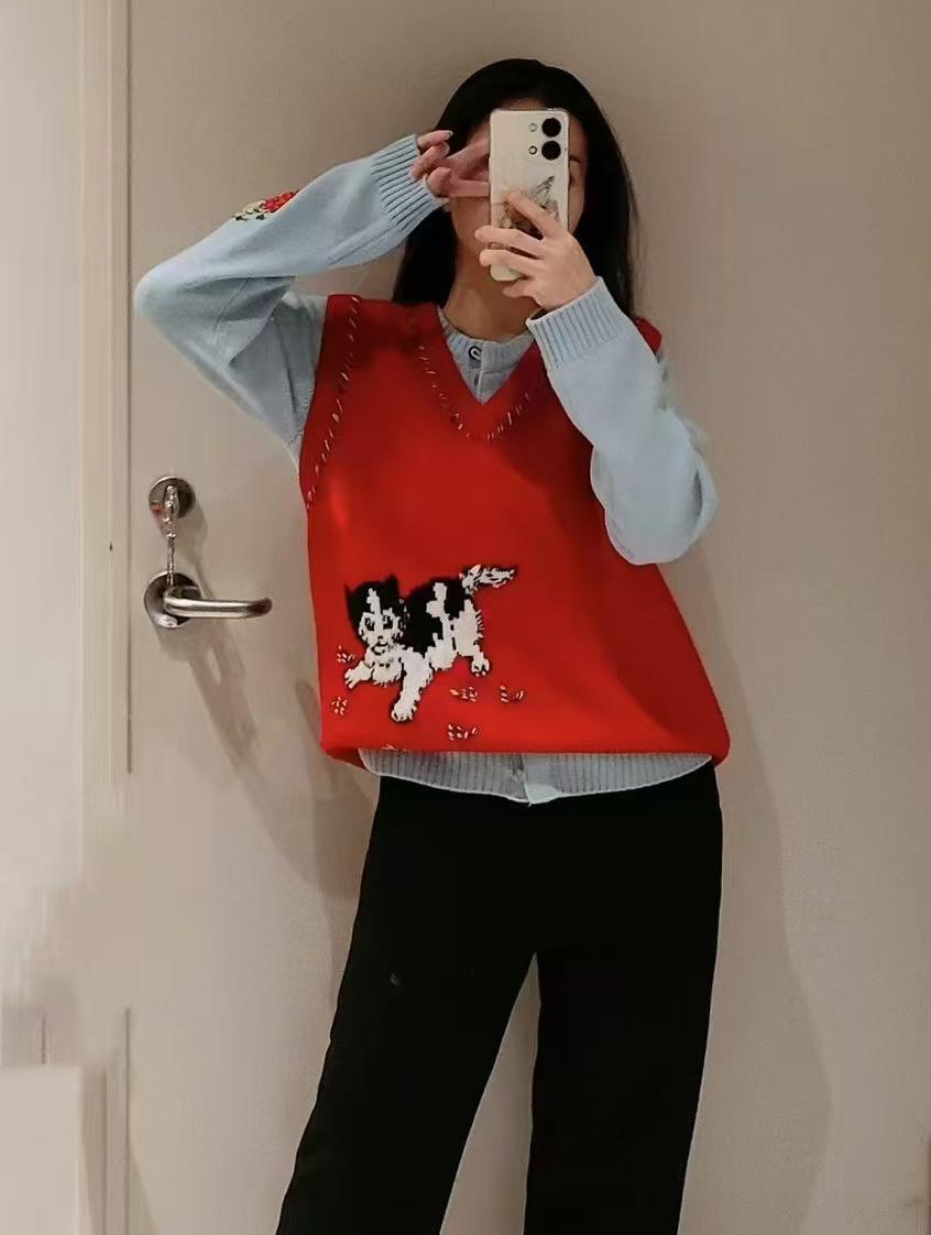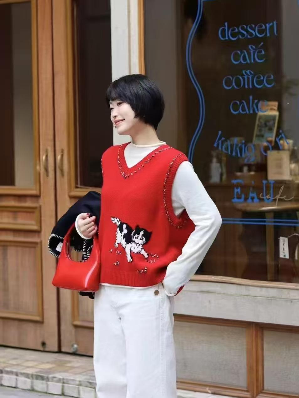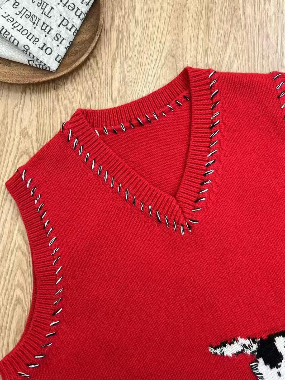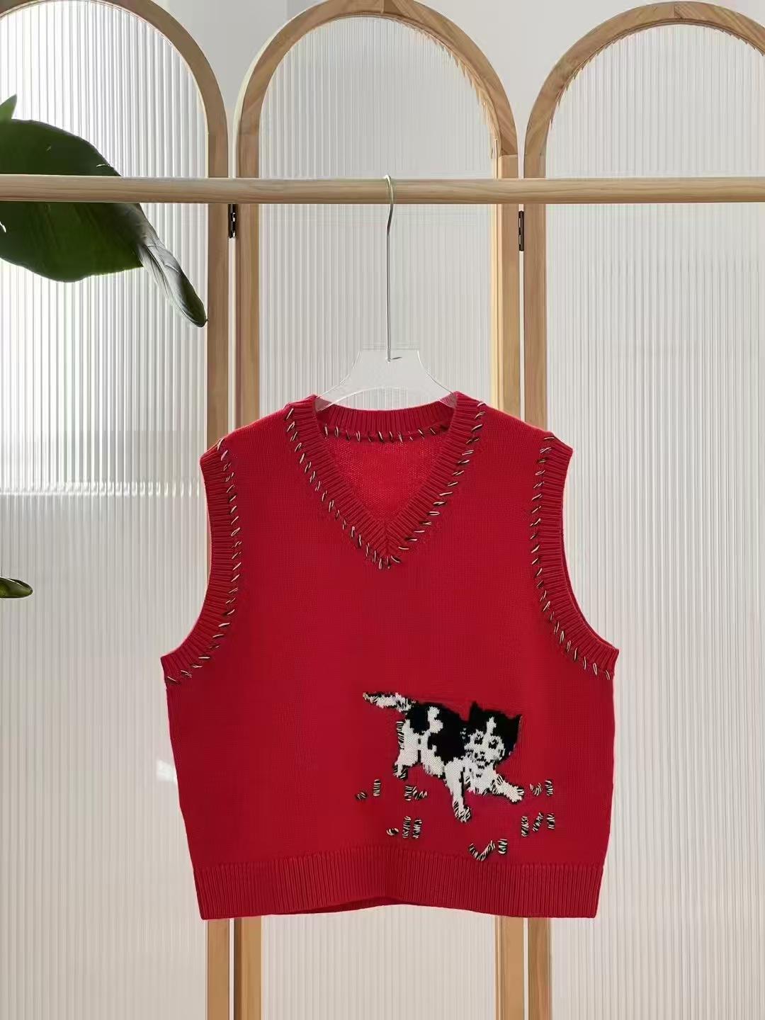 Hambriento @ Erduo mismo estilo lana punteada gato jacquard chaleco de punto