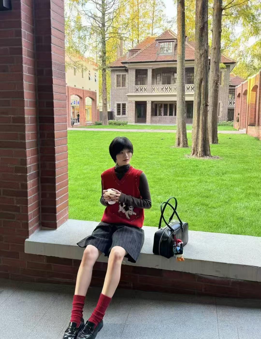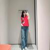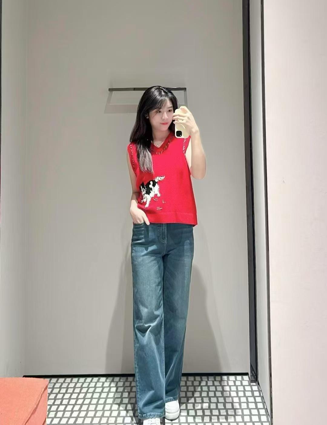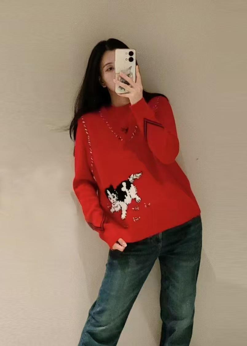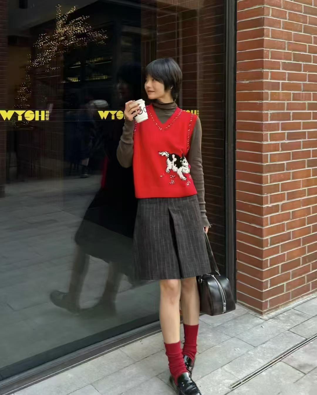 Hambriento @ Erduo mismo estilo lana punteada gato jacquard chaleco de punto