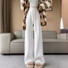 Pantalones Casuales Tejidos Suaves y Cerosos de Cintura Alta Estilo Perezoso para Mujer Otoño e Invierno 2024 Nuevos Pantalones Largos Rectos Sueltos de Pierna Ancha