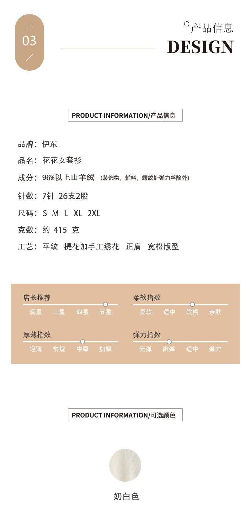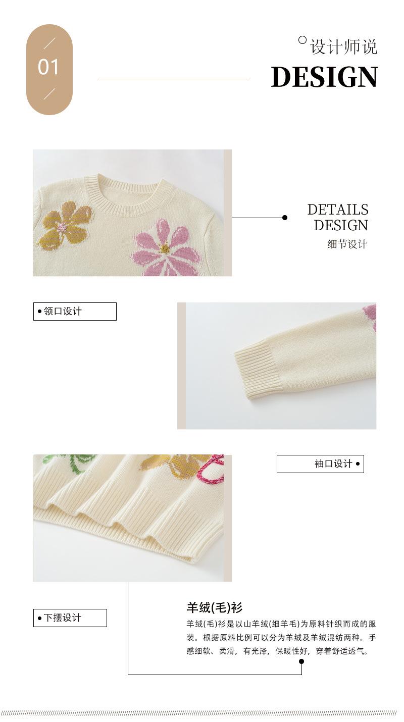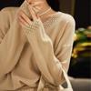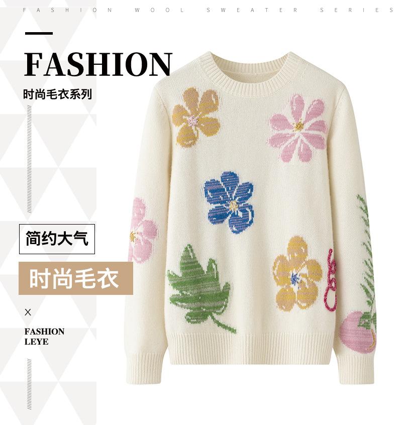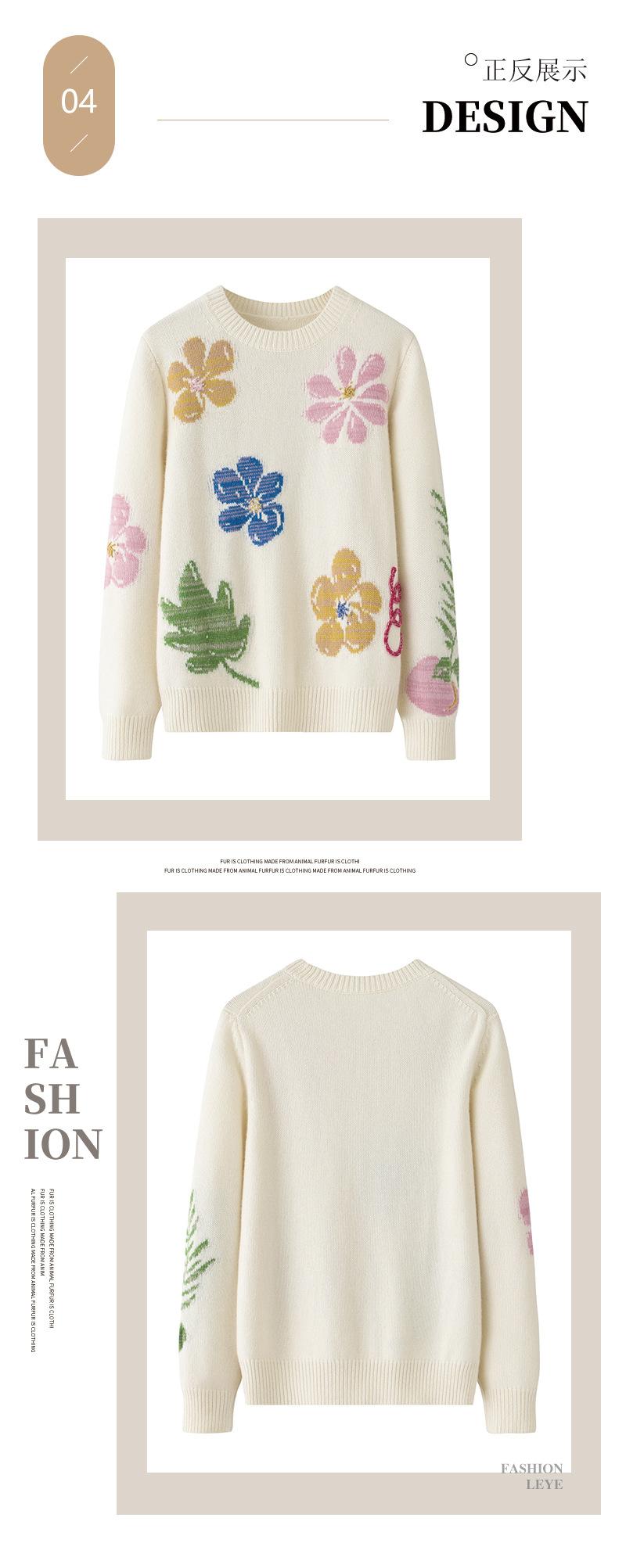 Suéter de Mujer Jacquard Liso de 7 Puntadas y Jacquard Hecho a Mano Cuello Redondo Hombro Suelto Base de Cachemira Pura