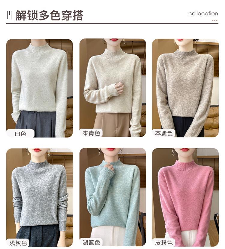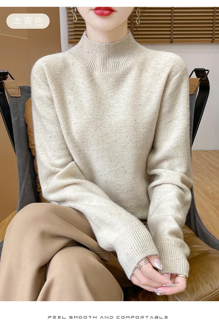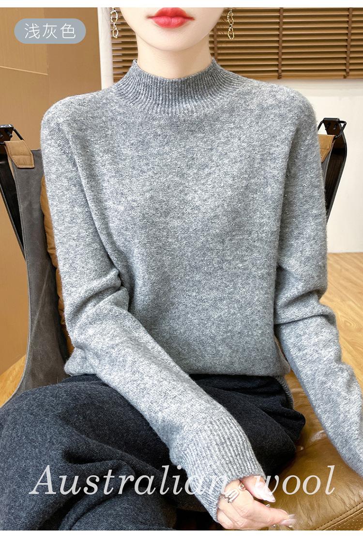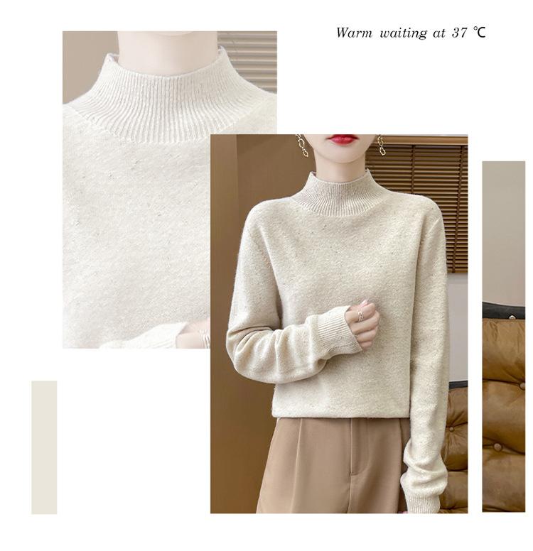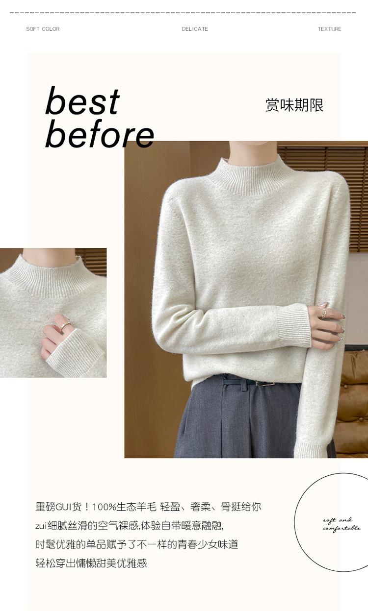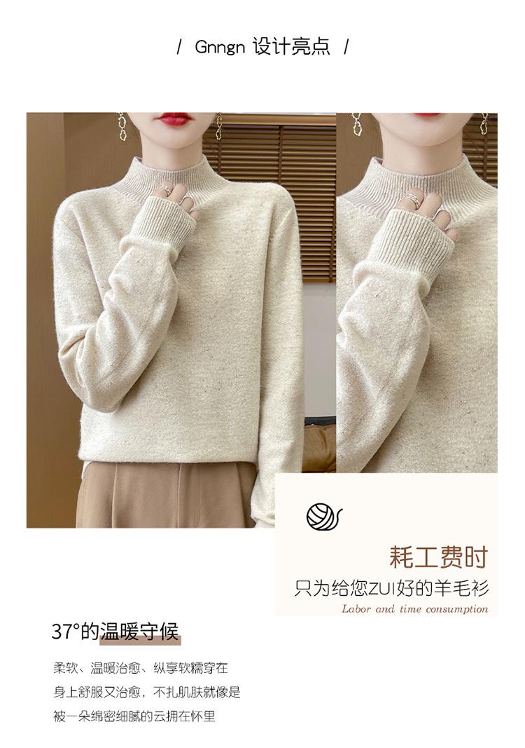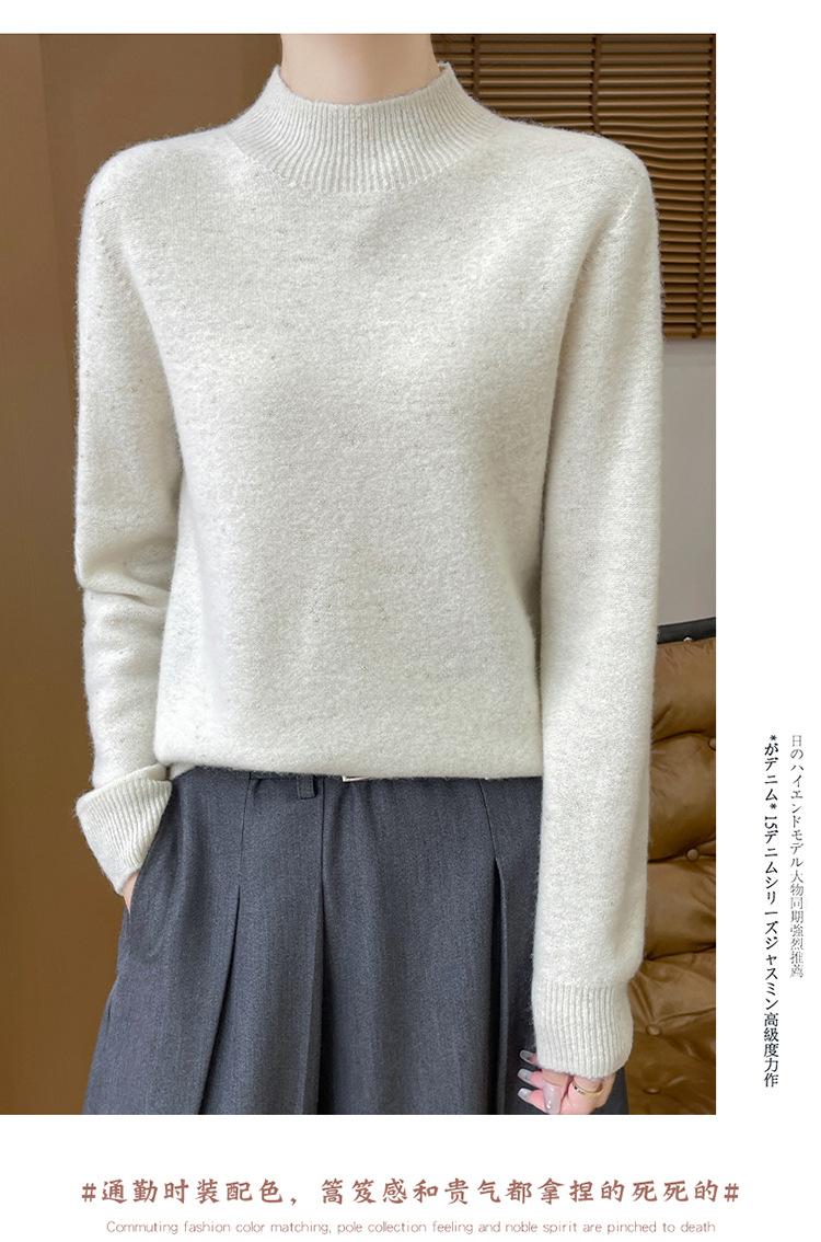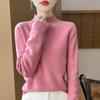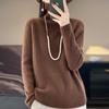 Ropa de Primera Línea Suéter de Lana Pura de Cuello Medio Alto para Mujer Nuevo Jersey Holgado Suéter Grueso Tejido Camiseta Básica Top
