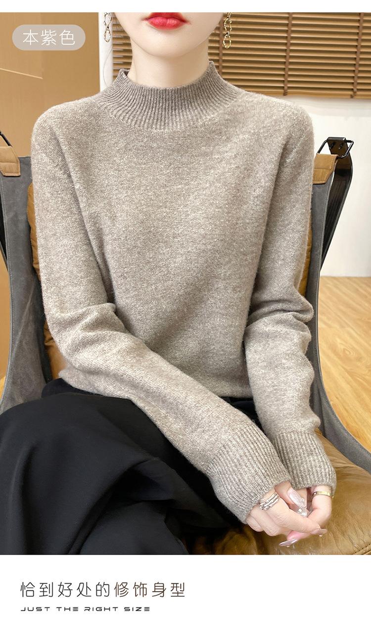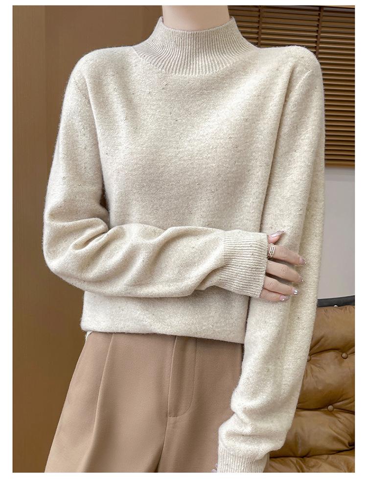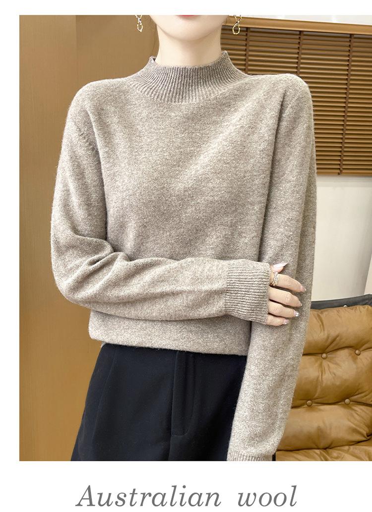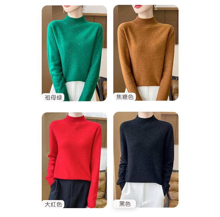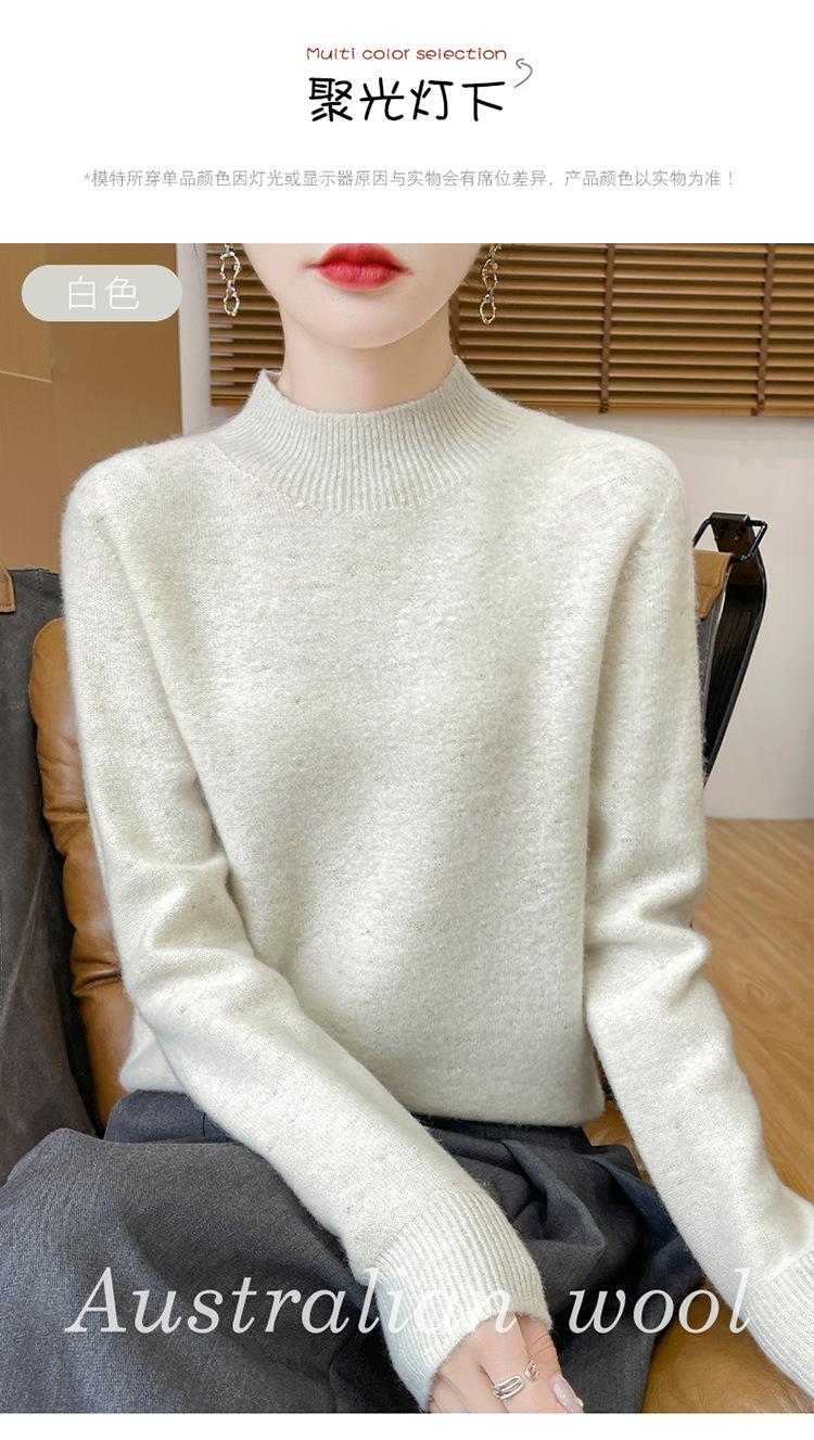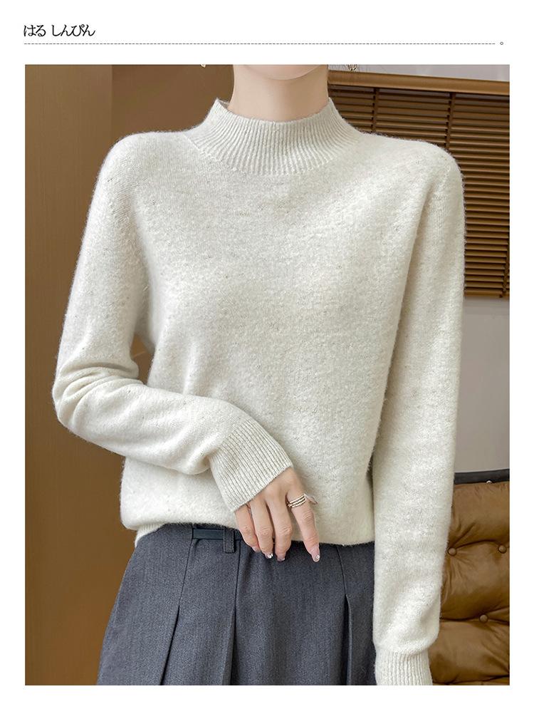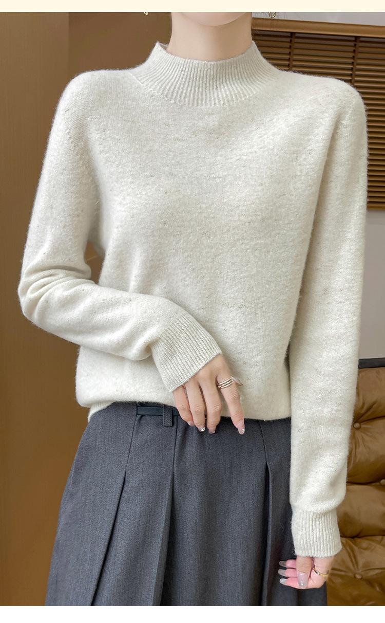 Ropa de Primera Línea Suéter de Lana Pura de Cuello Medio Alto para Mujer Nuevo Jersey Holgado Suéter Grueso Tejido Camiseta Básica Top