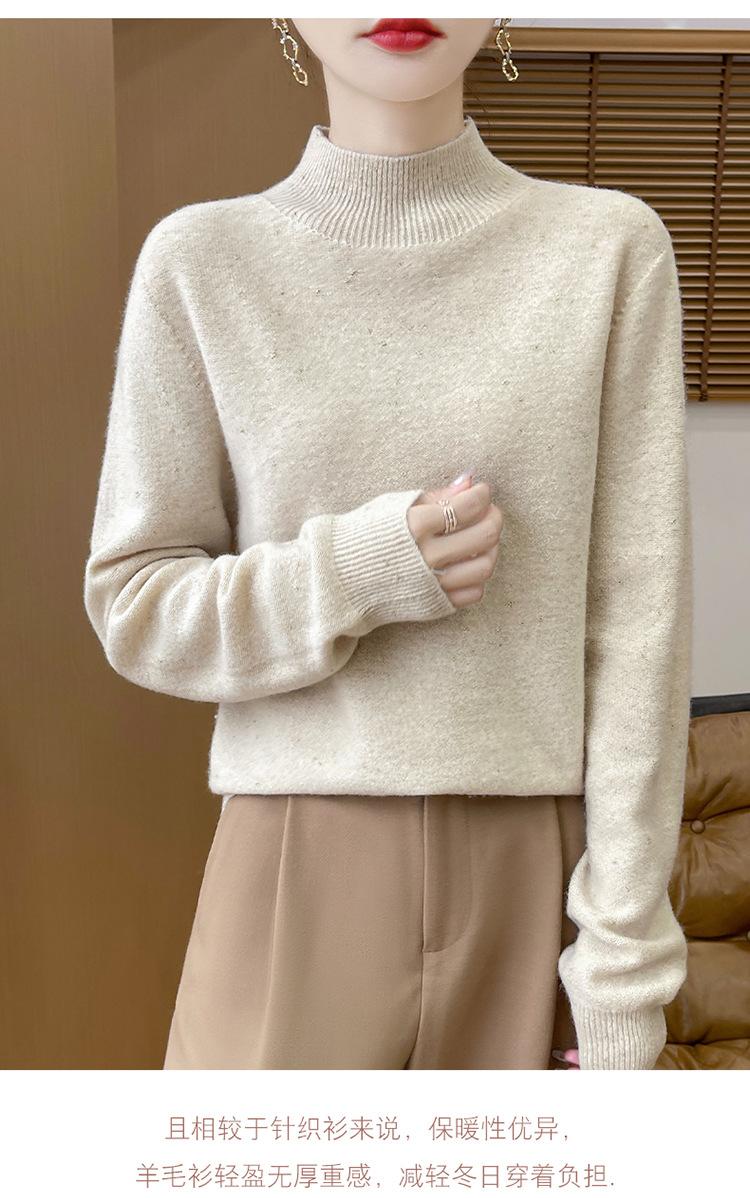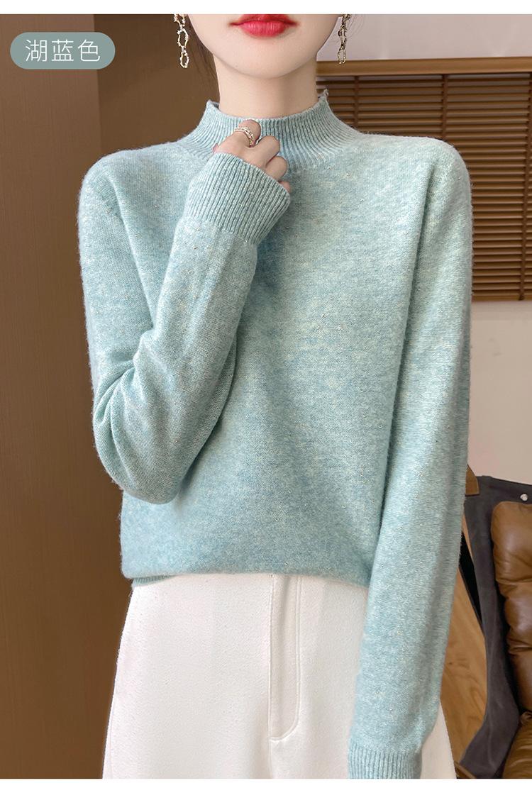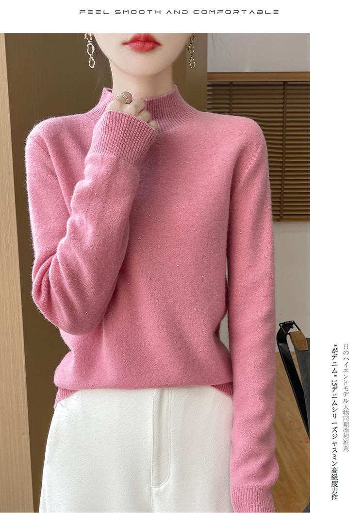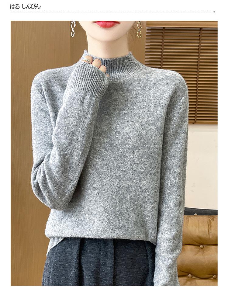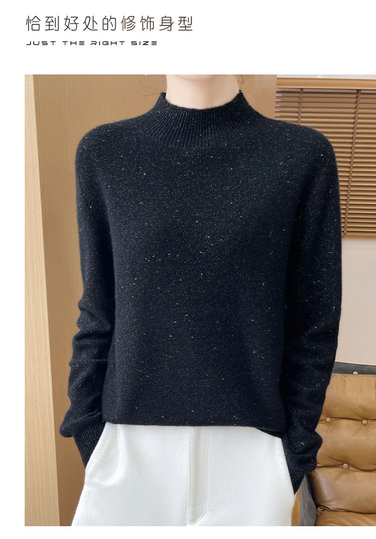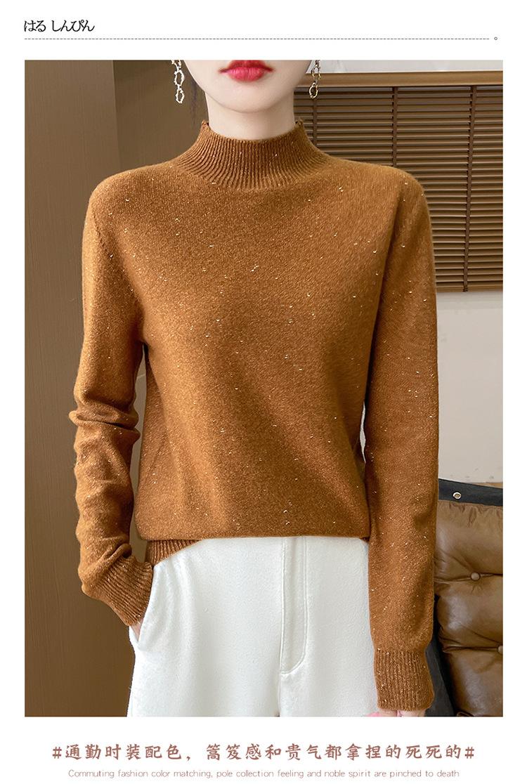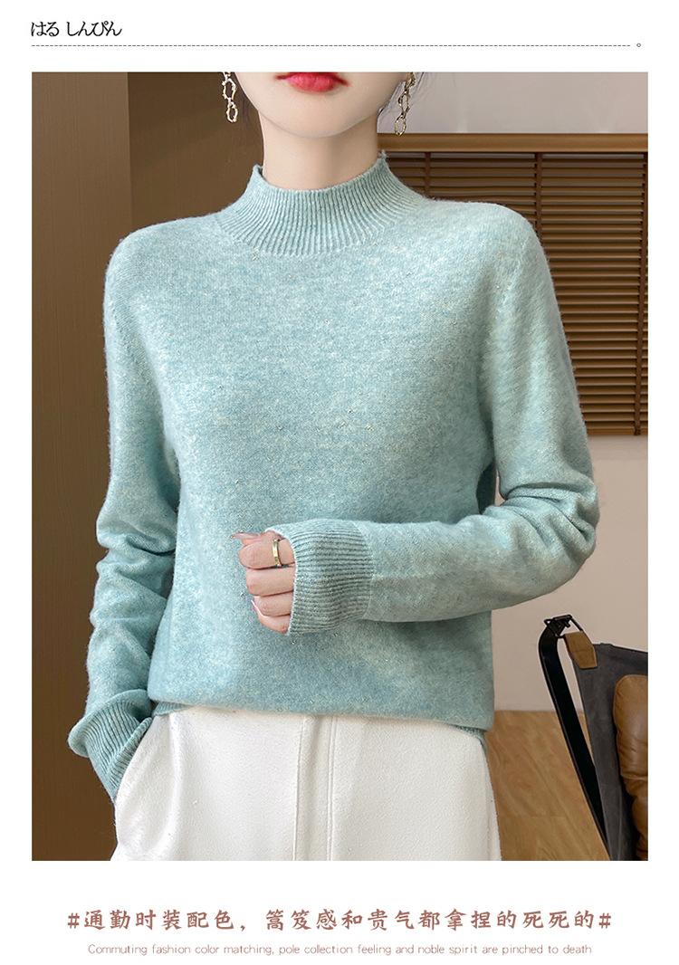 Ropa de Primera Línea Suéter de Lana Pura de Cuello Medio Alto para Mujer Nuevo Jersey Holgado Suéter Grueso Tejido Camiseta Básica Top