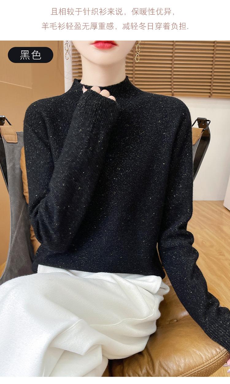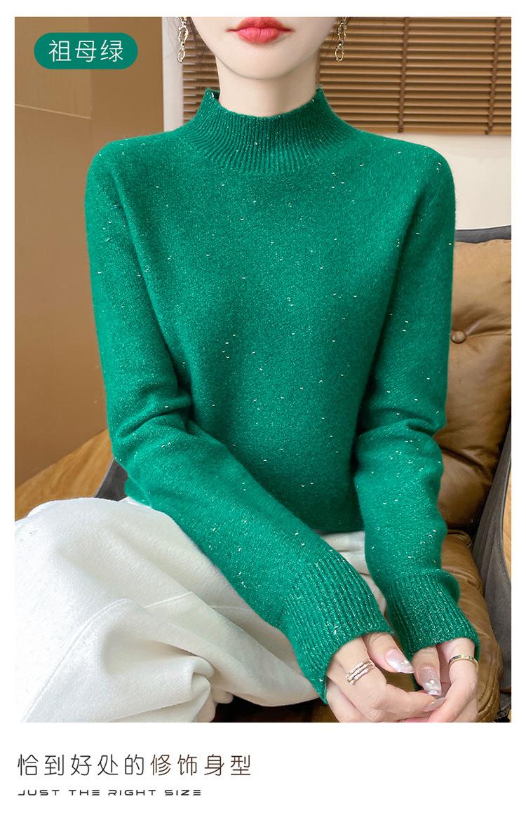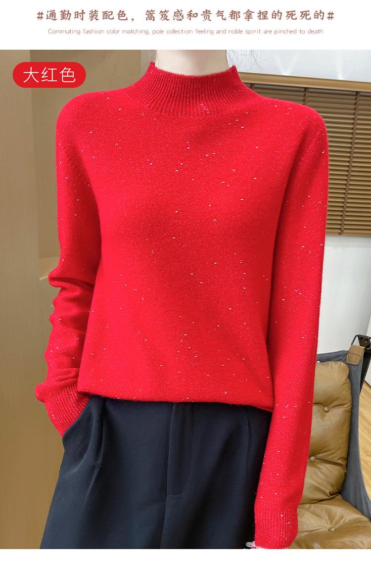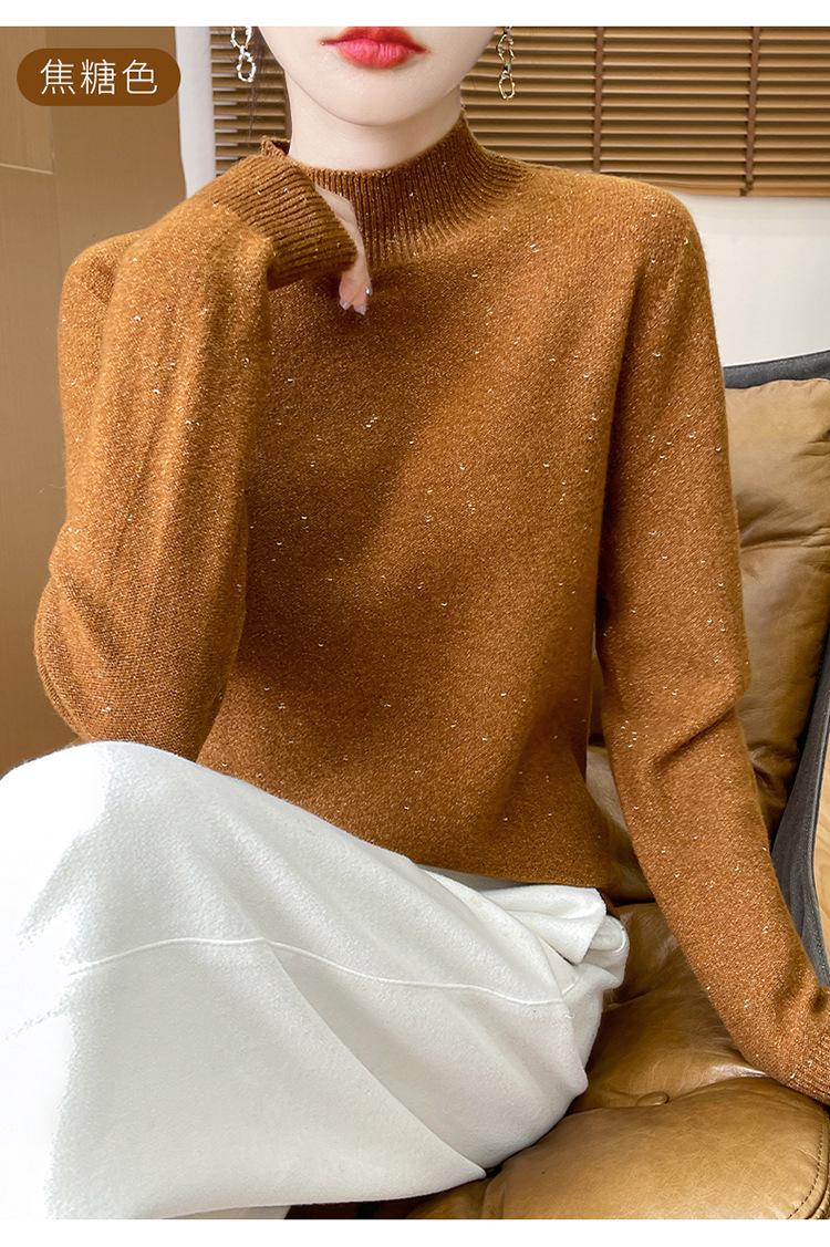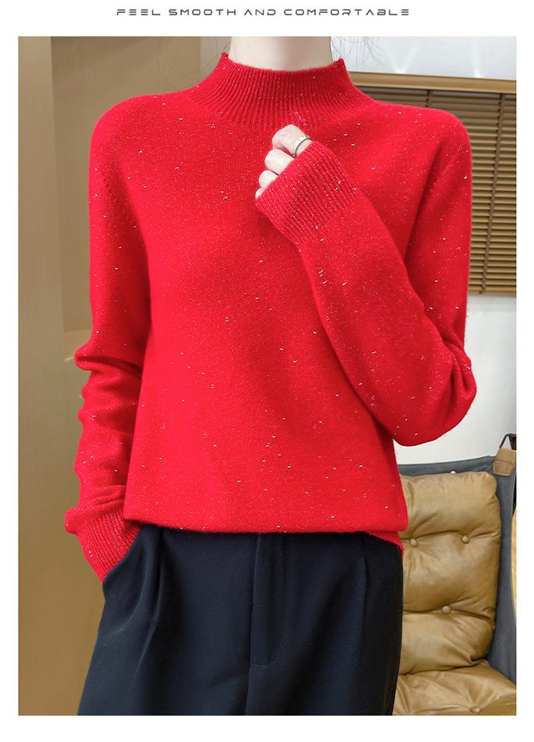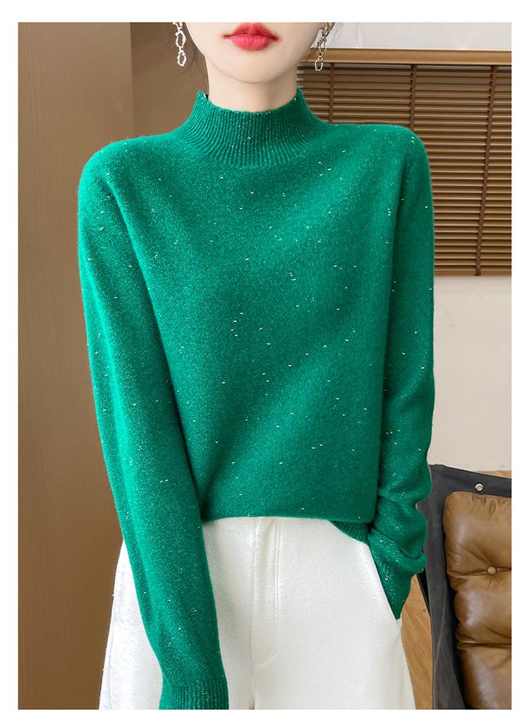 Ropa de Primera Línea Suéter de Lana Pura de Cuello Medio Alto para Mujer Nuevo Jersey Holgado Suéter Grueso Tejido Camiseta Básica Top