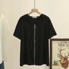 Verano nuevo talla grande para mujer abrigo Joker 200kg hermana gorda casual con capucha cremallera manga corta cárdigan 5722
