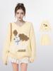 Suéter de terciopelo de visón con cuello en V vintage amarillo estilo americano para mujer, suéter de punto holgado y grueso de estilo perezoso para otoño e invierno.