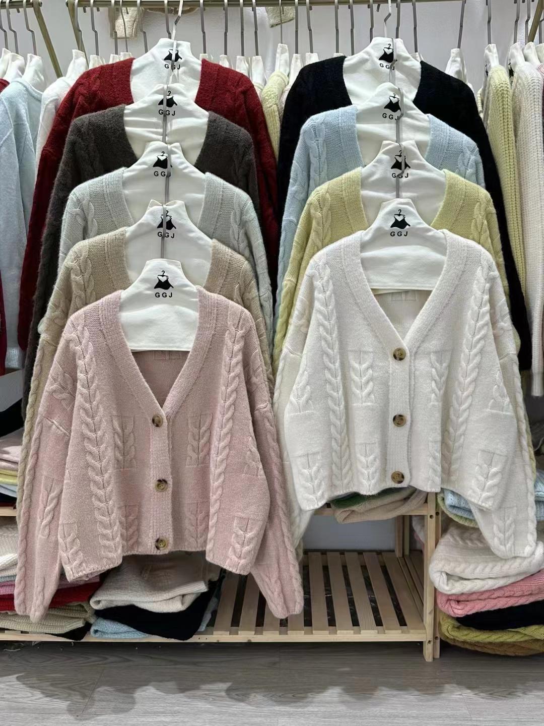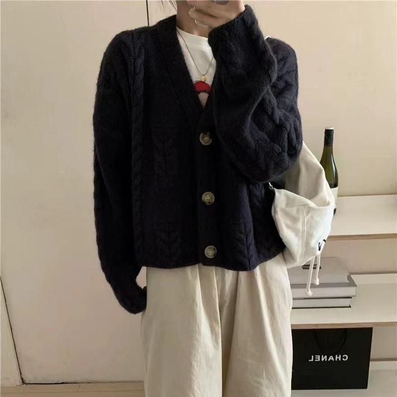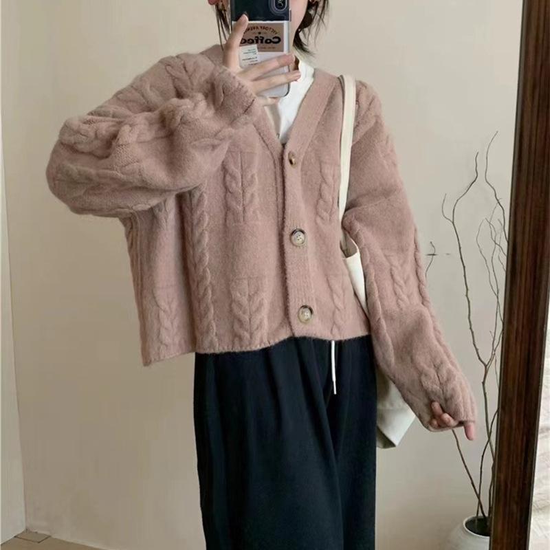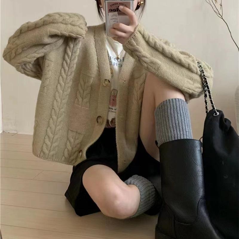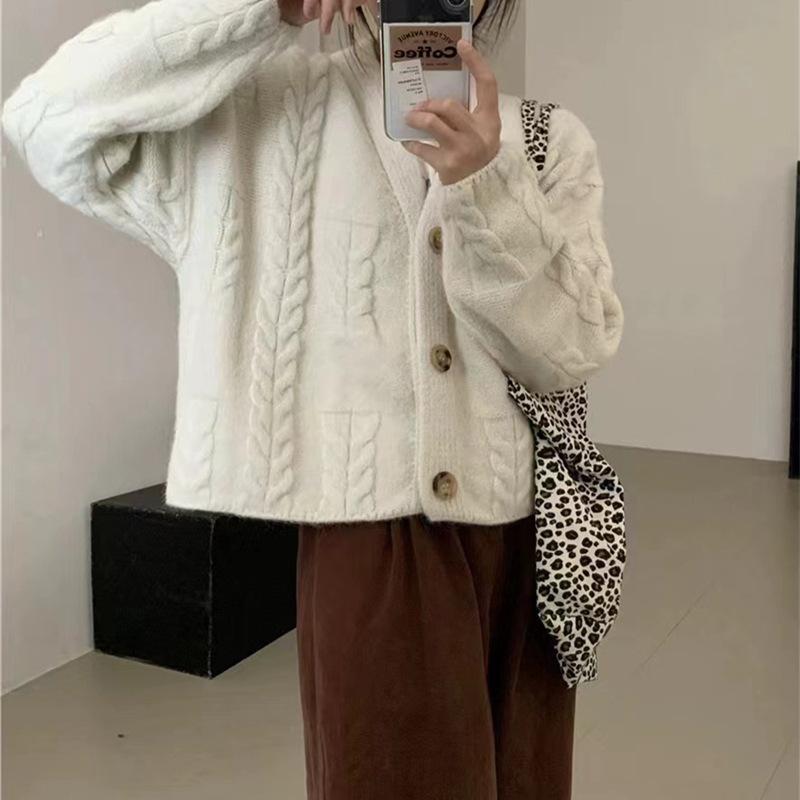 Otoño e Invierno Nuevo Cárdigan Suéter Dulce de Cuello en V 2024 Estilo Coreano Combinable Holgado Estilo Perezoso Top Tejido Chaqueta