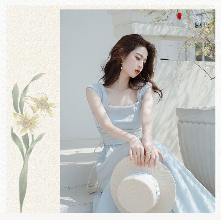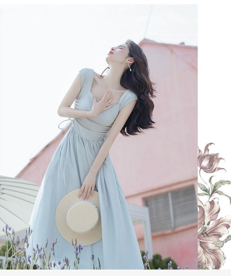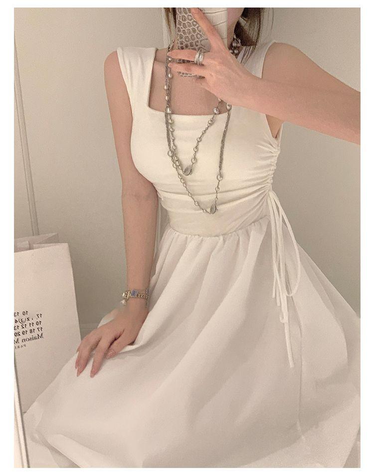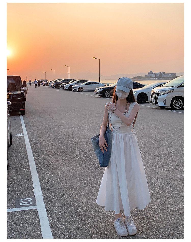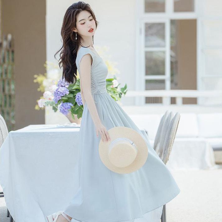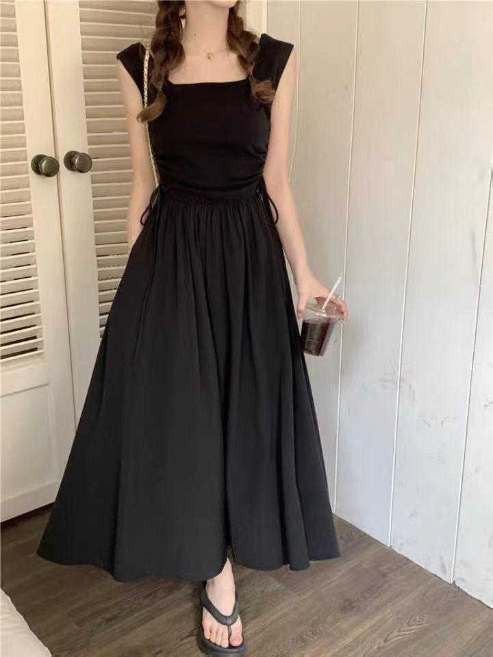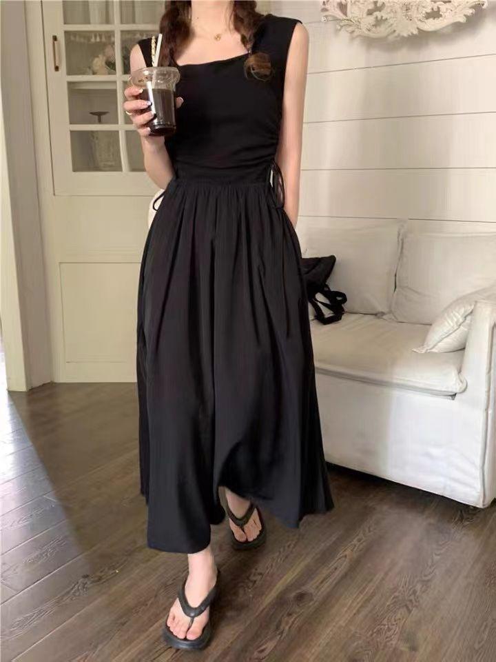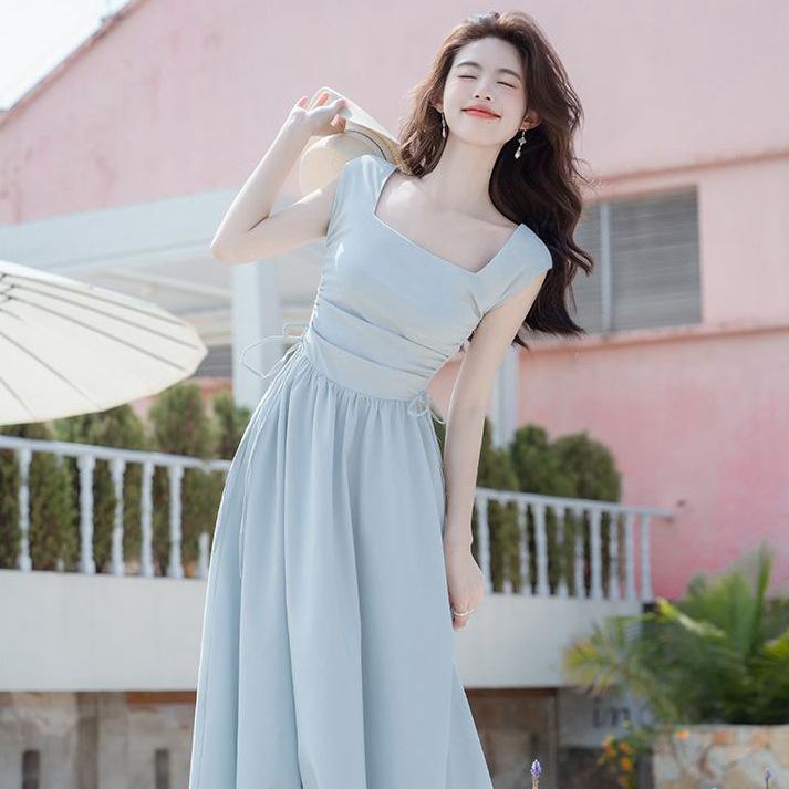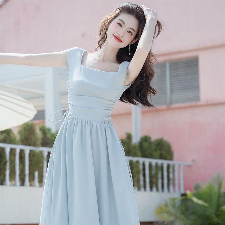 Vestido de Diseño Primer Amor para Mujer Verano Cintura con Cordón Empalmado Estilo Suave Adelgazante de Cintura Falda Larga
