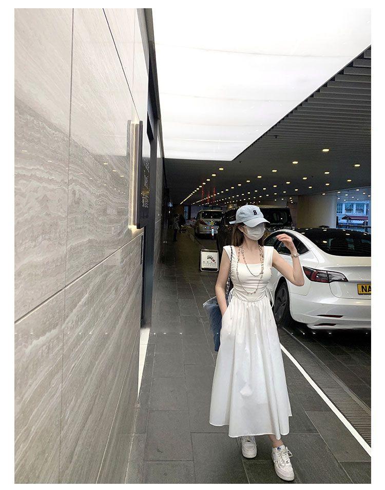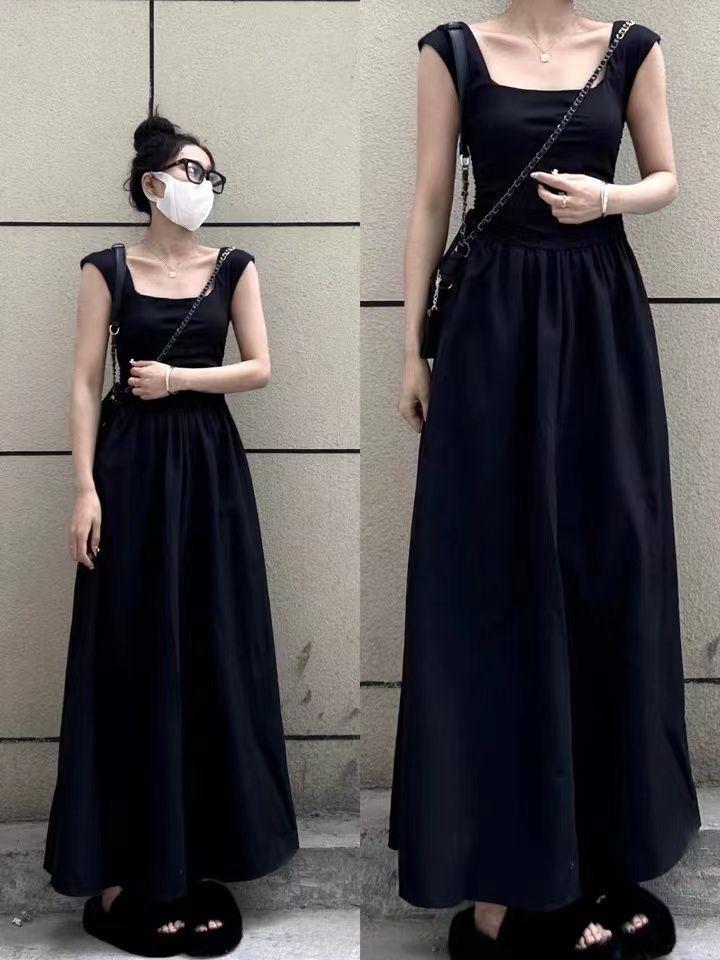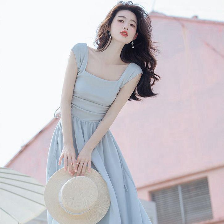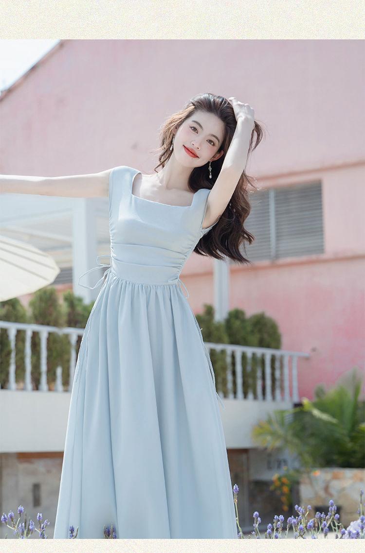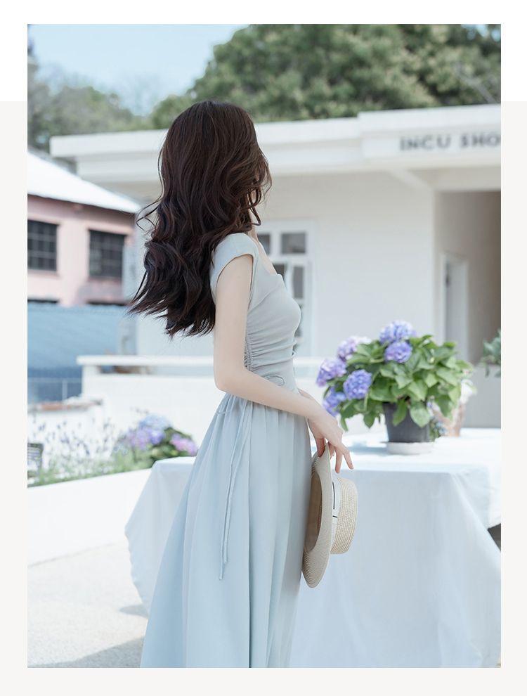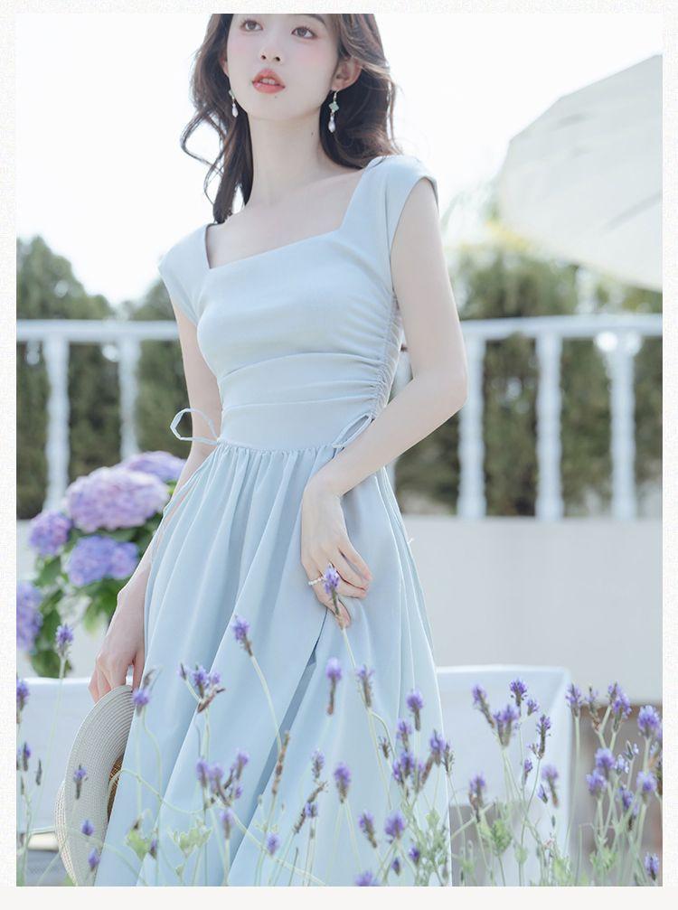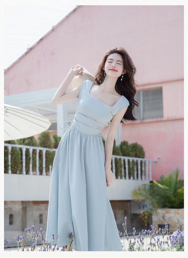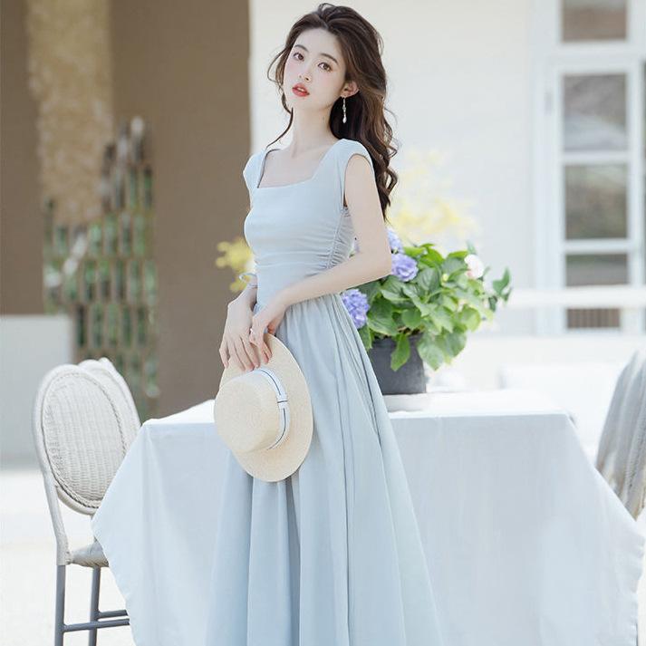 Vestido de Diseño Primer Amor para Mujer Verano Cintura con Cordón Empalmado Estilo Suave Adelgazante de Cintura Falda Larga