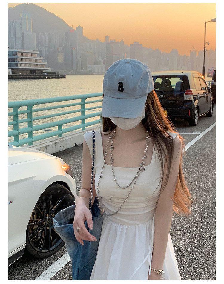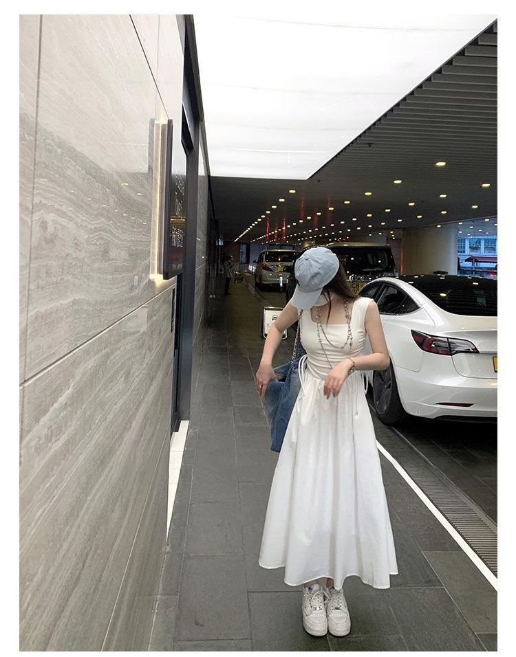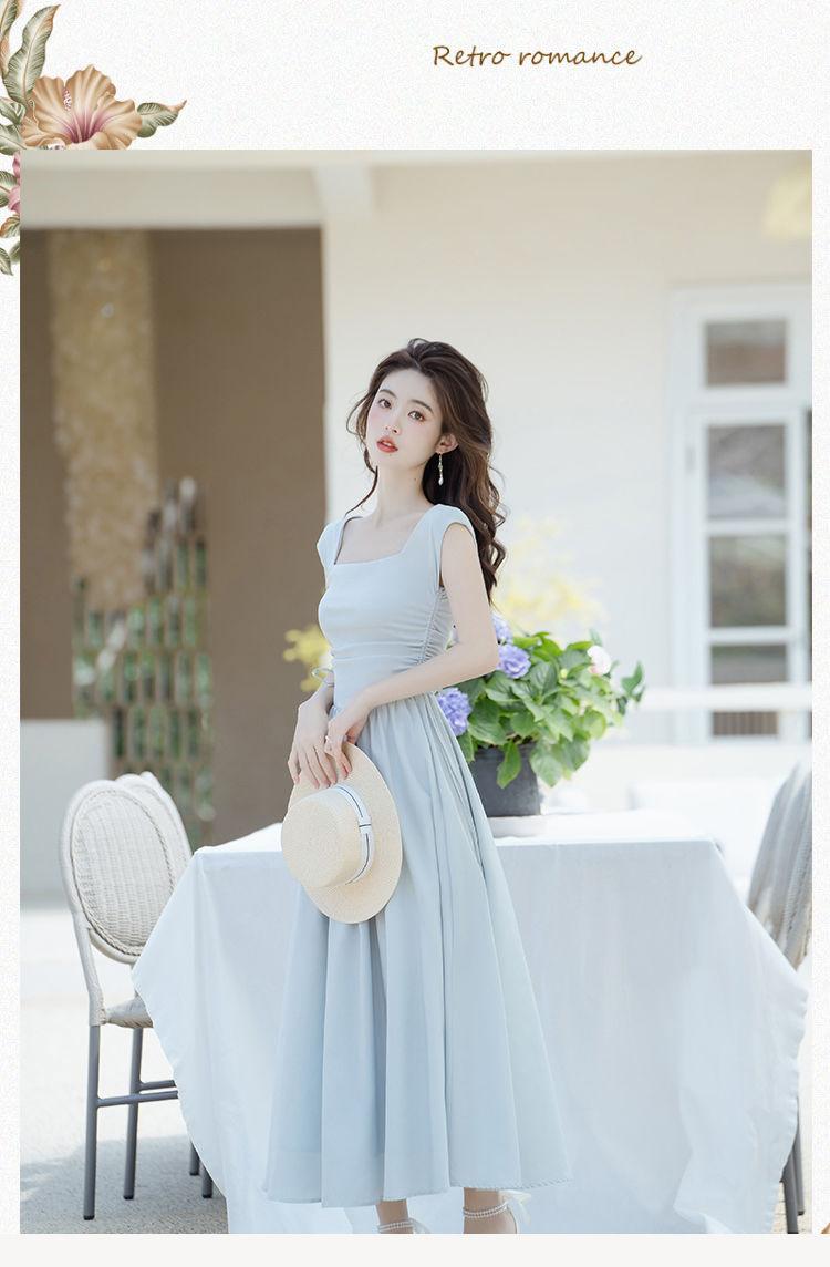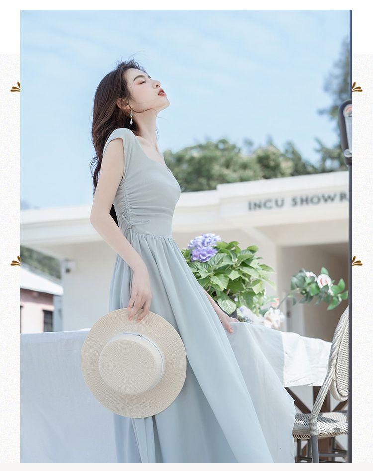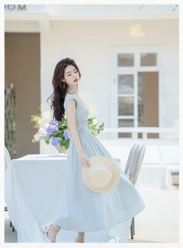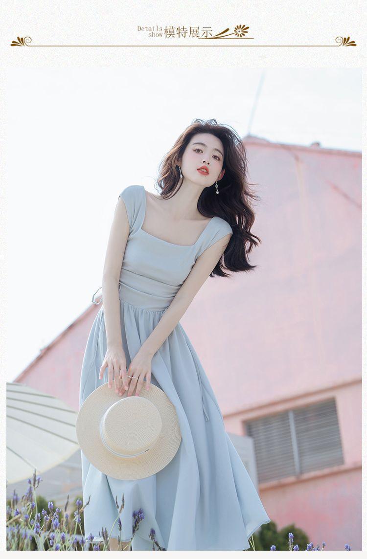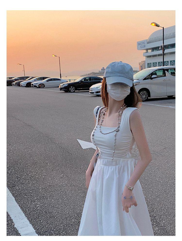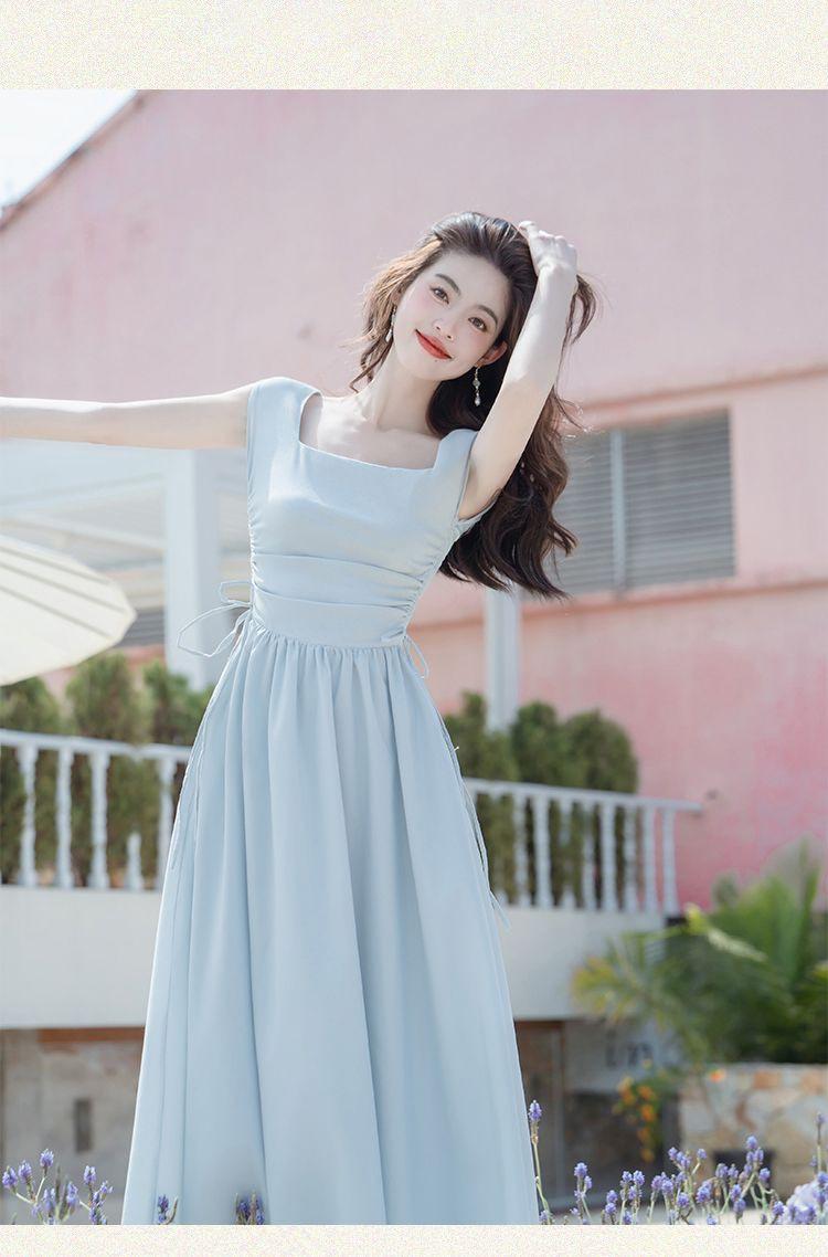 Vestido de Diseño Primer Amor para Mujer Verano Cintura con Cordón Empalmado Estilo Suave Adelgazante de Cintura Falda Larga