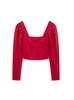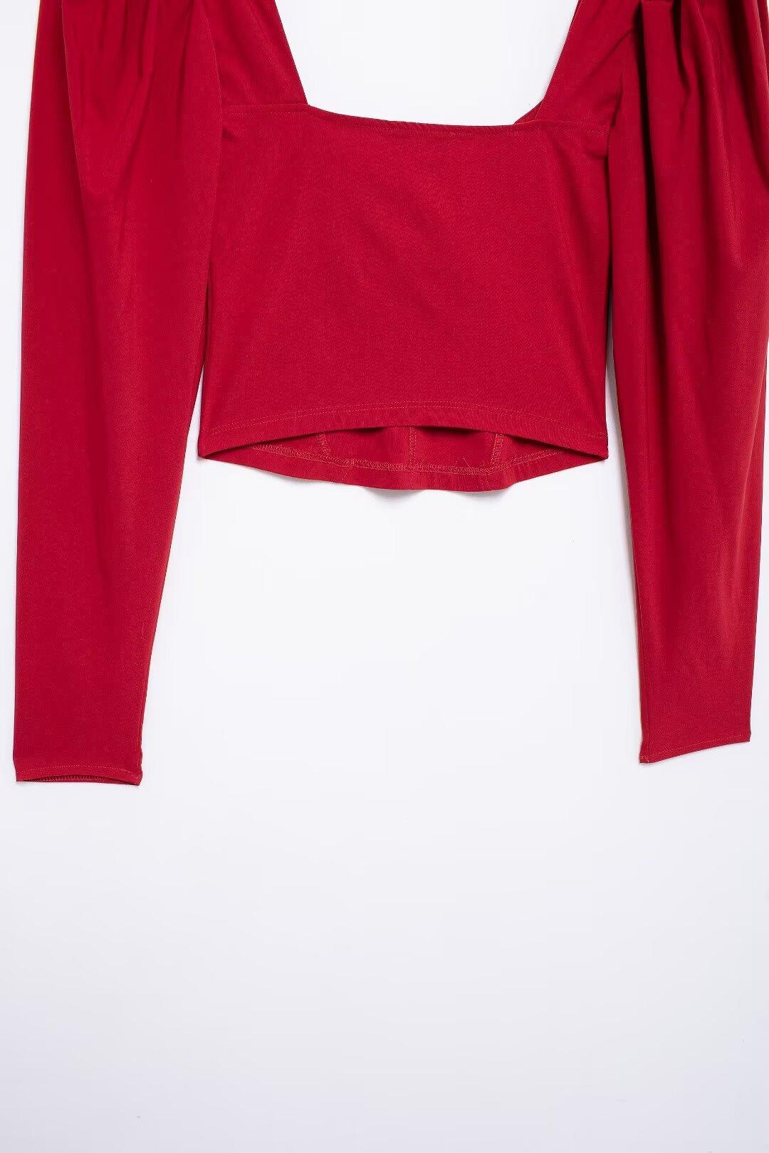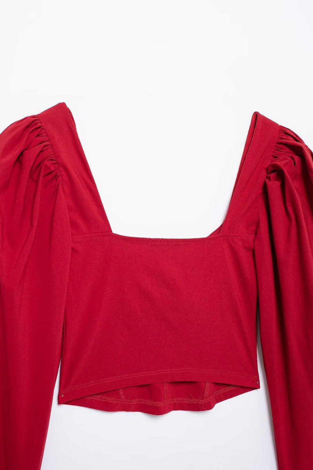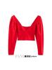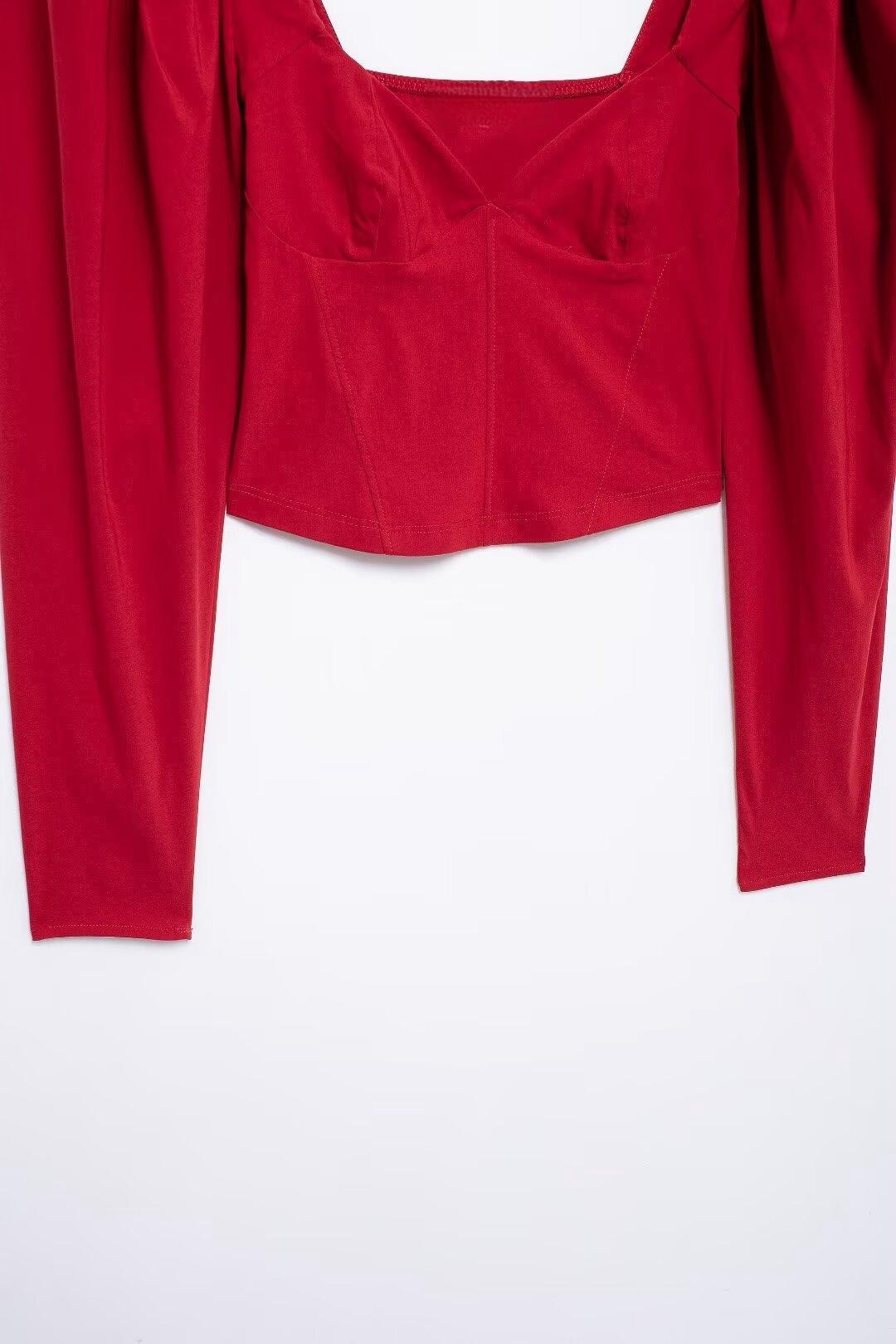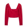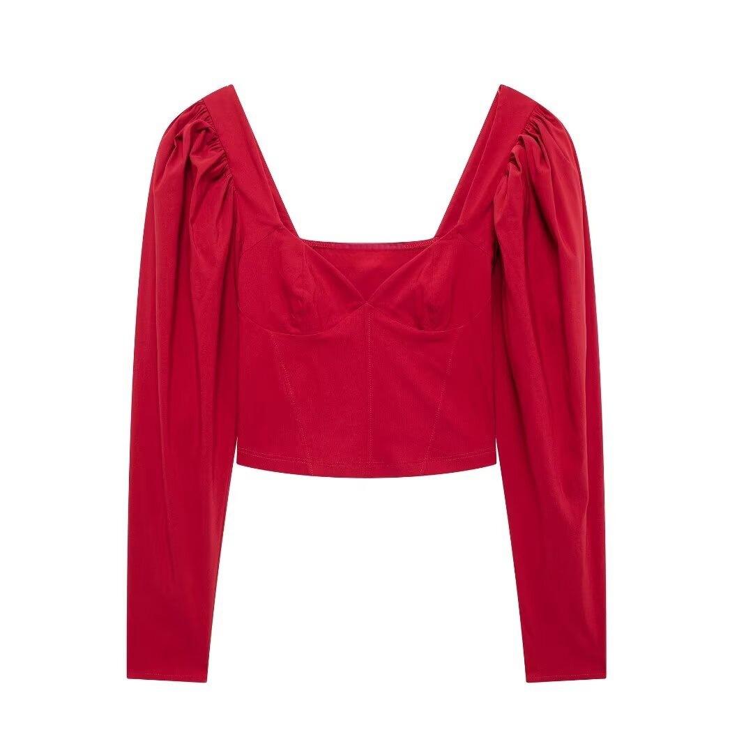 Top Corto de Manga Larga con Manga Abullonada y Cuello en Forma de Corazón para Mujer Europeo y Americano 2024 Otoño e Invierno Nuevo 1131994