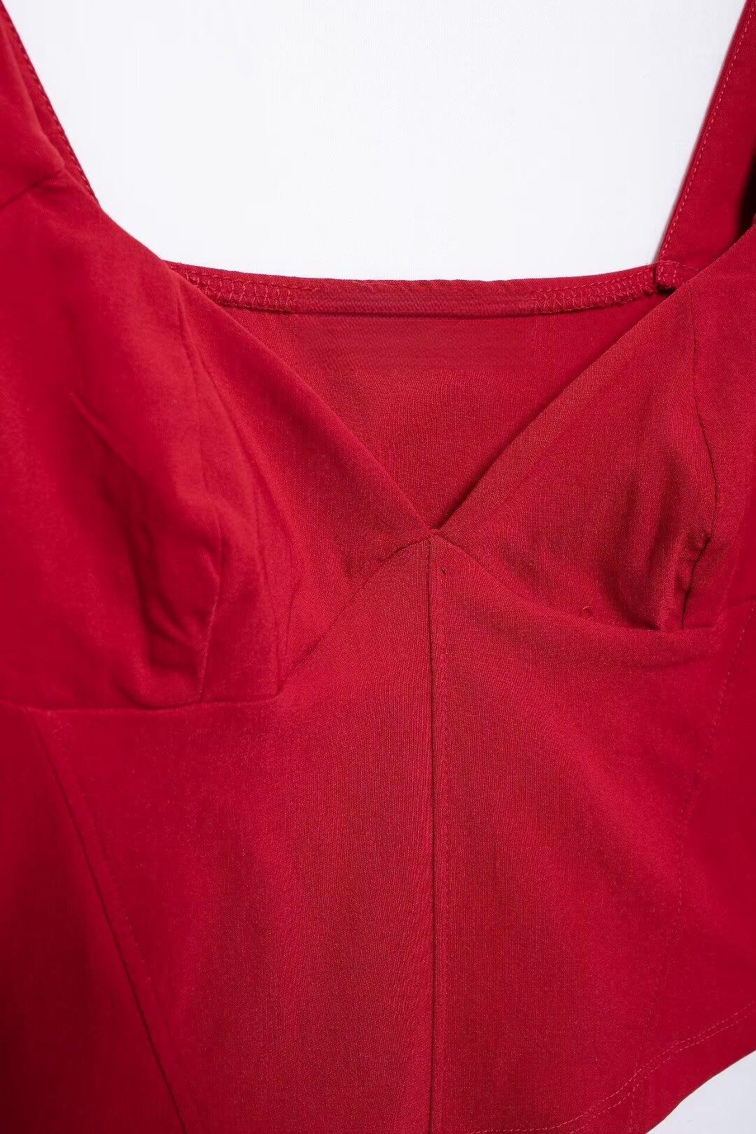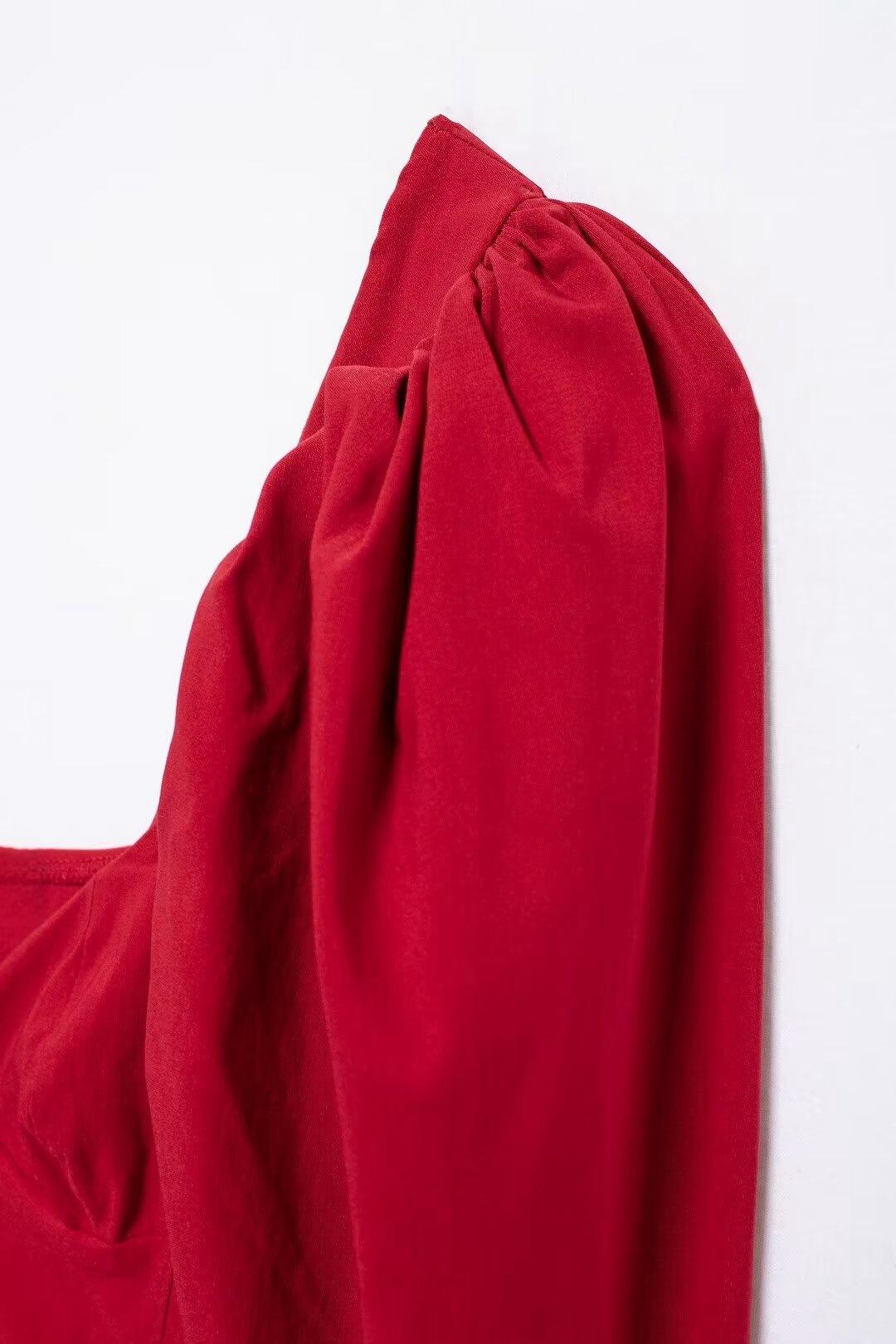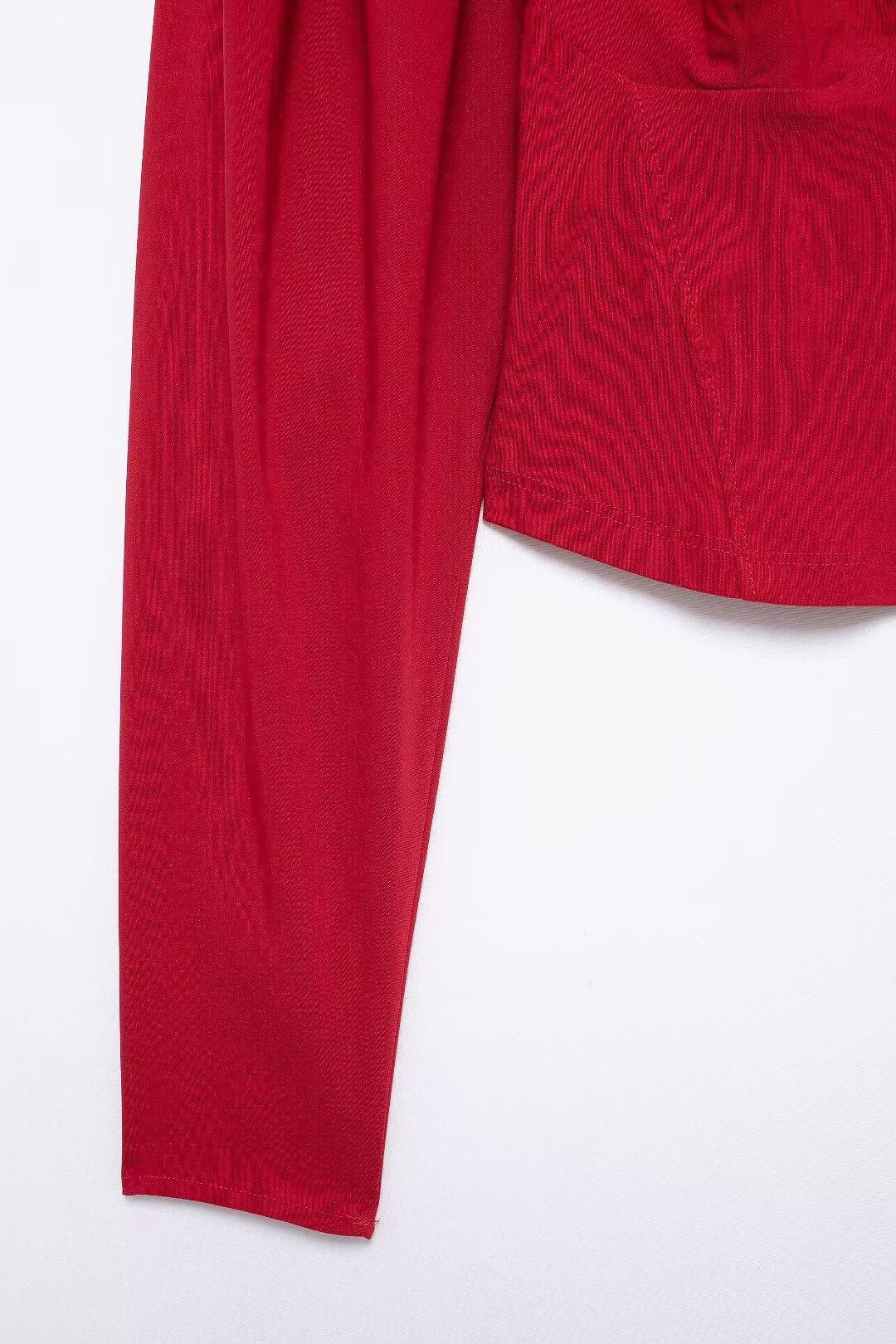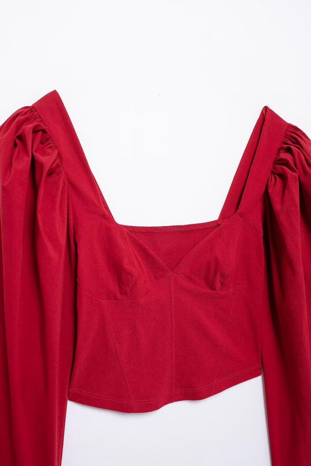 Top Corto de Manga Larga con Manga Abullonada y Cuello en Forma de Corazón para Mujer Europeo y Americano 2024 Otoño e Invierno Nuevo 1131994