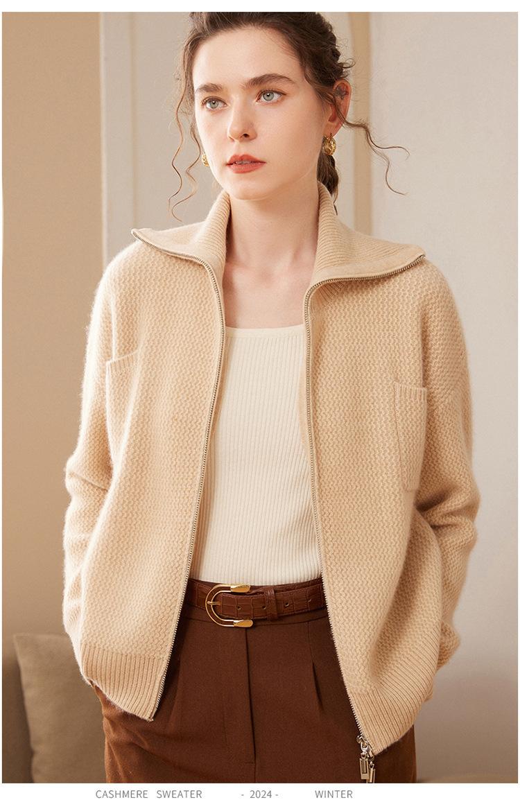 Cárdigan de punto de cachemira grueso para mujer, chaqueta holgada de manga larga, suéter grueso con solapa que combina con todo, de moda, otoño e invierno, nuevo
